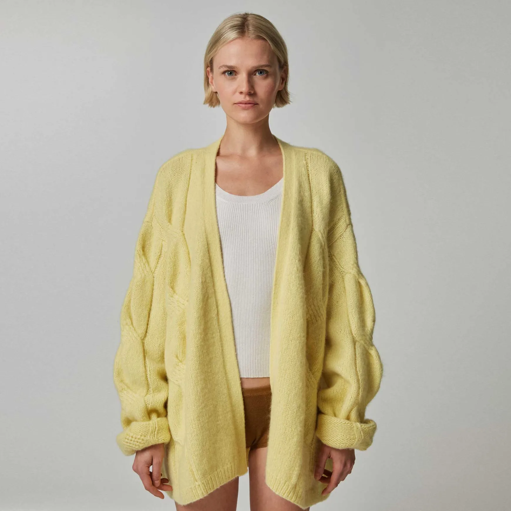 Wunderschöner und sehr weicher Cardigan mit einzigartigem Strickdesign und Ballonärmeln.