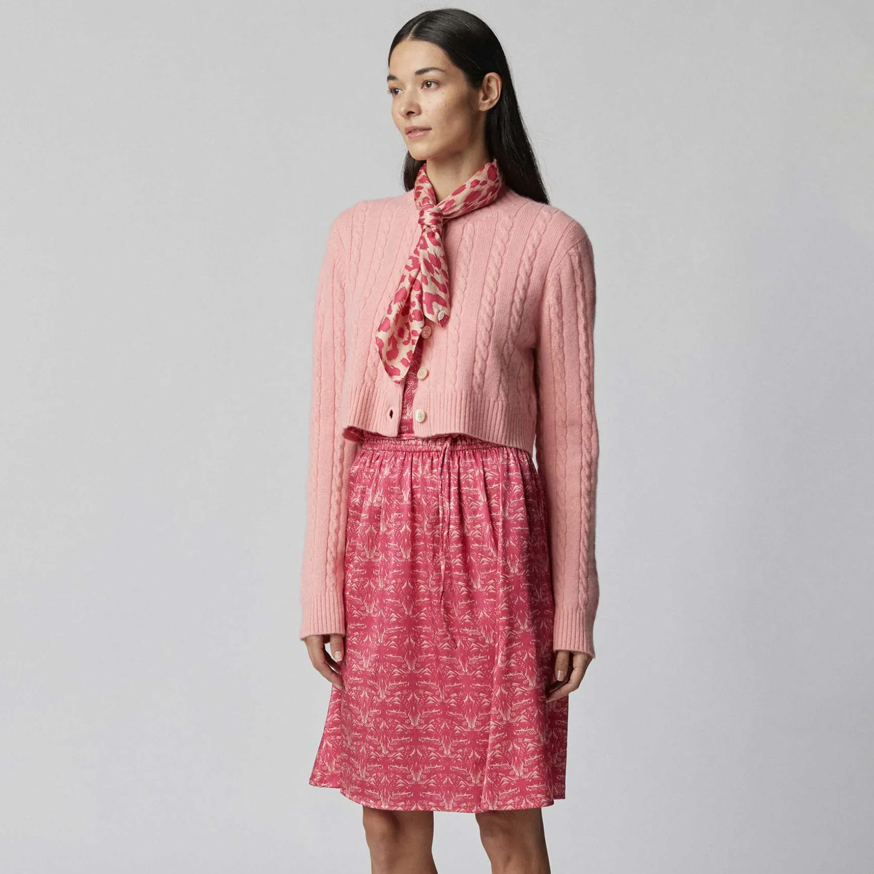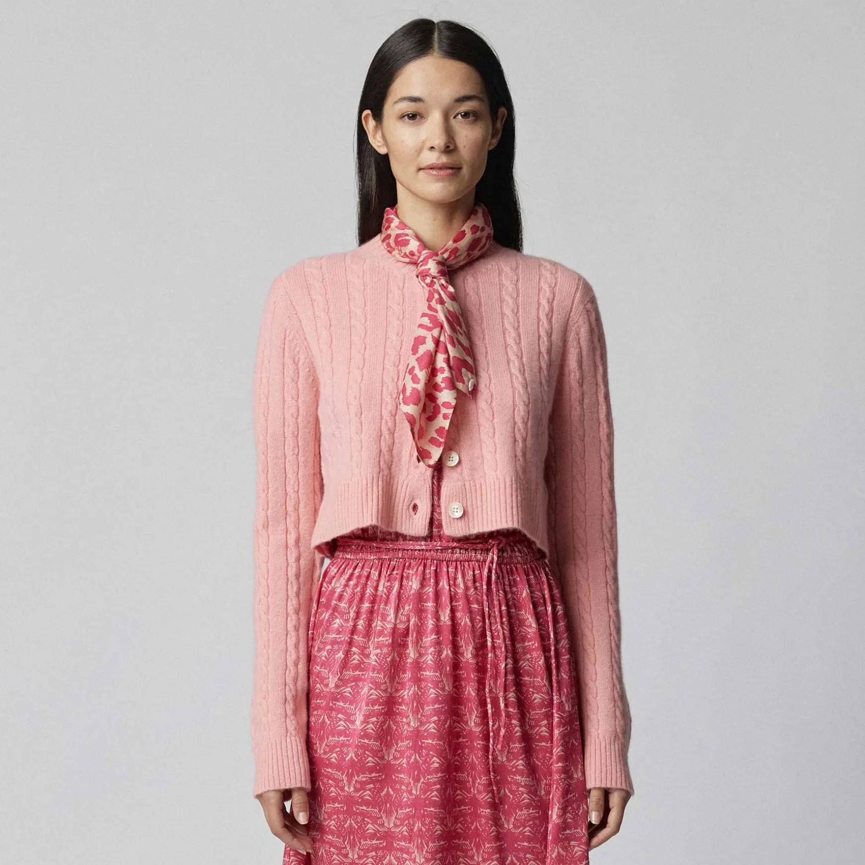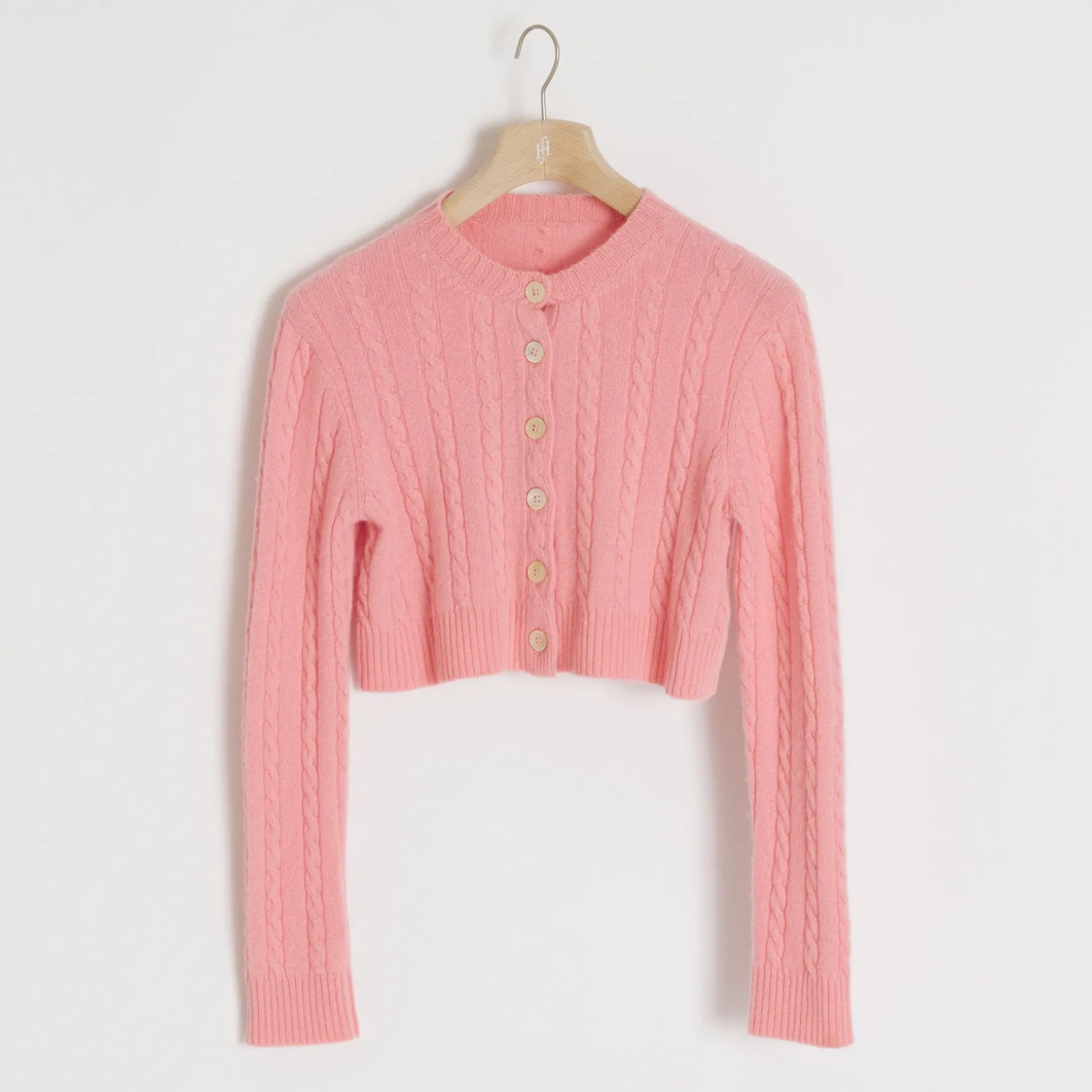 Feinste Handarbeit aus reinem Cashmere Garn macht diese Strickjacke zu einem Hingucker. Der Cardigan im Zopfstickdesign überzeugt durch seinen kurzen Schnitt und die wunderschöne Knopfleiste.