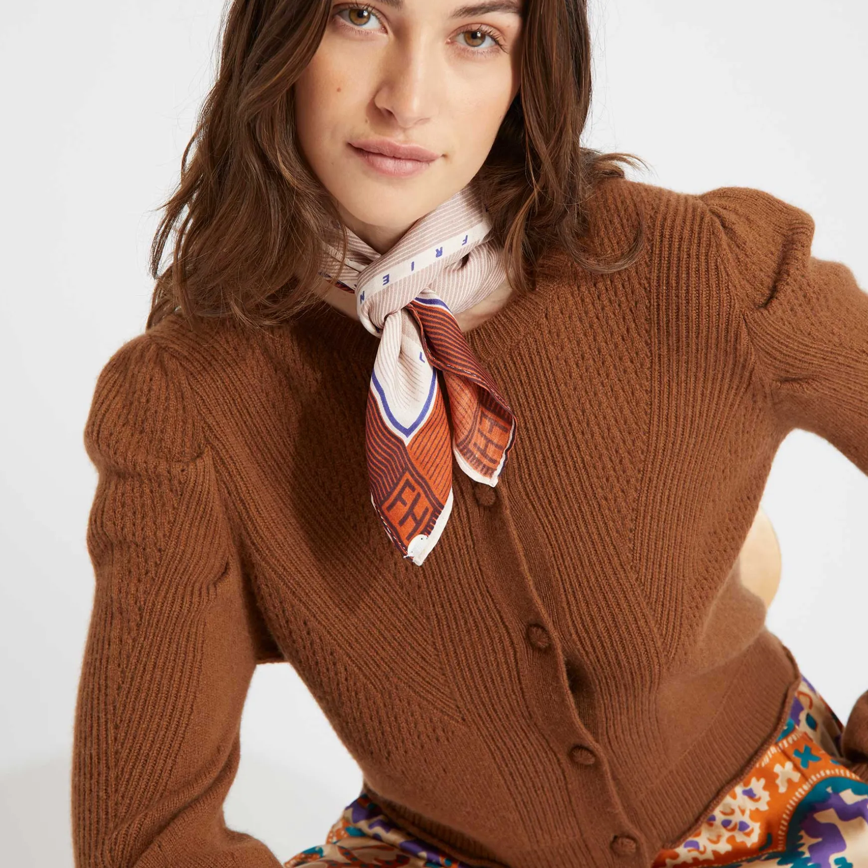 Feinste Handarbeit aus feinem Cashmere Garn macht diese wunderschöne Strickjacke zu einem Hingucker. Der Cardigan überzeugt mit einem ganz besonderen Strickmuster und leichten Puffärmeln.