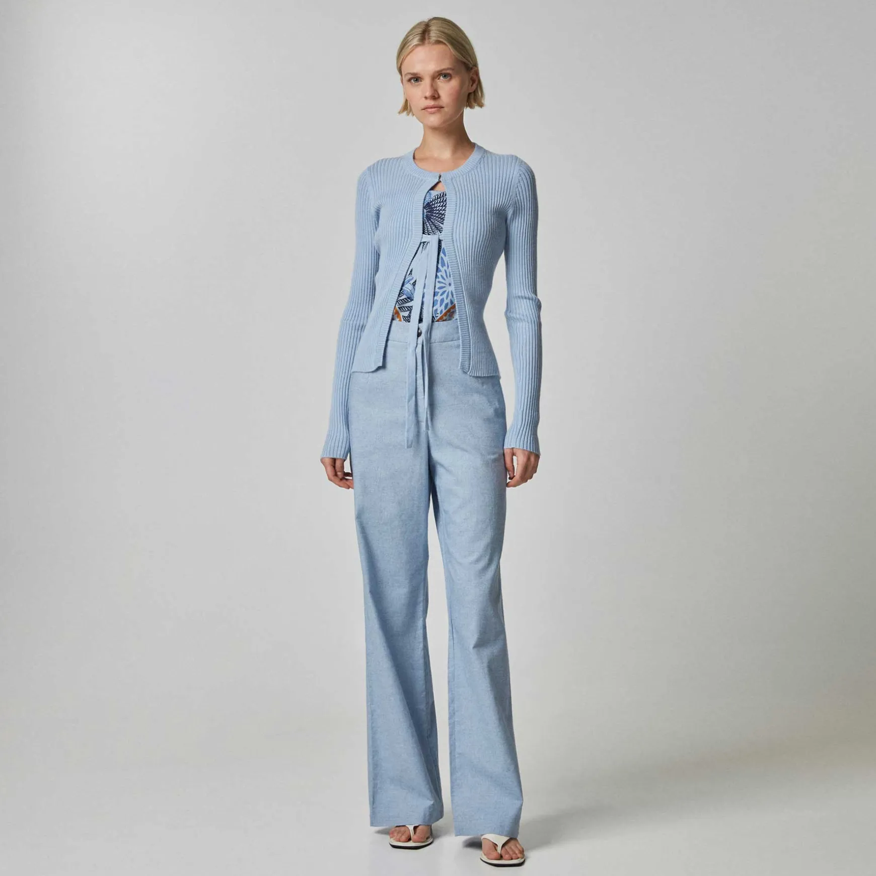 Wunderschöner taillierter Cardigan mit Verschluss am Kragen und Bindedetail vorne.