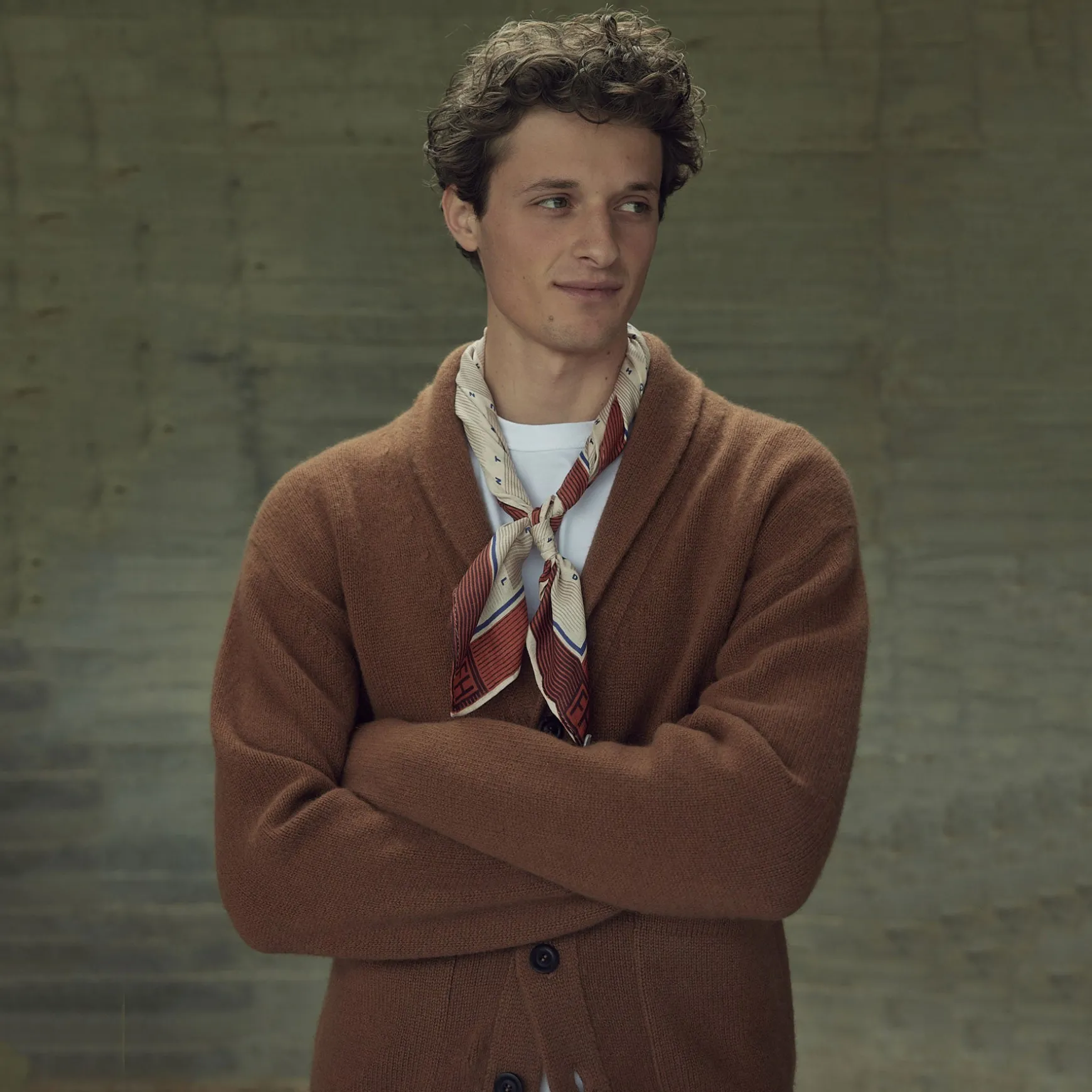 Der Artikel wird in der Manufaktur aus 100% Kaschmir in Handarbeit gestrickt und verarbeitet.