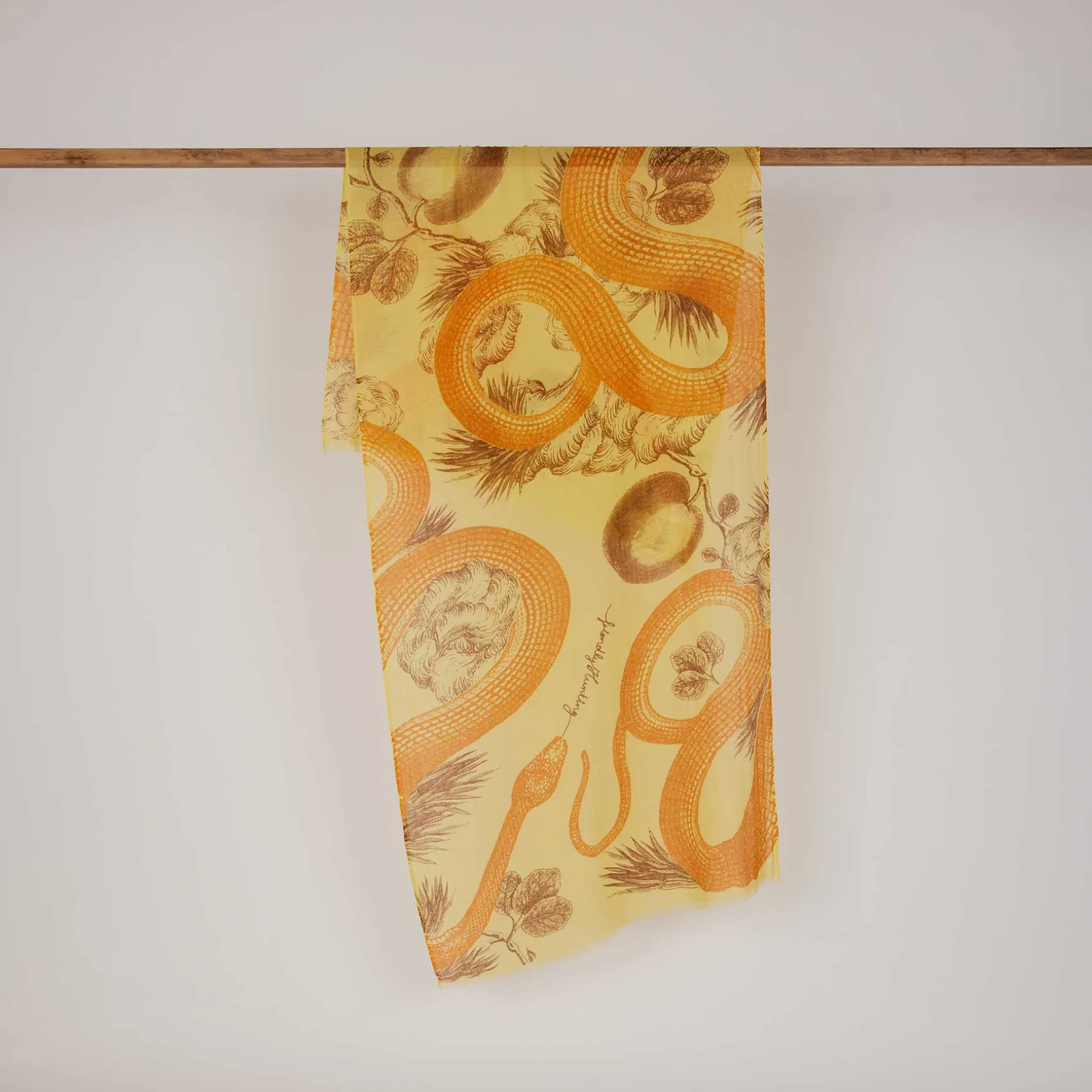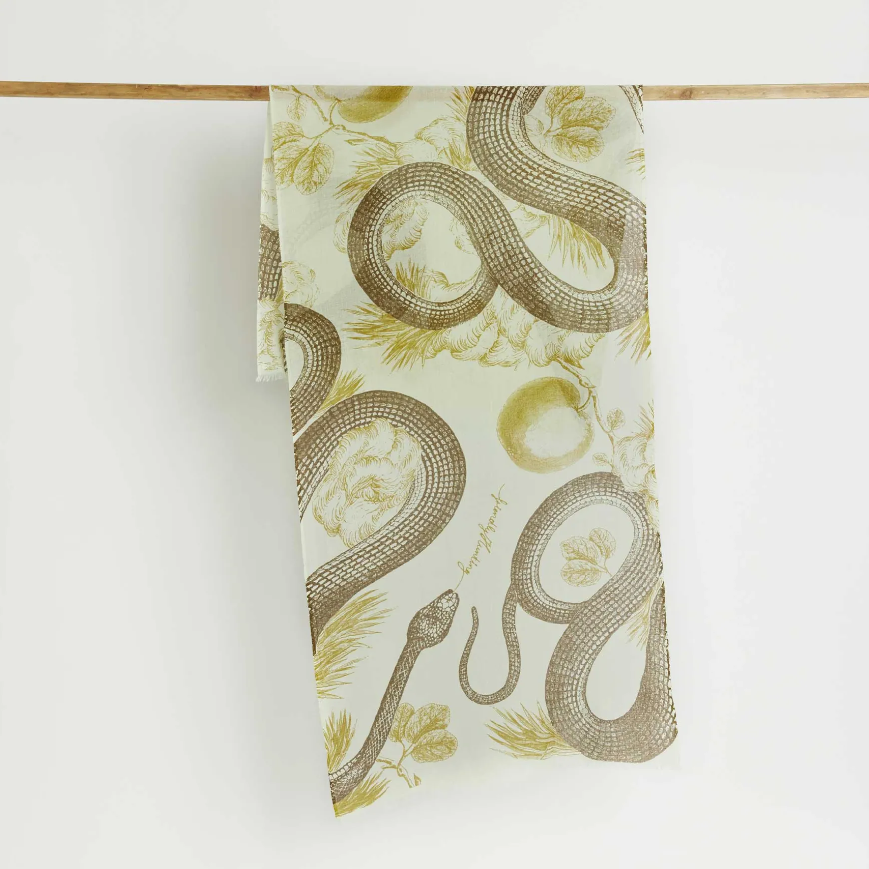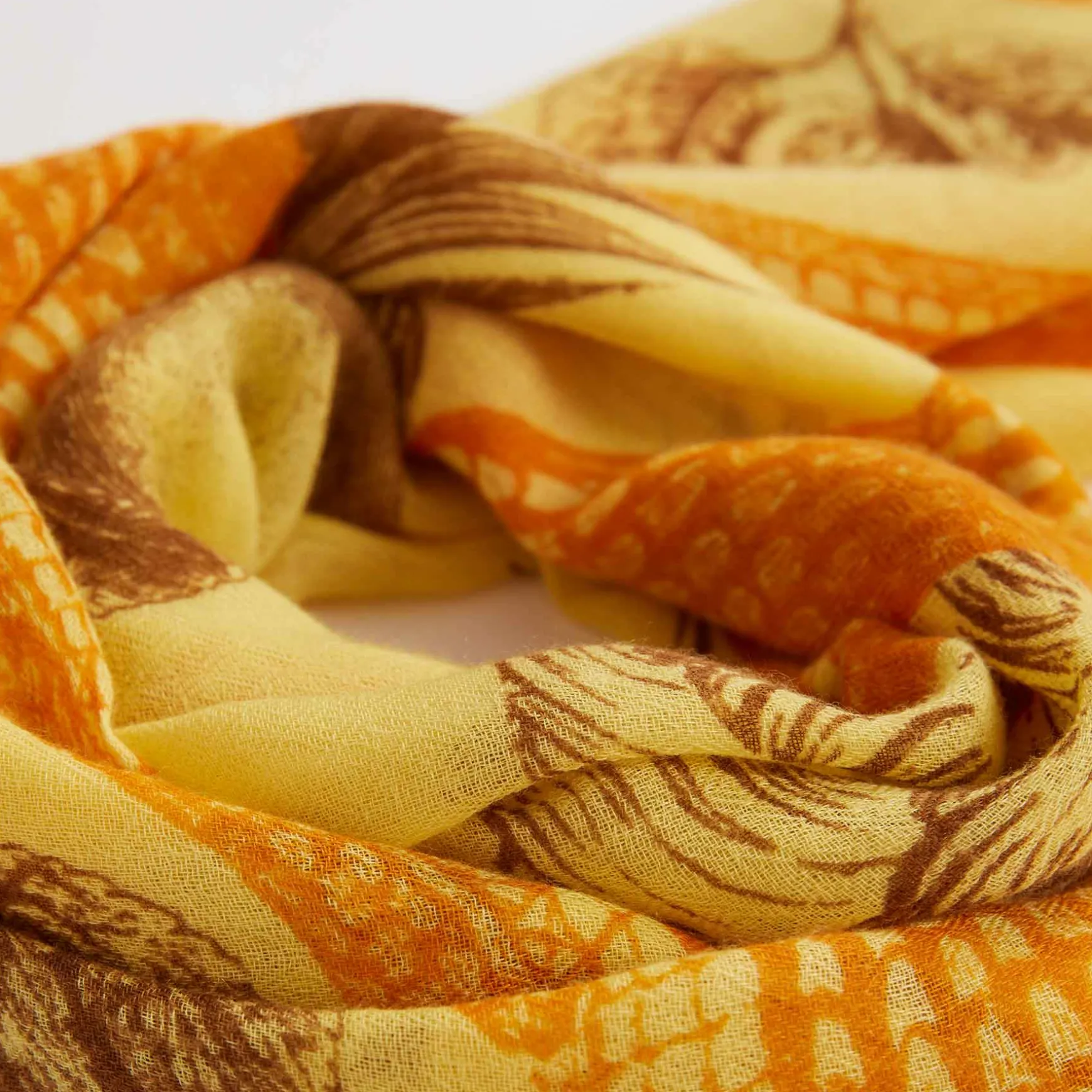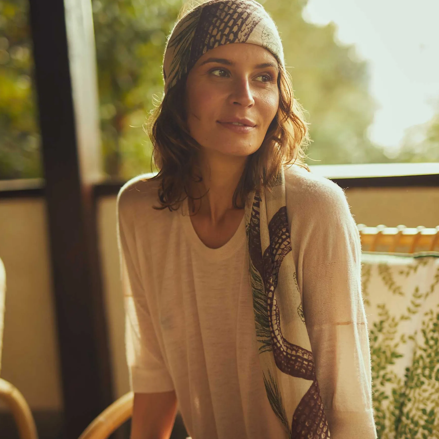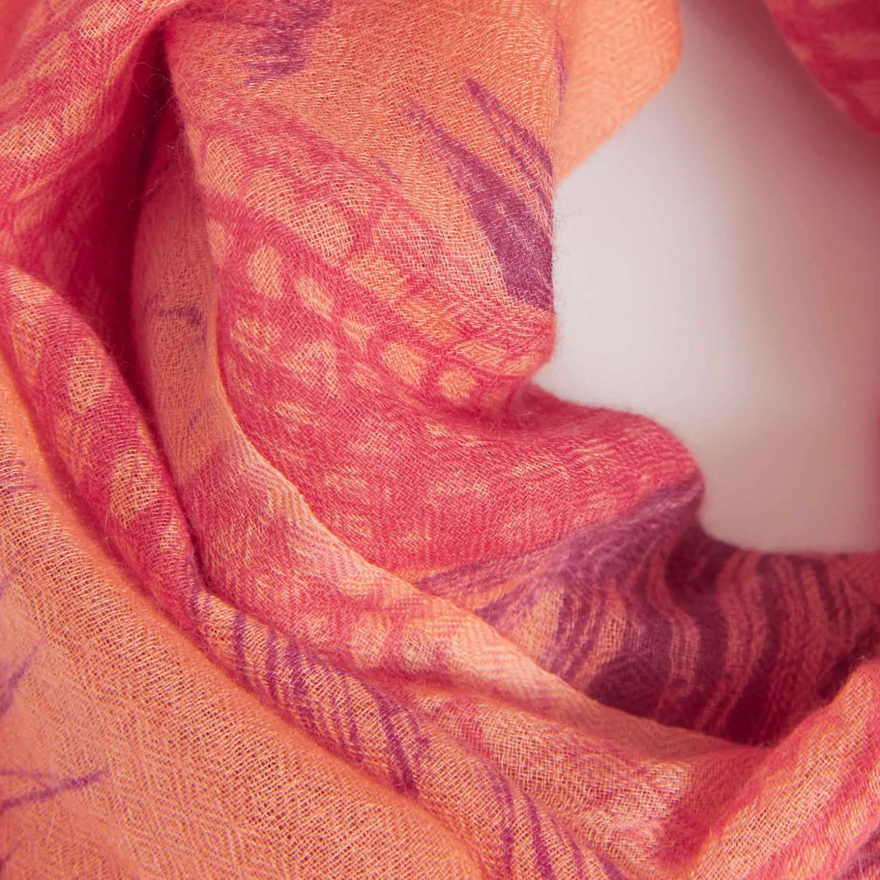 Der friendly Hunting Cashmere Scarf wird in der Manufaktur aus 100% Cashmere handgewebt. Anschließend wird der Print mit Handsiebdruck auf dem Schal platziert.