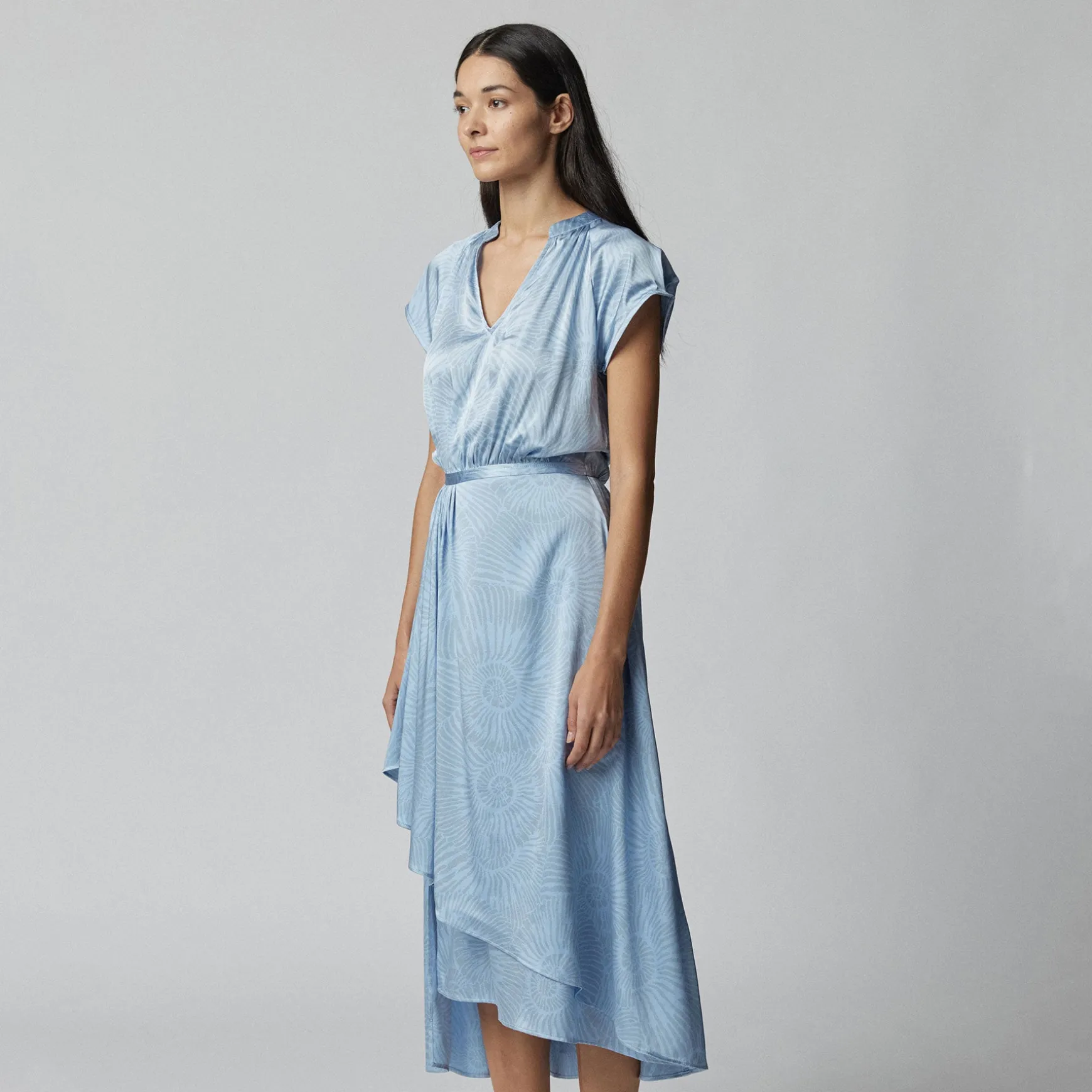 Midikleid aus fließender Seide im All Over Print Escargot. Der Rock ist hinten etwas länger als vorne und überzeugt mit wunderschönen leichten Volants.
