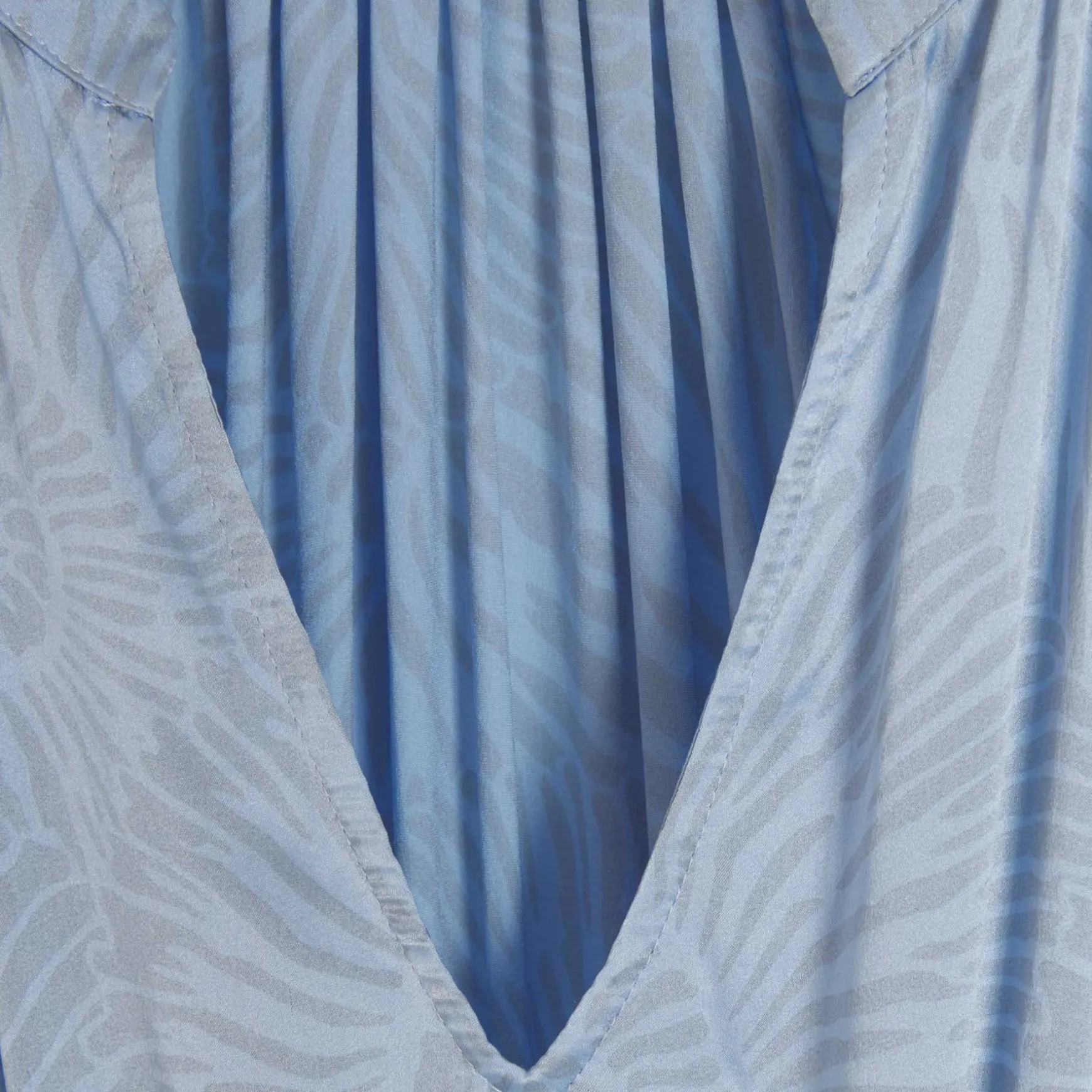 Das Material wird in der Manufaktur in Nepal per Hand aus Seidensatin gewebt. Anschließend wird der Print im Handsiebdruckverfahren auf der Seide platziert.