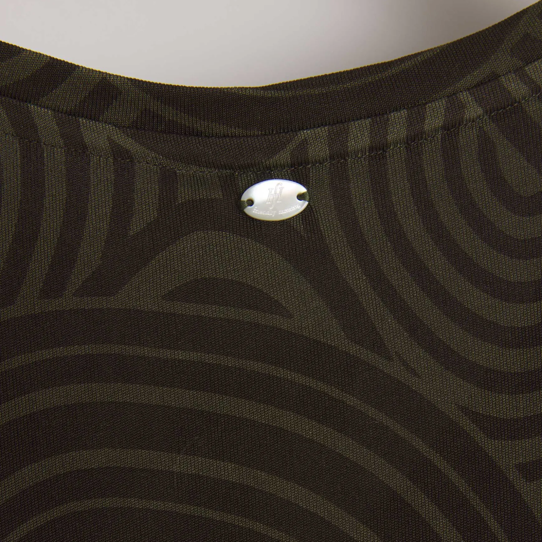 Das Material wird in der Manufaktur in Nepal aus 100% Seidenjersey gestrickt. Anschließend wird der Print im Handsiebdruckverfahren auf der Seide platziert.