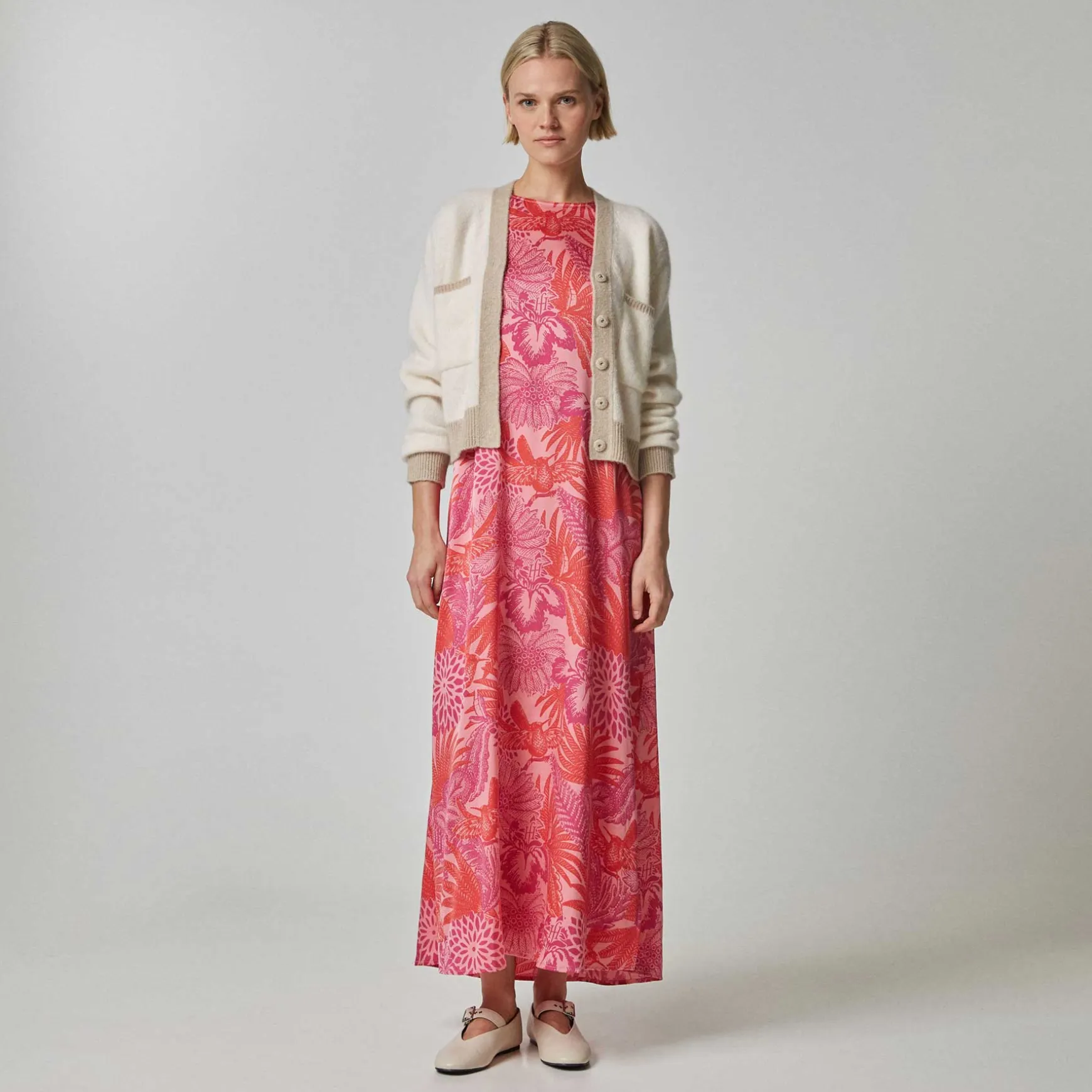 Relaxed Fit Kleid aus fließender Seide das sich am Rücken mit einem Knopf verschließen lässt.