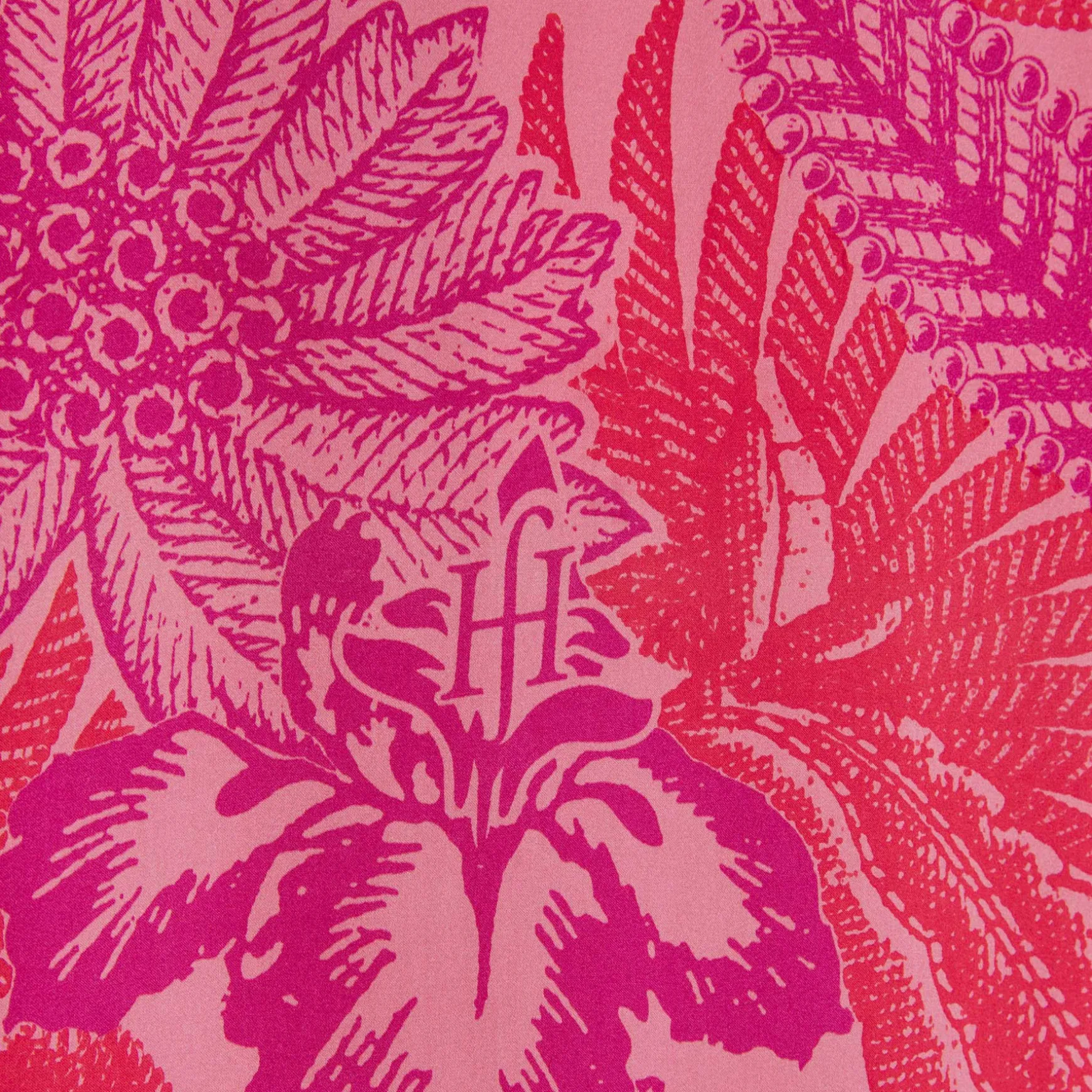 Das Material wird in der Manufaktur in Nepal per Hand aus Seidensatin gewebt. Anschließend wird der Print im Handsiebdruckverfahren auf der Seide platziert.