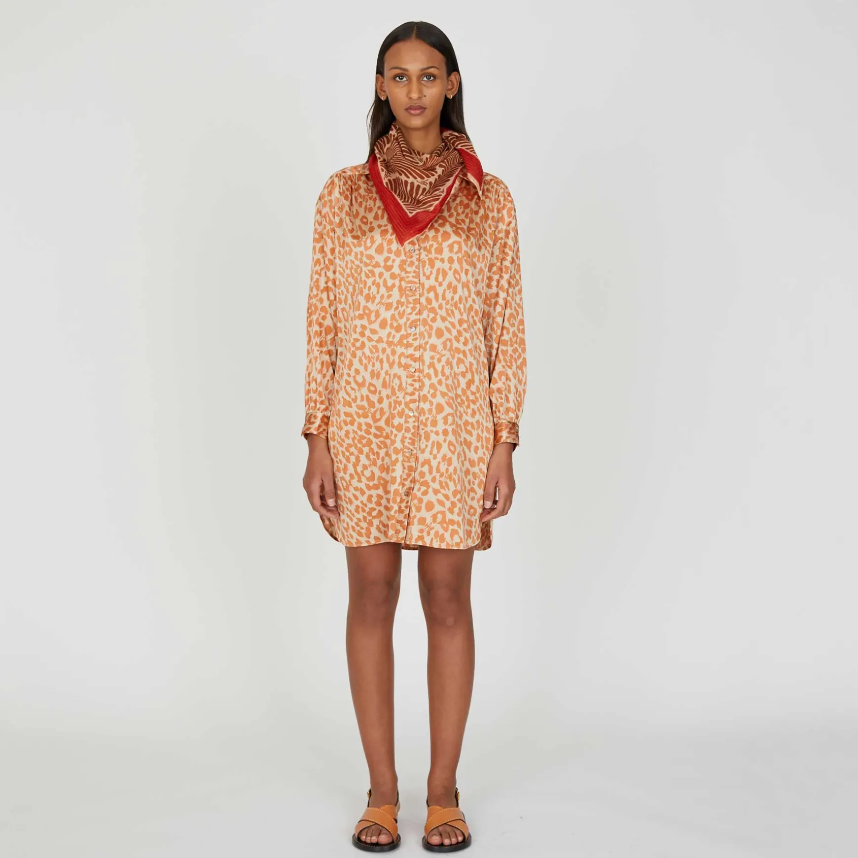 Das Material wird in der Manufaktur in Nepal per Hand aus Seidensatin gewebt. Anschließend wird der Print im Handsiebdruckverfahren auf der Seide platziert.