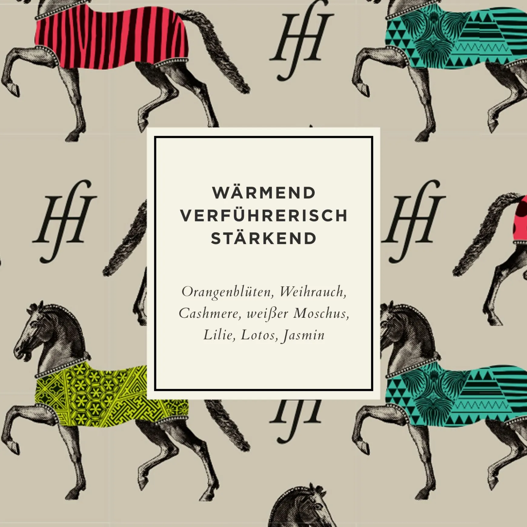 Das Glück der Gefühle ohne Sprache. Vahana ist ein Sanskritwort und bedeutet Reittier einer Gottheit. Die heiligen, klärenden Harze des Weihrauchs und honigsüßes Neroli öffnen die Sinne für die Sprache der Blumen. Die Lilie spricht von Eleganz, Sinnlichkeit und Würde, der Lotus und der Jasmin von Zuversicht und Euphorie. Eingehüllt in die Weichheit des Cashmeres und die Wärme des weißen Moschus werden die innersten Gefühle und Gedanken ohne Worte ausgedrückt, ganz bei sich und dennoch tief verbunden.