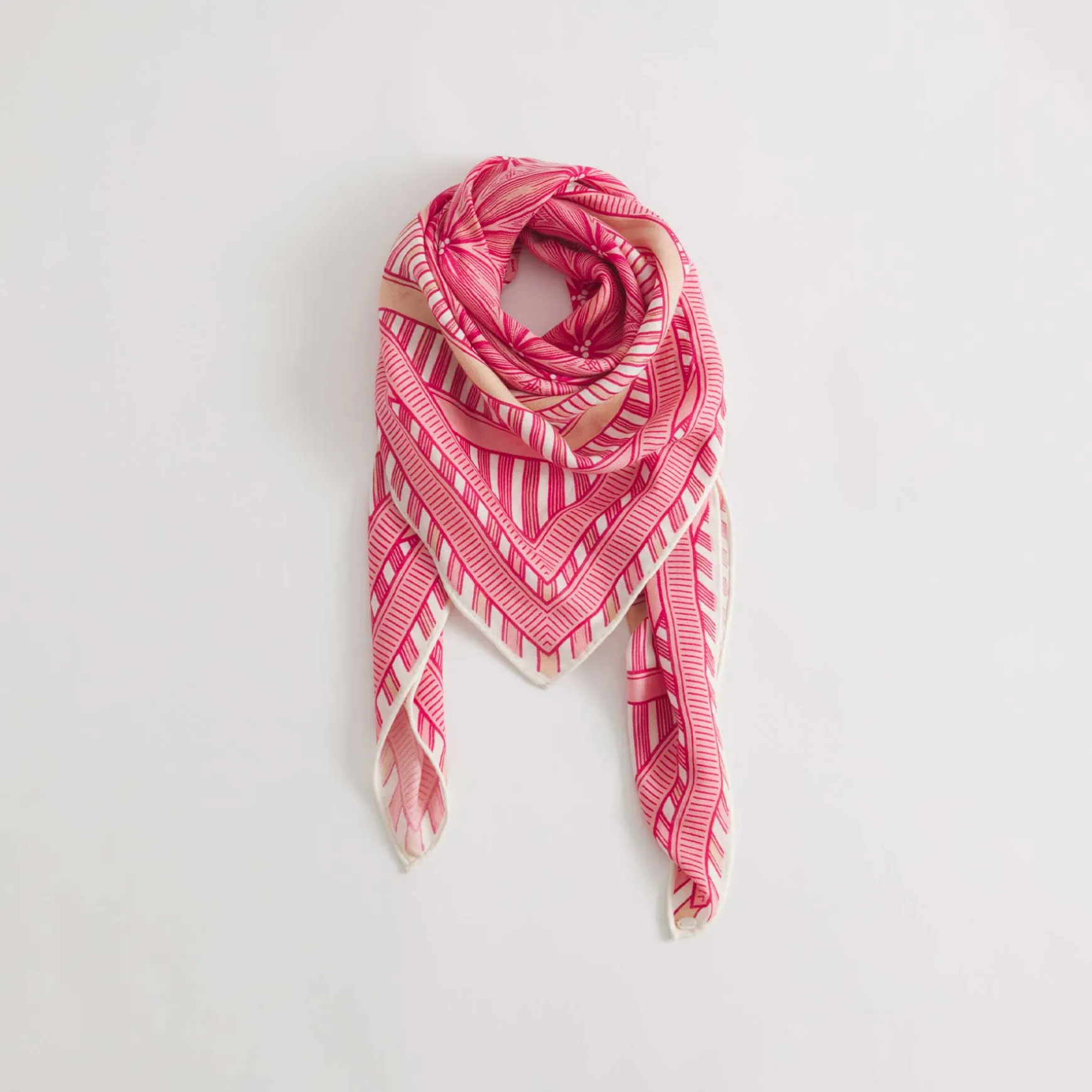 Der Explorer Cube wird in unserer Manufaktur in Nepal aus einem Seide-Cashmere Garn quadratisch handgewebt. Anschließend wird der Print mit Handsiebdruck auf dem Schal platziert.