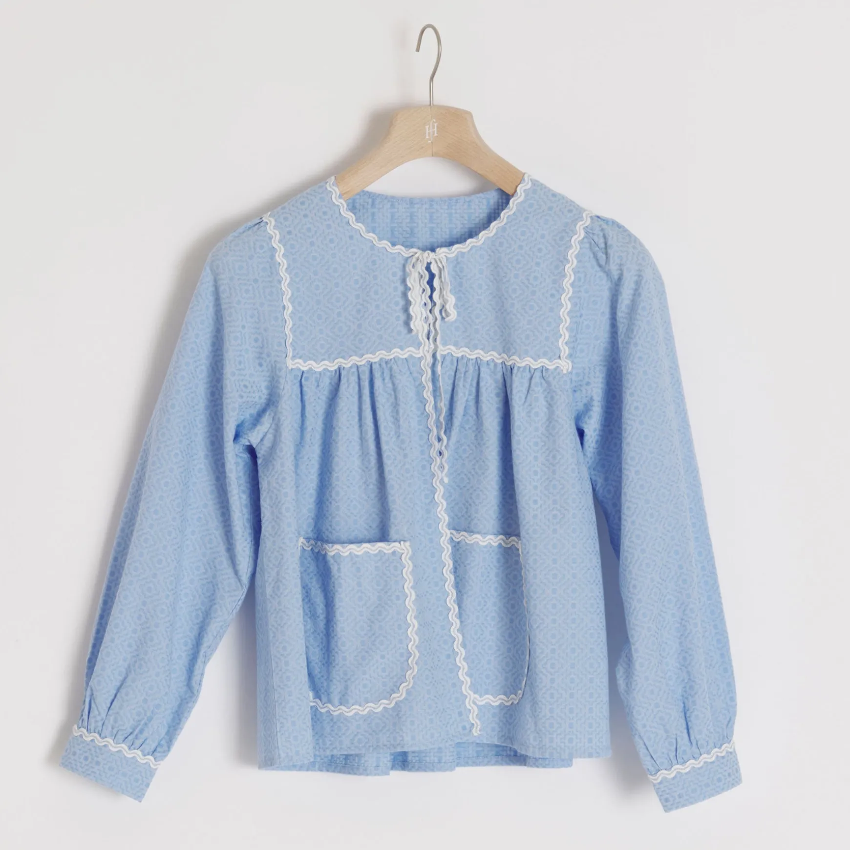 Jäckchen aus einzigartigem Stoff und mit schöner Struktur. Die Jacke überzeugt mit einem dekorativen Wellenband, aufgesetzten Taschen und einer Schleife am Kragen.