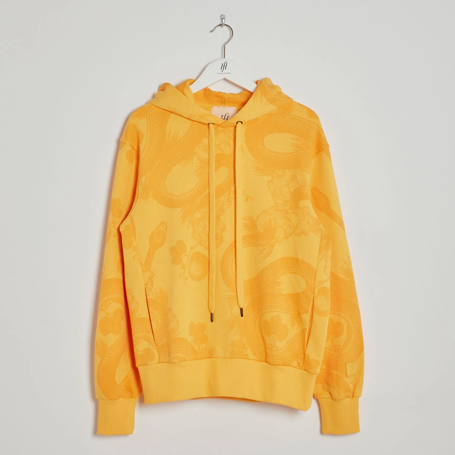 Umhüllt vom Paradies. Der Garten Eden ist voller Farben, Formen und Freude und somit der vollkommene Aufenthaltsort for people with positive attitude. Ach ja, einen Apfel gibt es dort auch noch.. Im friendly hunting Garden Eden ist die Schlange zwar auch verführerisch – aber vielmehr ist sie ein Krafttier, welches mit Weisheit und Anmut betört und sich immer wieder neu erfindet; der perfekte Botschafter für friendly huntings Blick auf die Schönheit der Welt!