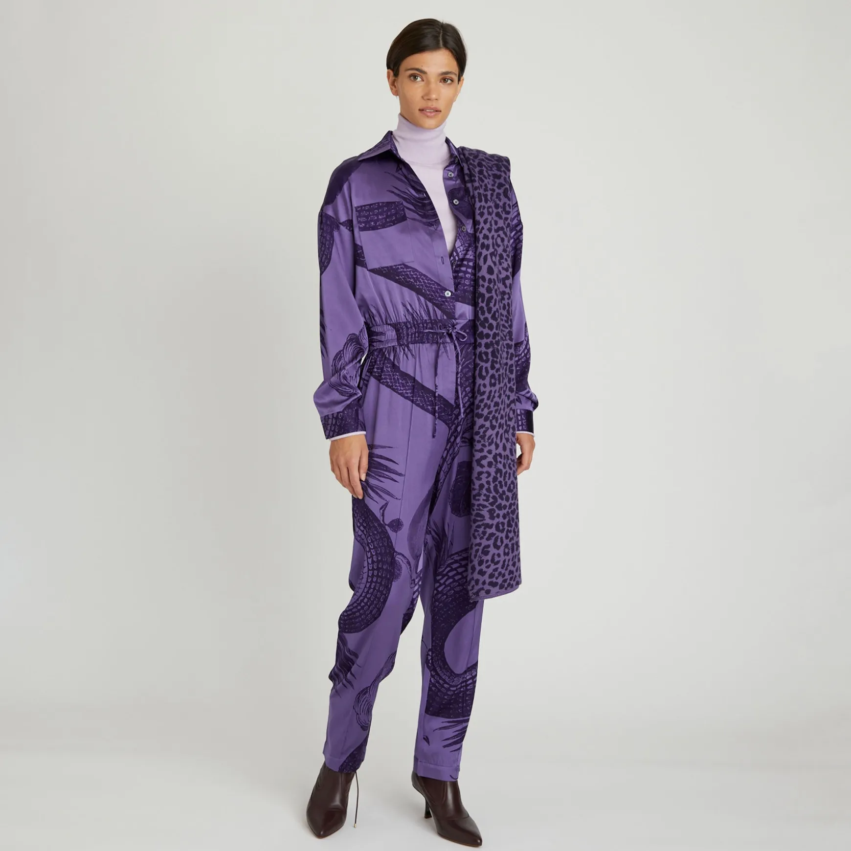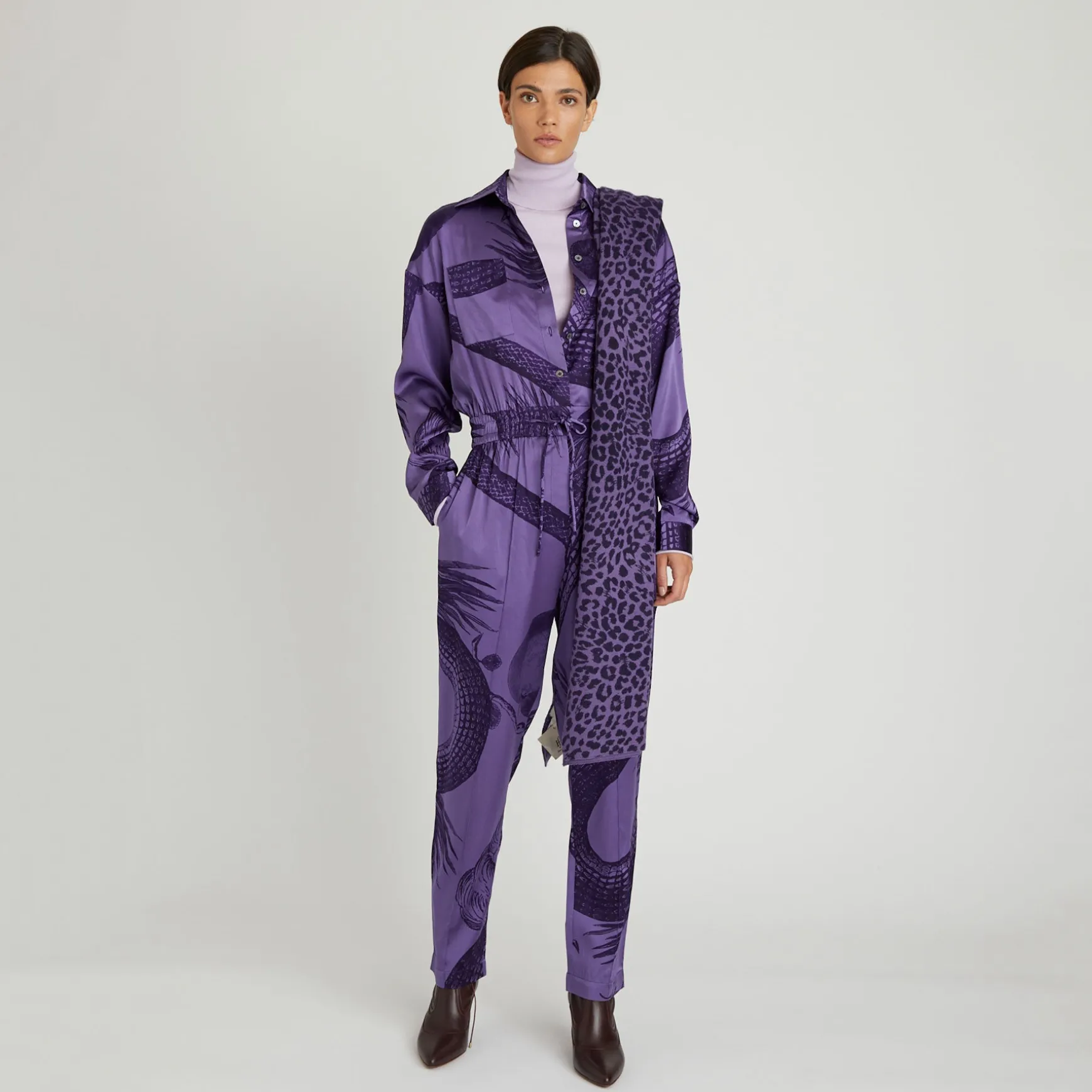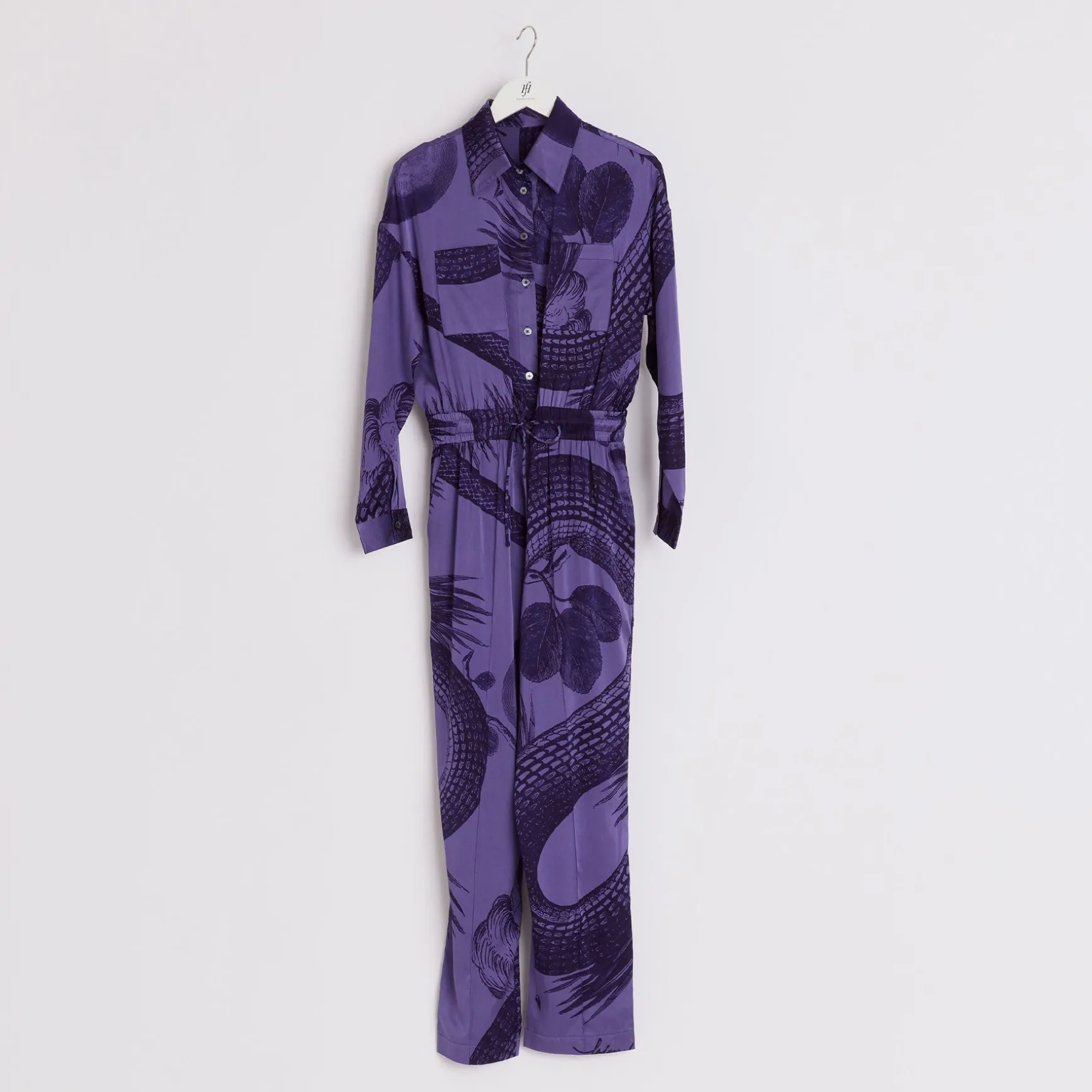 Eleganter Jumpsuit aus fließender Seide im All Over Print Garden Eden.