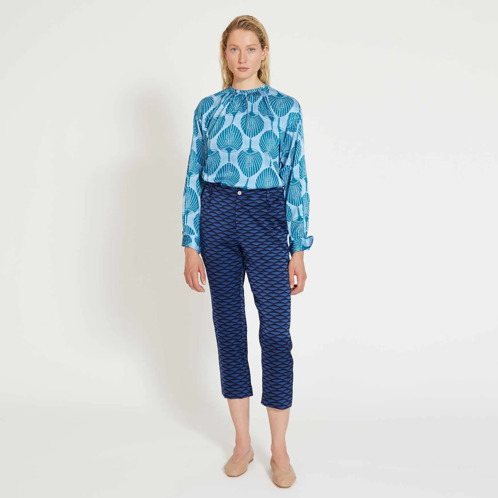 Figurbetonte Hose aus fließender Seide im Allover Print Scale. Die Hose überzeugt vor allem mit ihren seitlichen Taschen, einem Knopfverschluss und dem anschmiegsamen Schnitt.