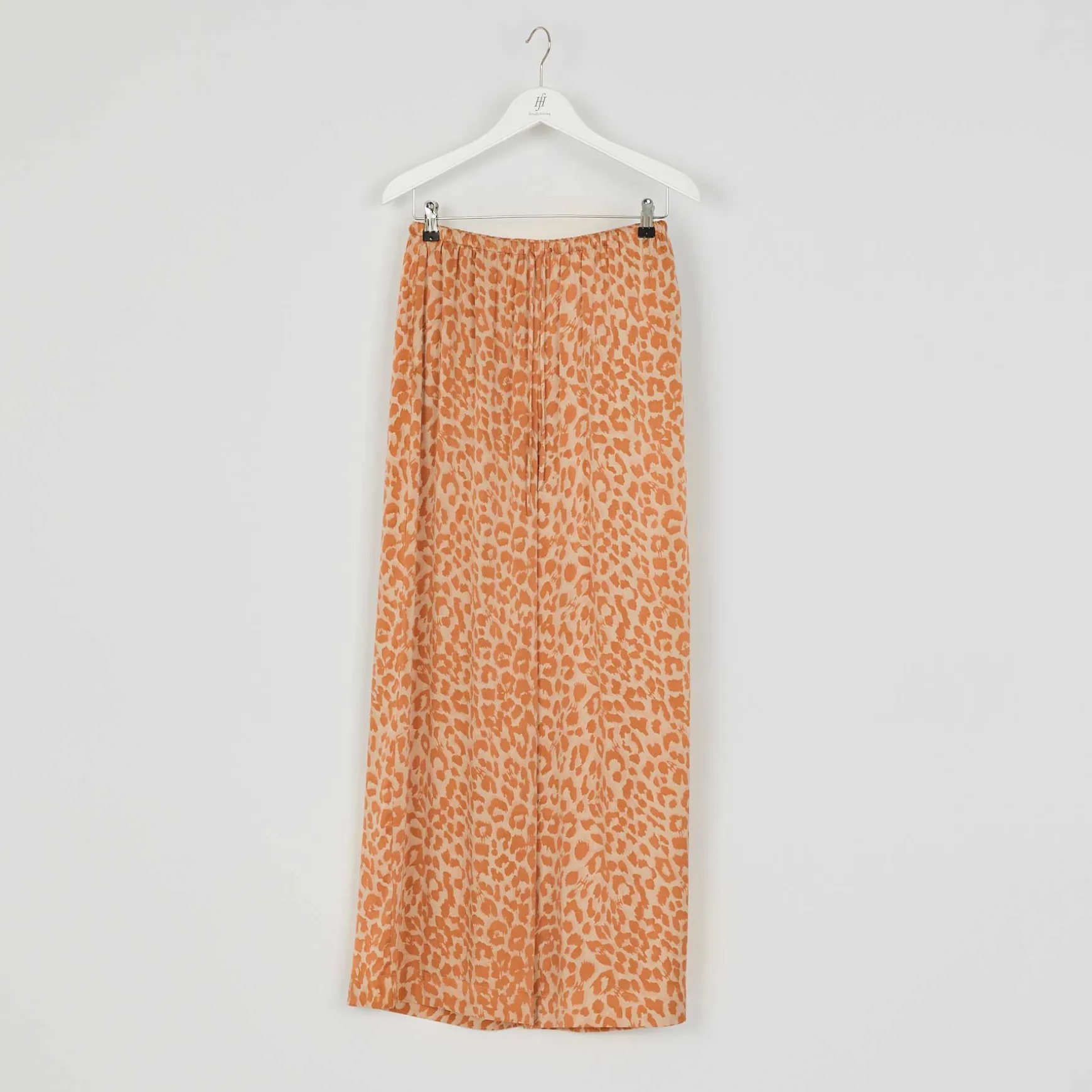 Das Material wird in der Manufaktur in Nepal per Hand aus Seidensatin gewebt. Anschließend wird der Print im Handsiebdruckverfahren auf der Seide platziert.