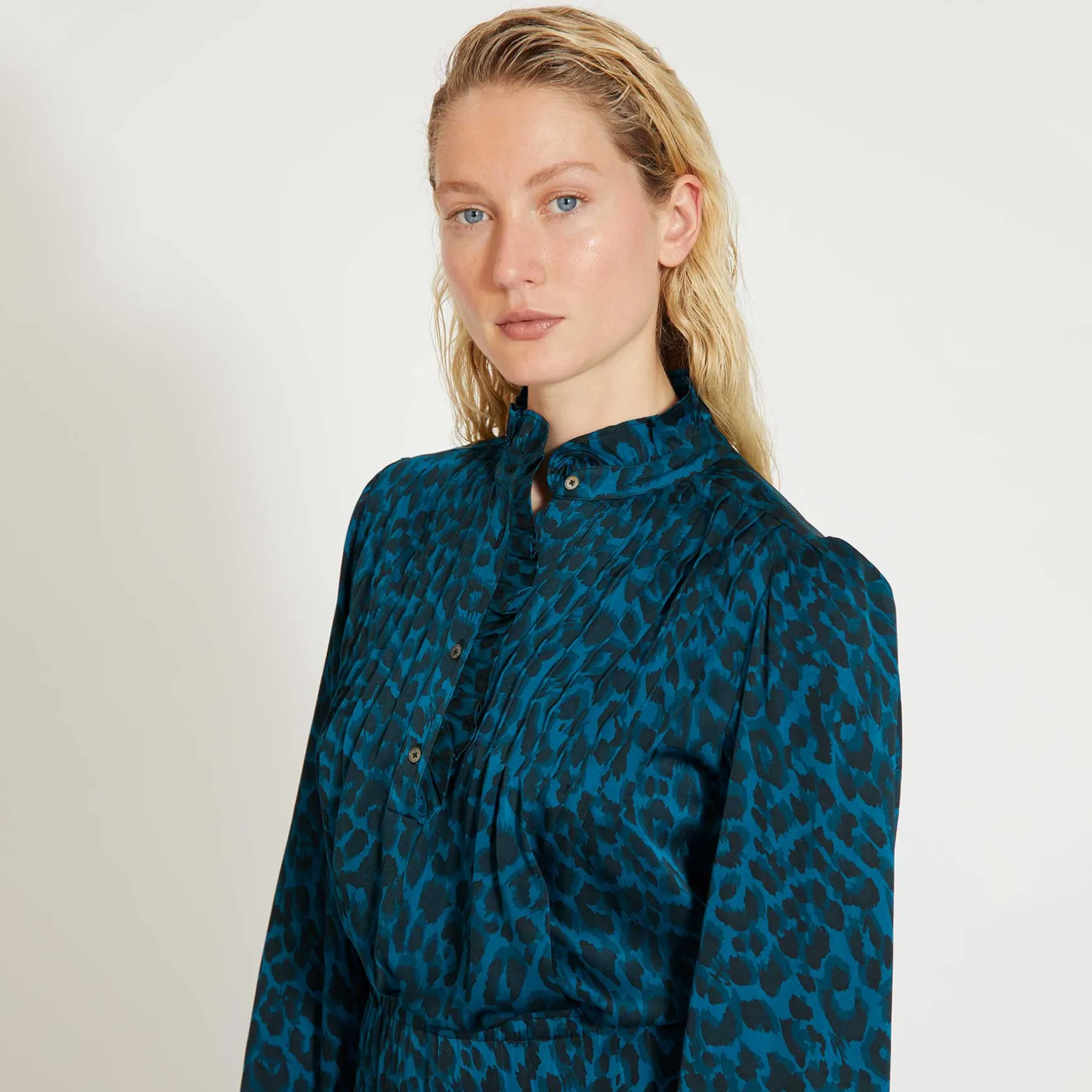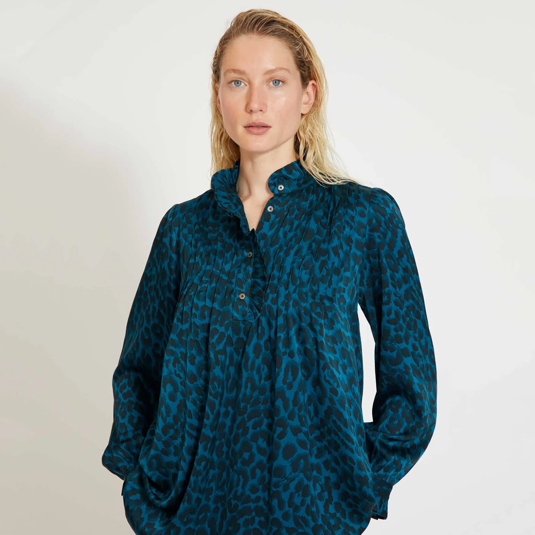 Bluse aus fließender Seide im Allover Signature Print Cheetah.