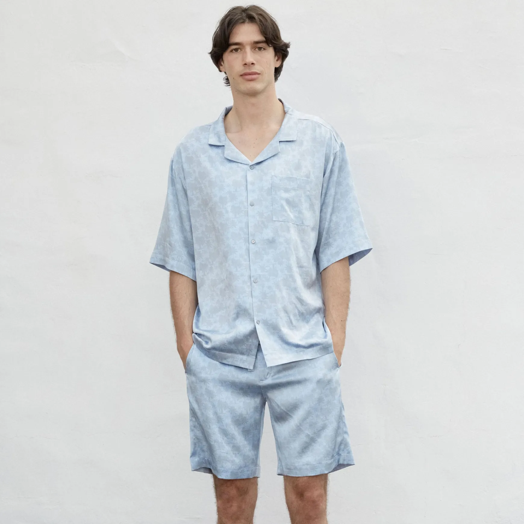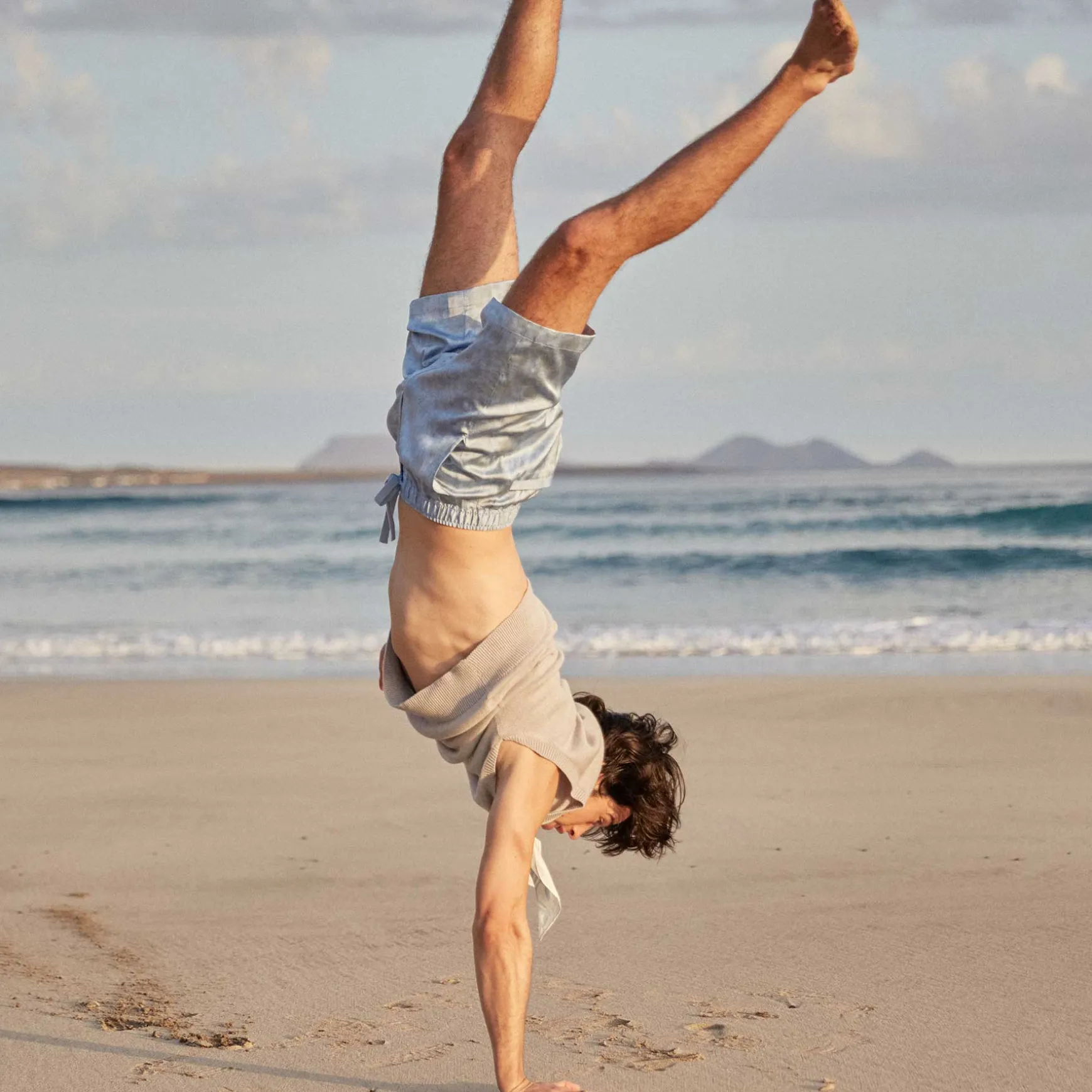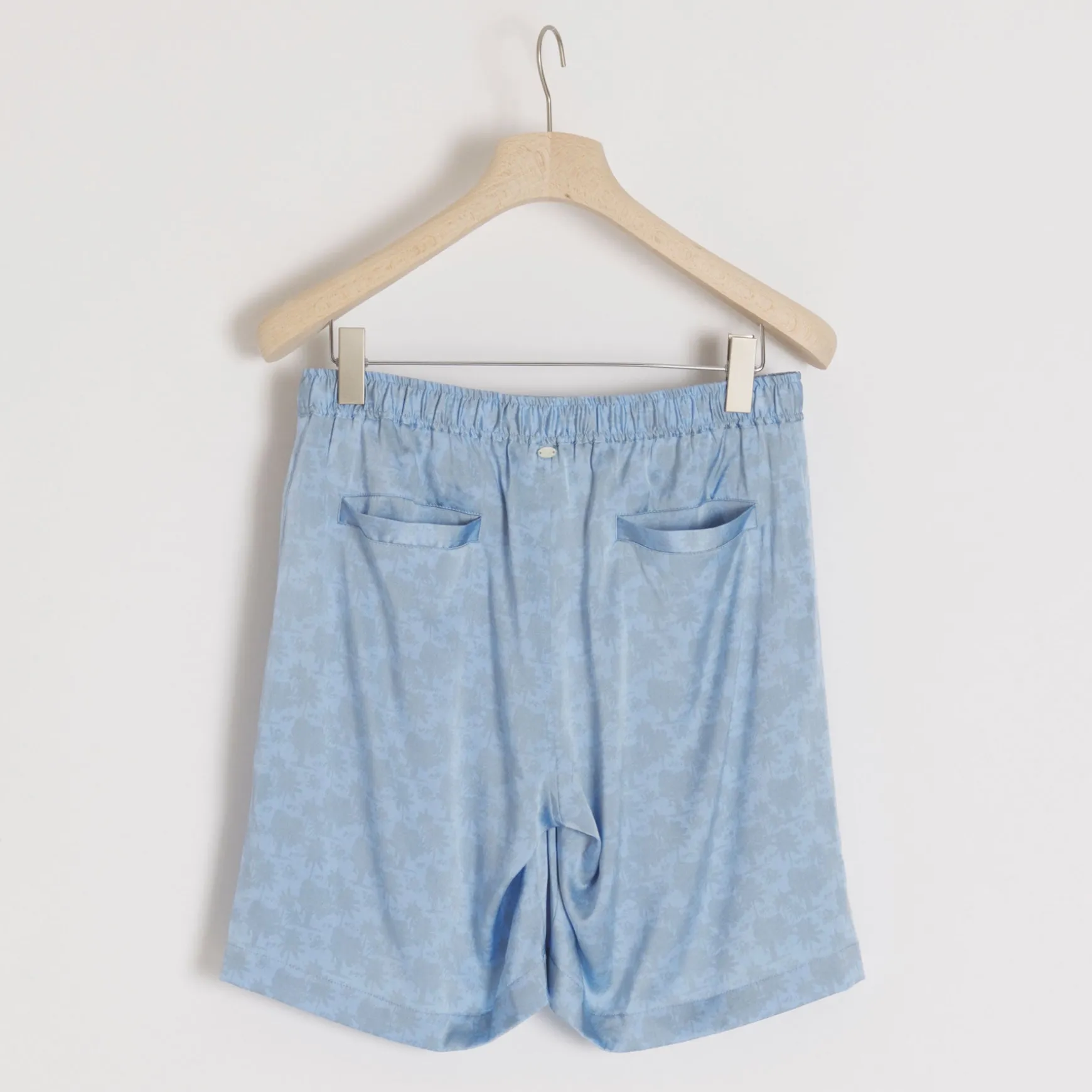 Der Print Palm Spring versprüht pure Sommerlaune. Unzählige Palmen reihen sich wie in einem zarten Millefleur Motiv aneinander und lassen eine spielerische Leichtigkeit entstehen, die an warme Tage und sanfte Brisen erinnert. Es ist die doppelte Wirkung, die Palm Spring so besonders macht. Von weitem wirkt das Muster wie eine raffinierte, grafische Struktur – erst von nahem entdeckt man die tropische Oase und die charmante, unbeschwerte Ästhetik von Palm Spring. Es ist eben alles einfach ein bisschen heller und entspannter unter Palmen.