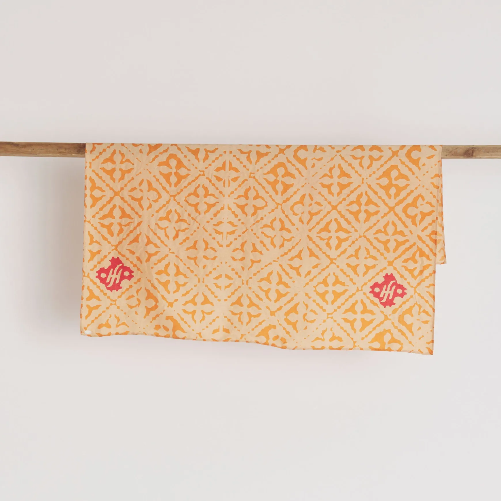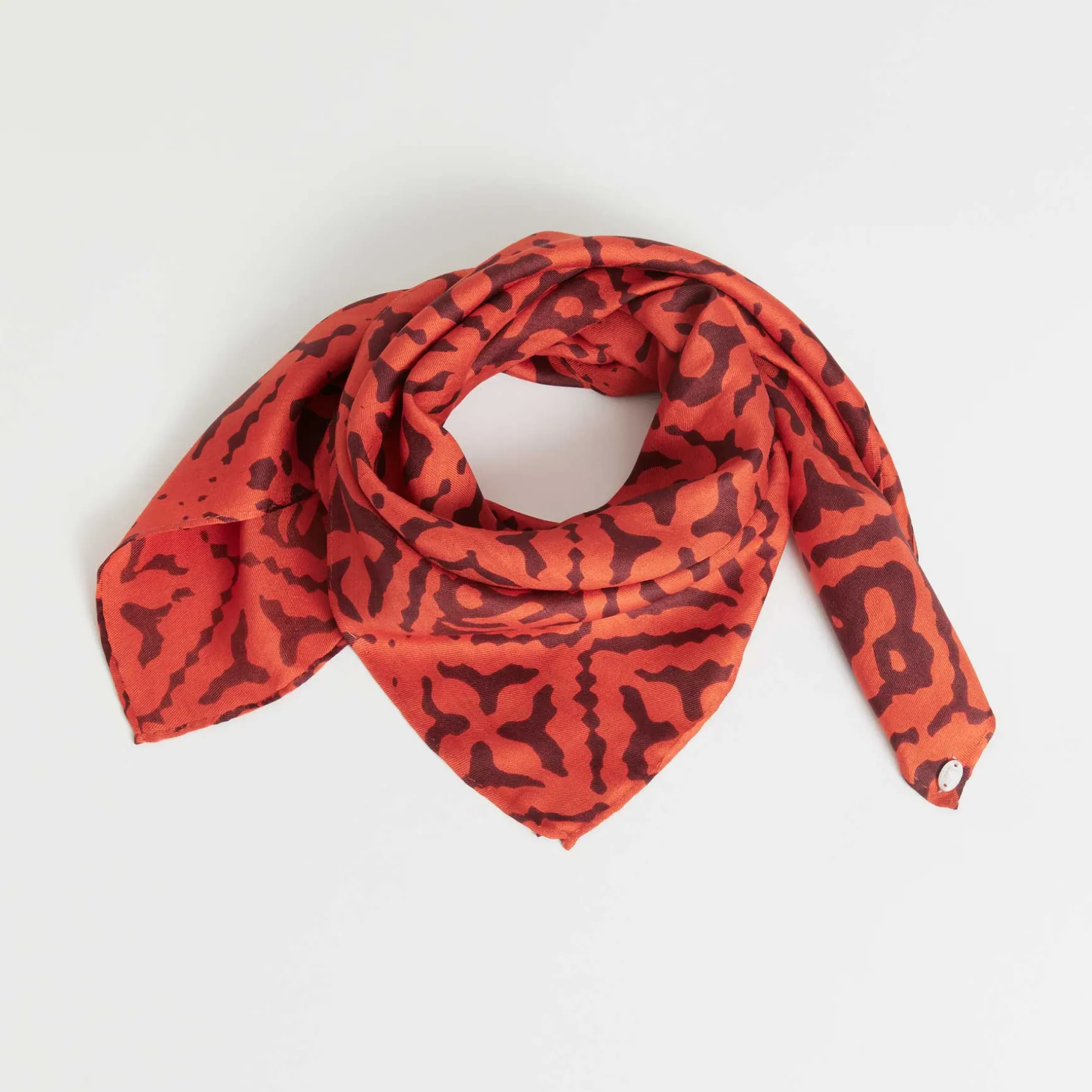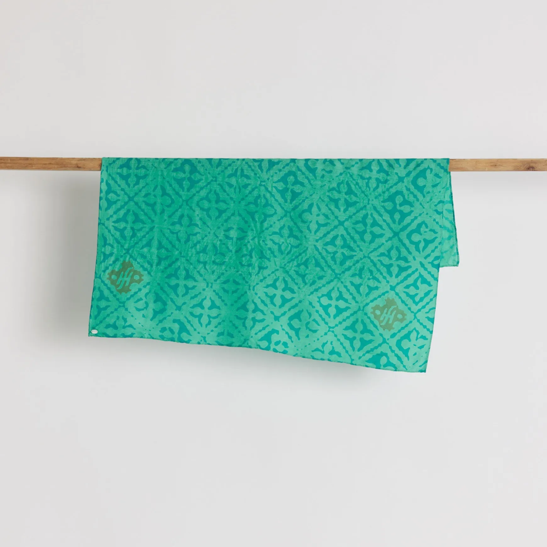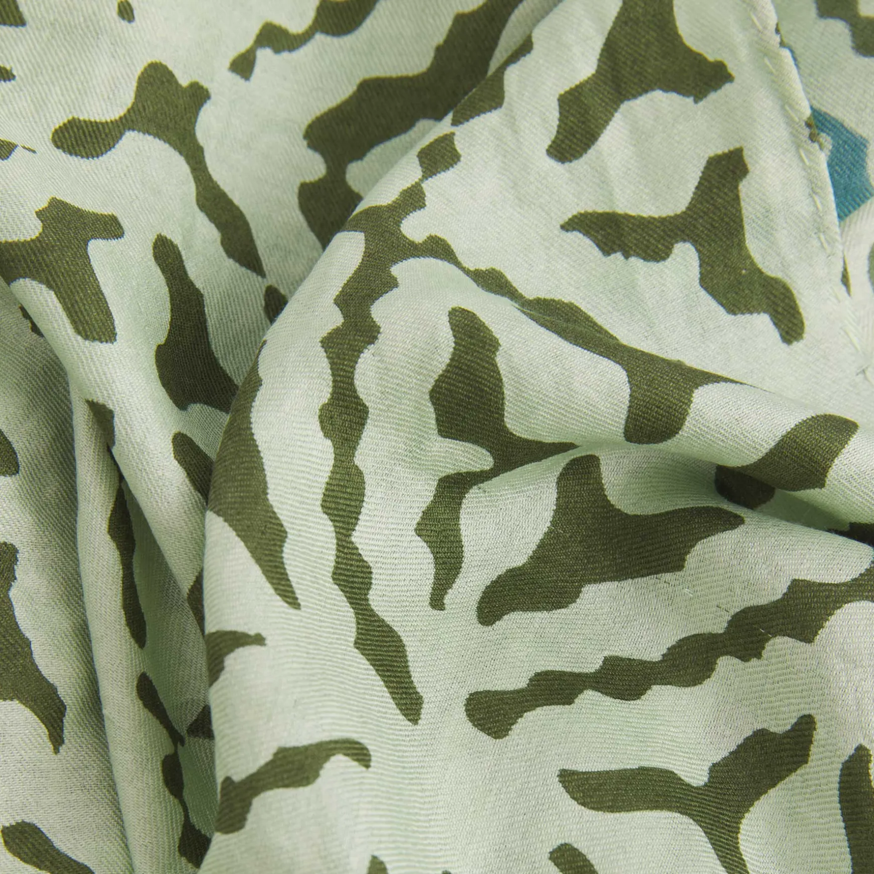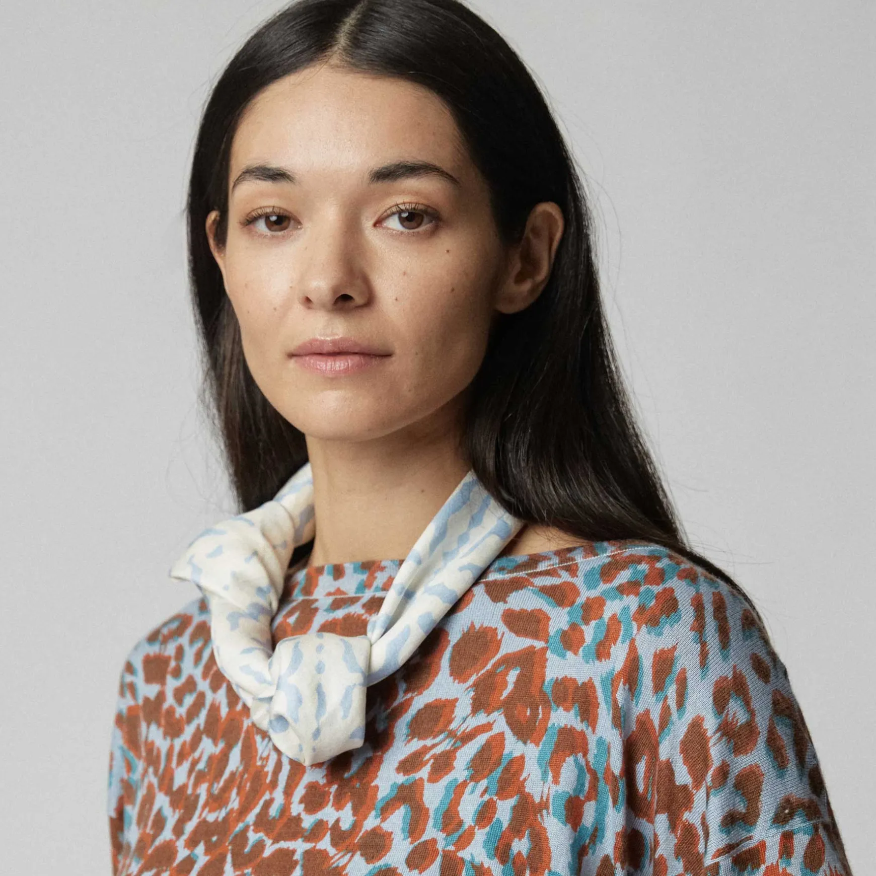 Der Silktwill Midicube wird in unserer Manufaktur in Nepal aus 100% Seide quadratisch handgewebt. Anschließend wird der Print mit Handsiebdruck auf dem Schal platziert.