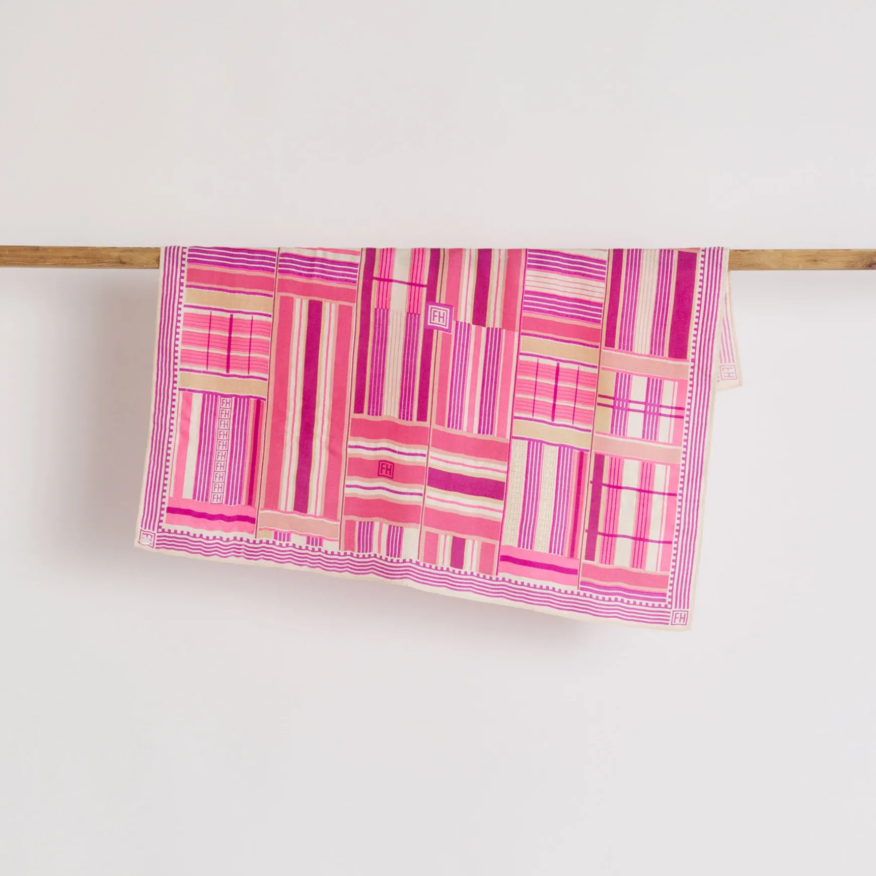 Der Silktwill Midicube wird in unserer Manufaktur in Nepal aus 100% Seide quadratisch handgewebt. Anschließend wird der Print mit Handsiebdruck auf dem Schal platziert.