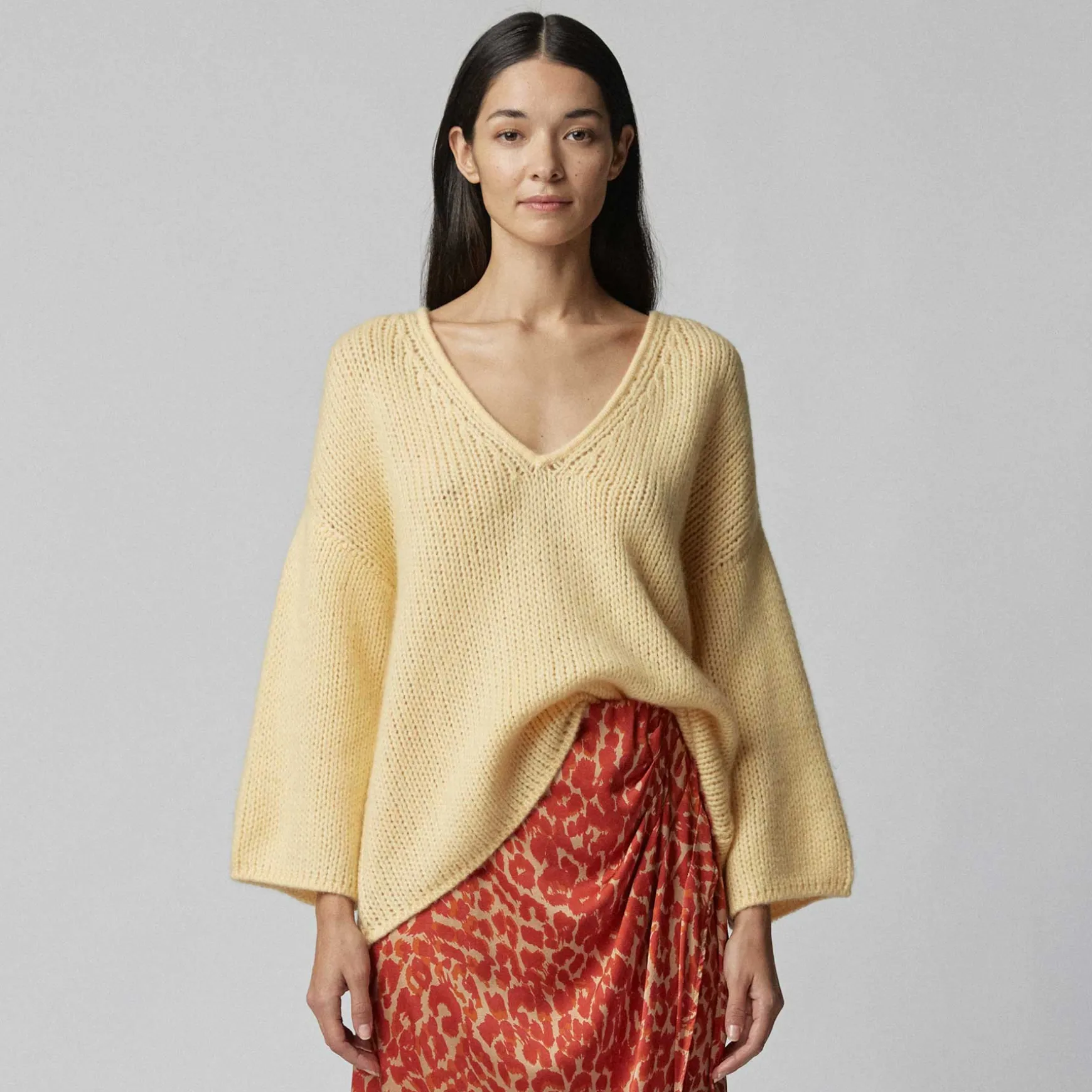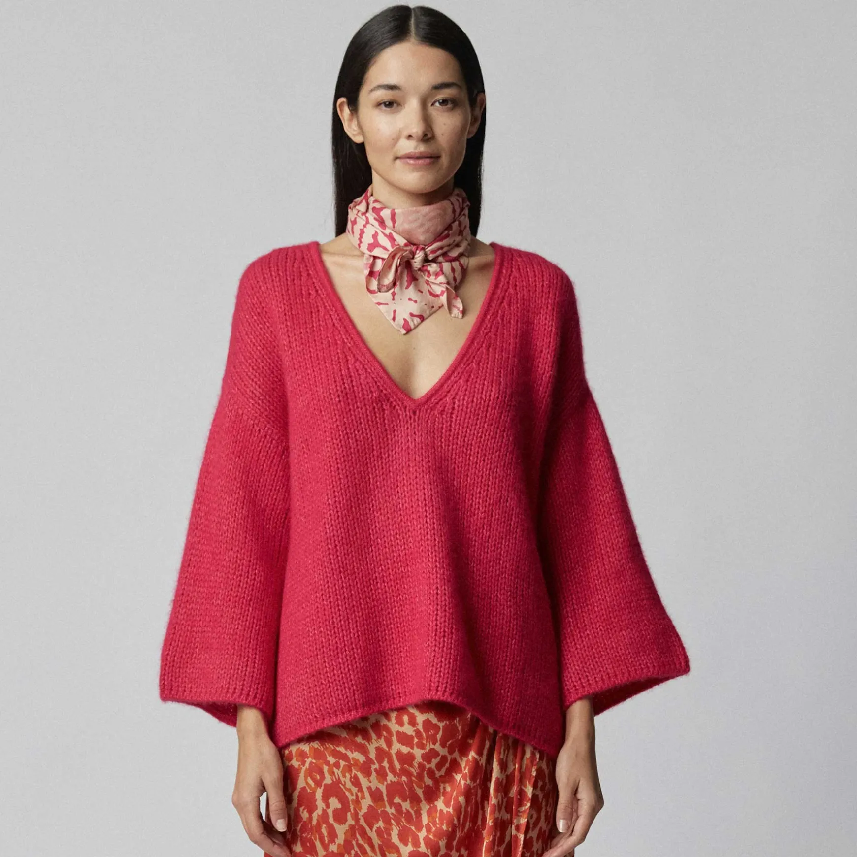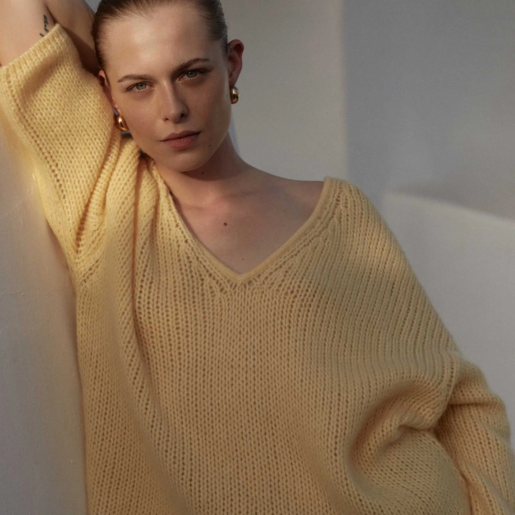 Kuschliger und sehr angenehmer Strickpullover mit v-neck im Oversized Look.