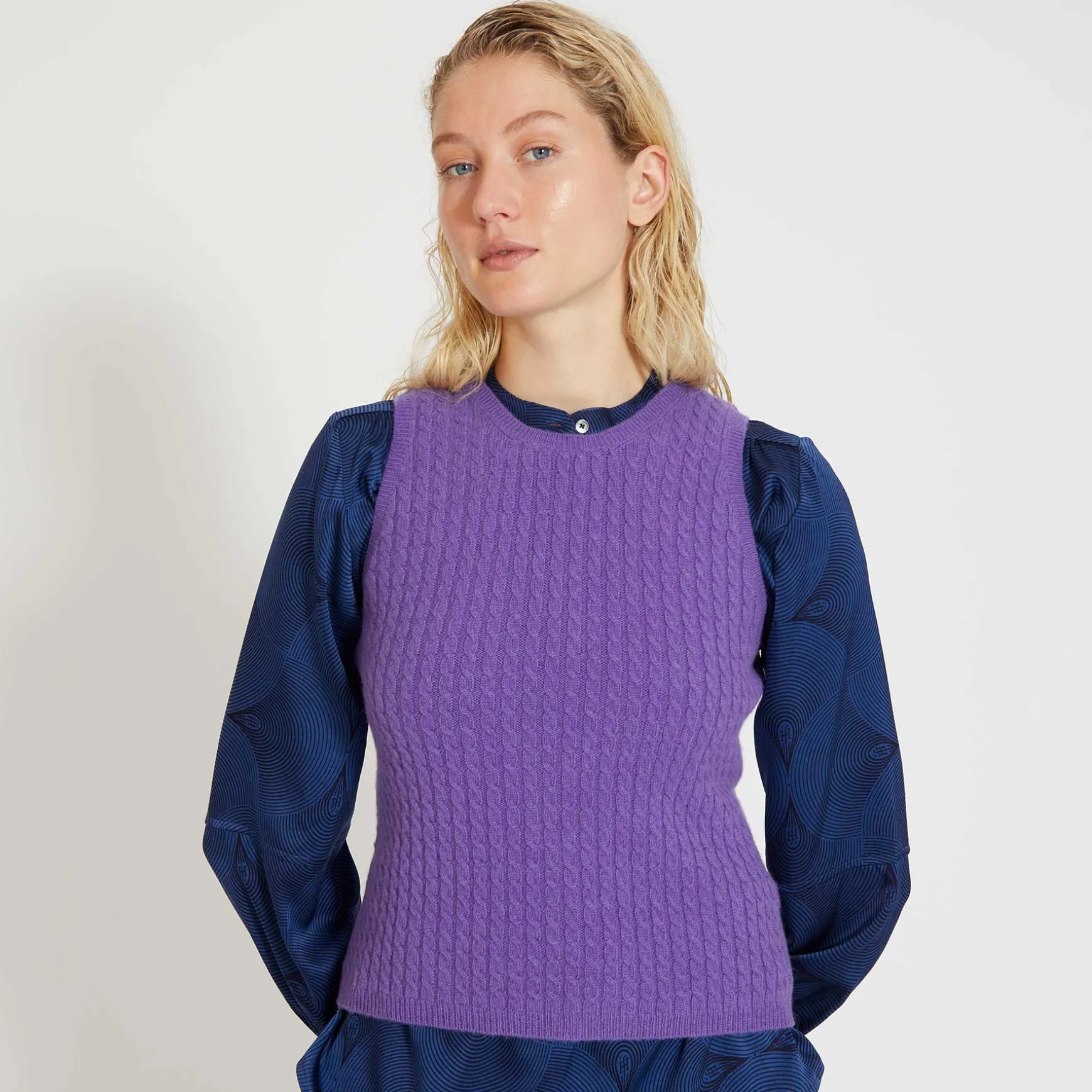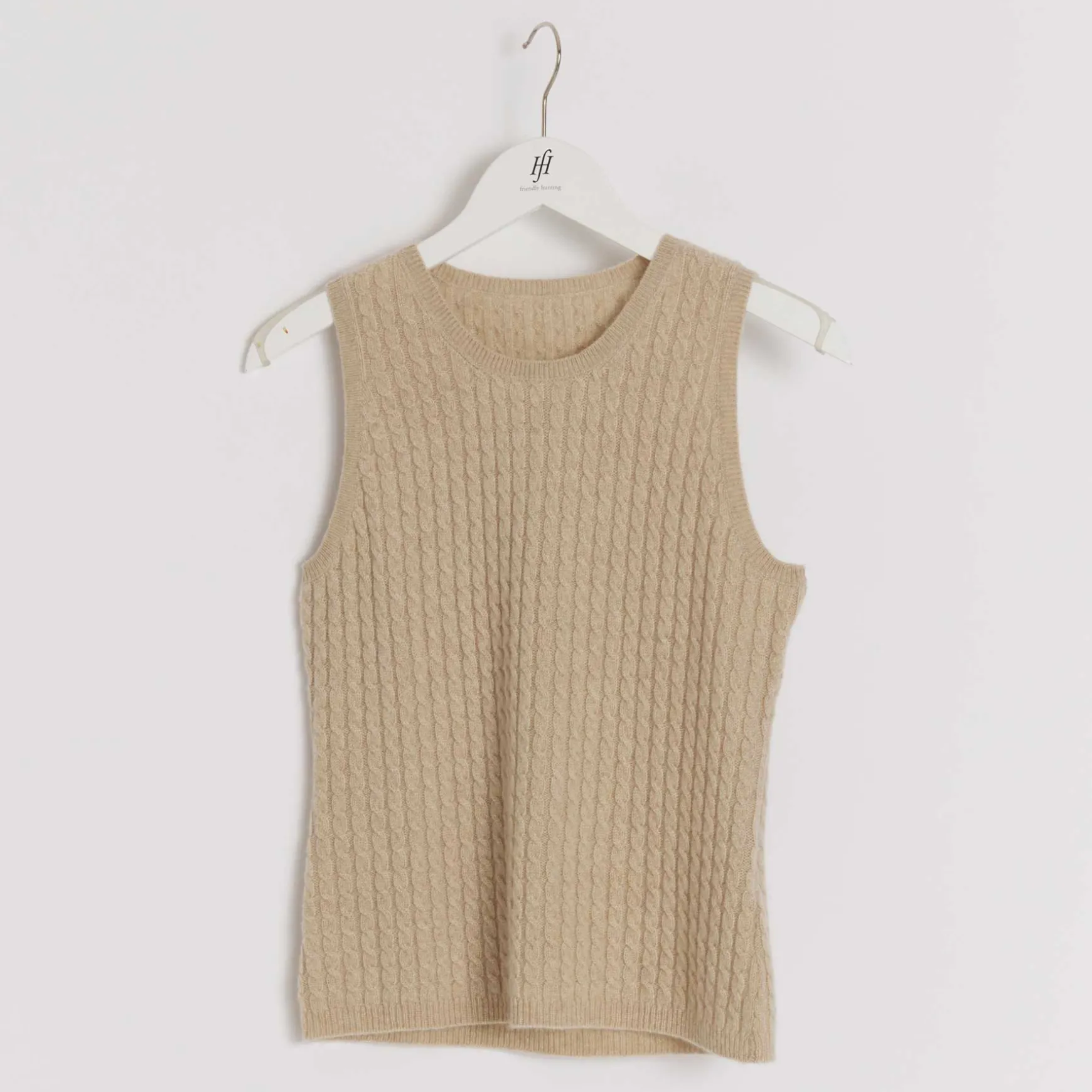 Top mit Zopfstrickmuster und breiten Trägern. Das Top kann einzeln oder als Set mit dem Cardigan Bacar getragen werden.