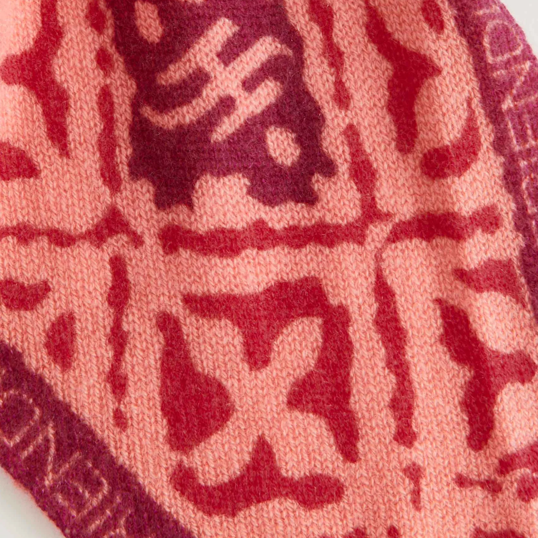 Der friendly hunting Triangle wird in der Manufaktur in Nepal aus Cashmere Garn in einem einheitlichen Maschenbild per Hand gestrickt und anschließend im Handsiebdruckverfahren bedruckt.
