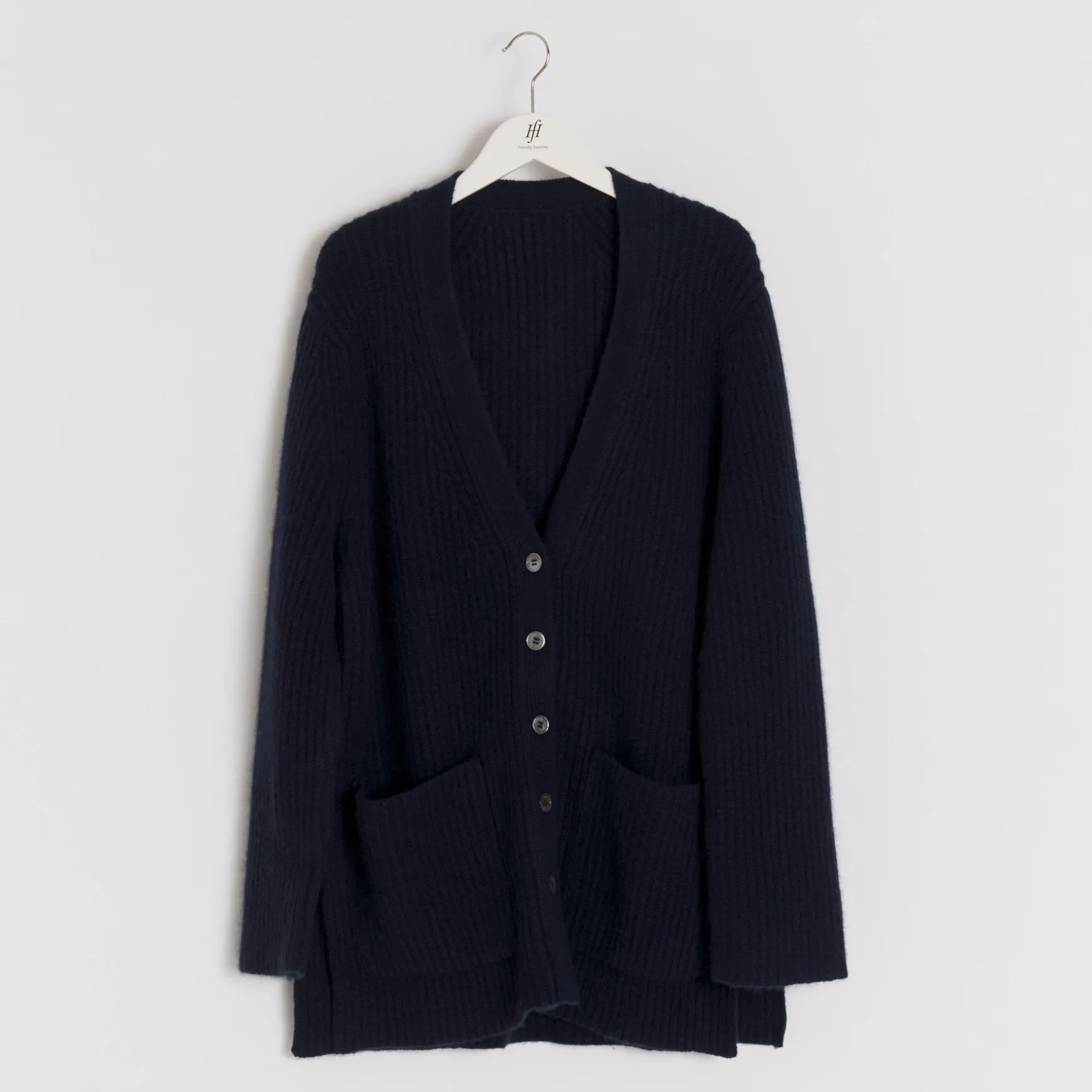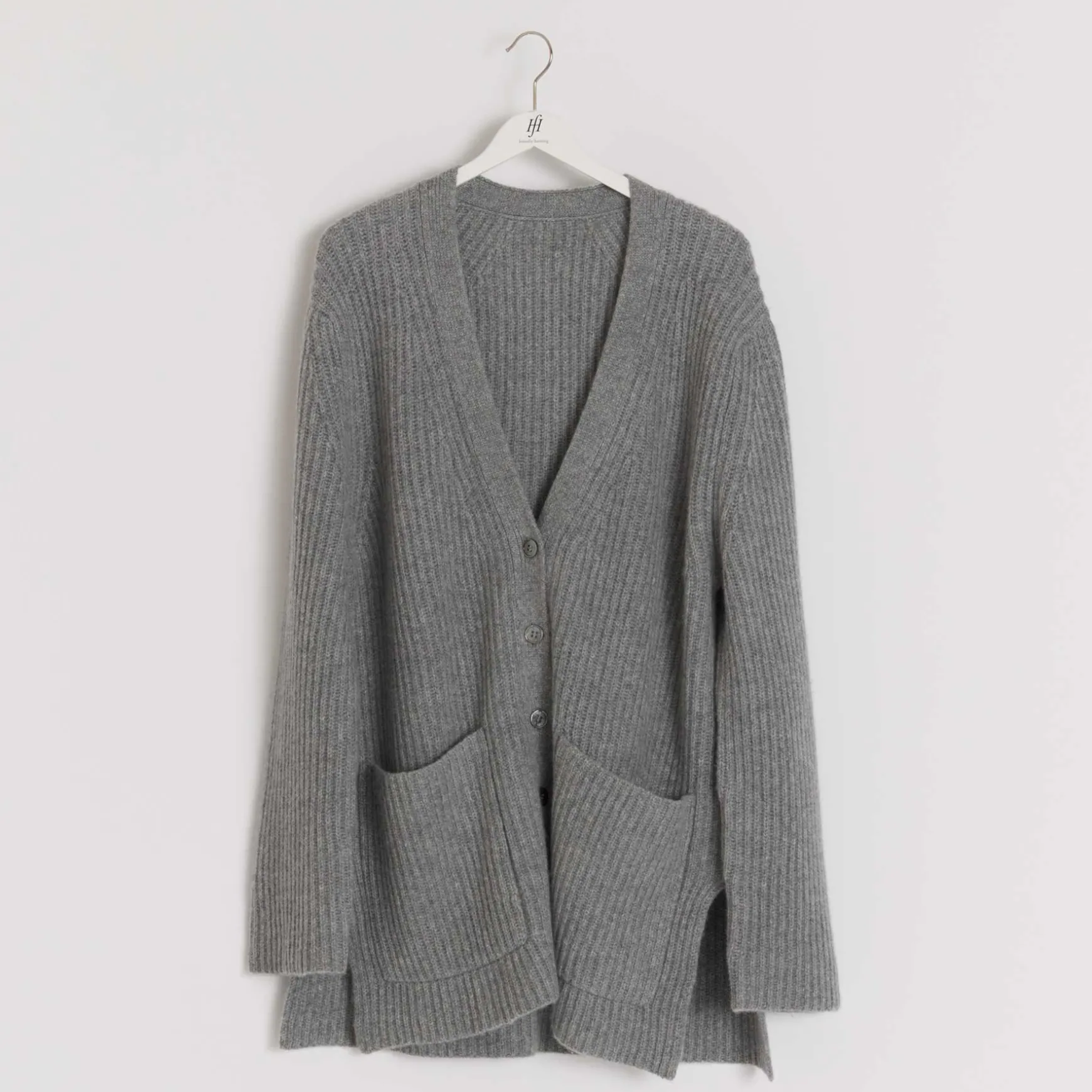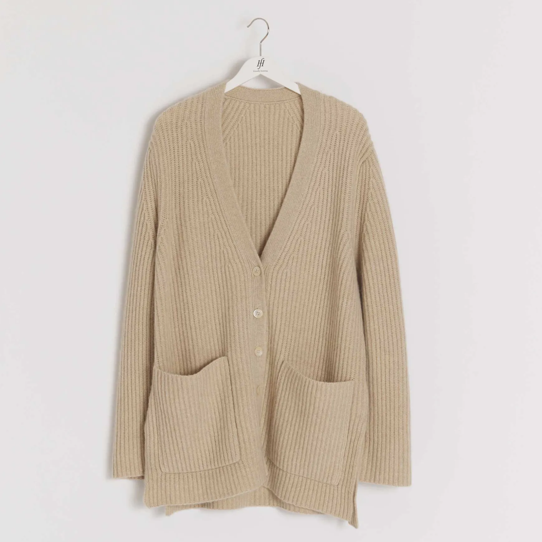 Feinste Handarbeit aus reinem Cashmere Garn macht diese wunderschöne Strickjacke zu einem Hingucker. Der Cardigan überzeugt mit einem einzigartigen Strickmuster und aufgesetzten Taschen.