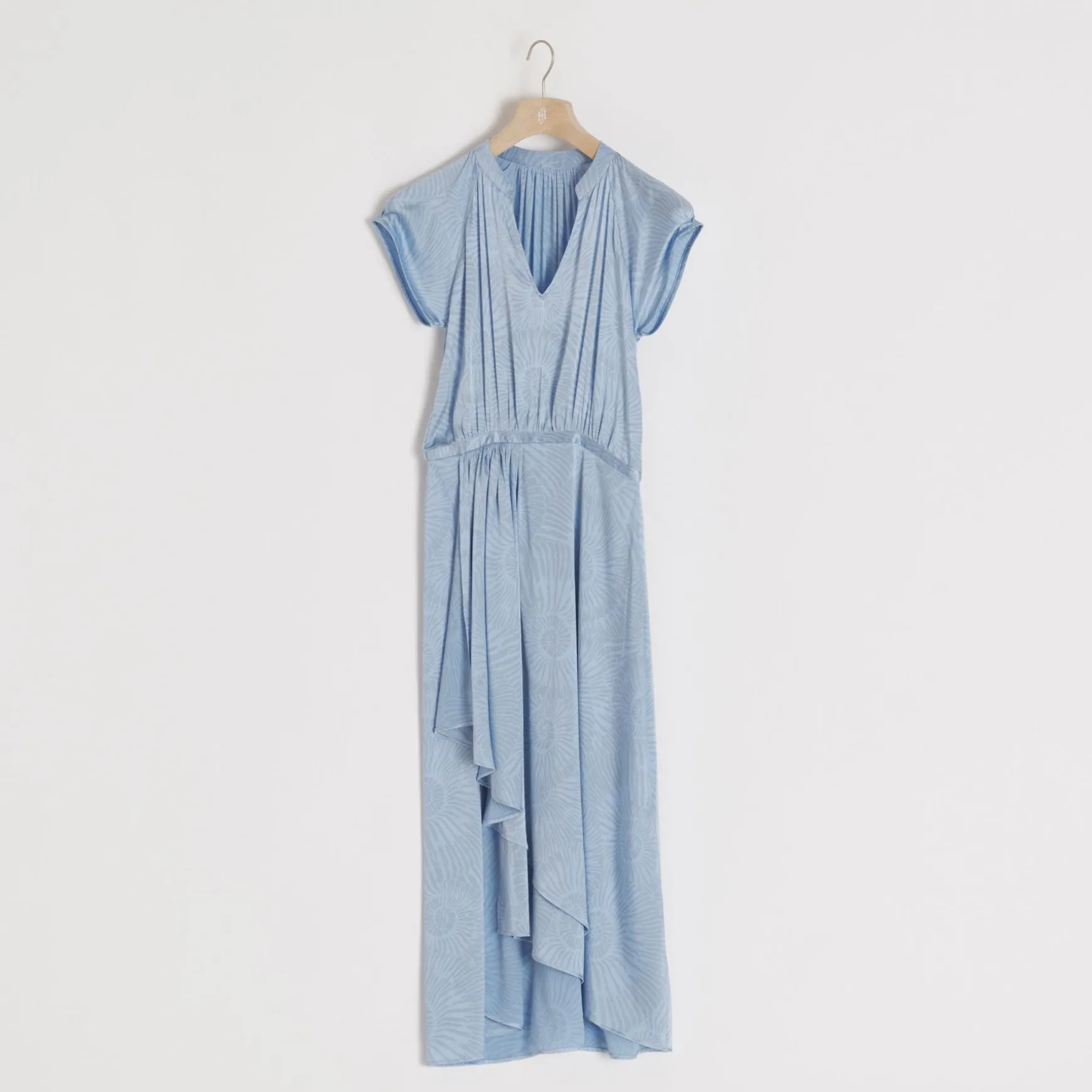 Midikleid aus fließender Seide im All Over Print Escargot. Der Rock ist hinten etwas länger als vorne und überzeugt mit wunderschönen leichten Volants.