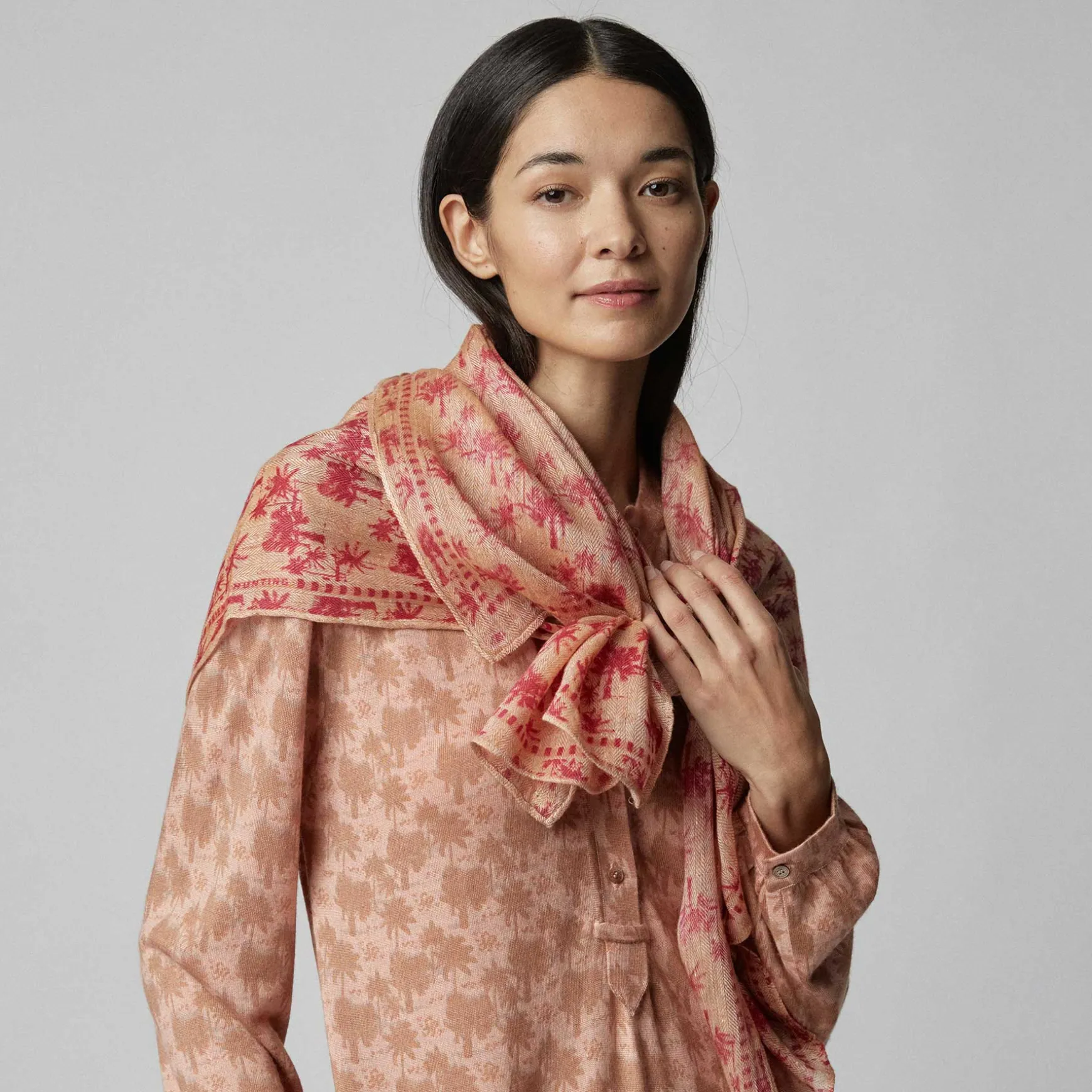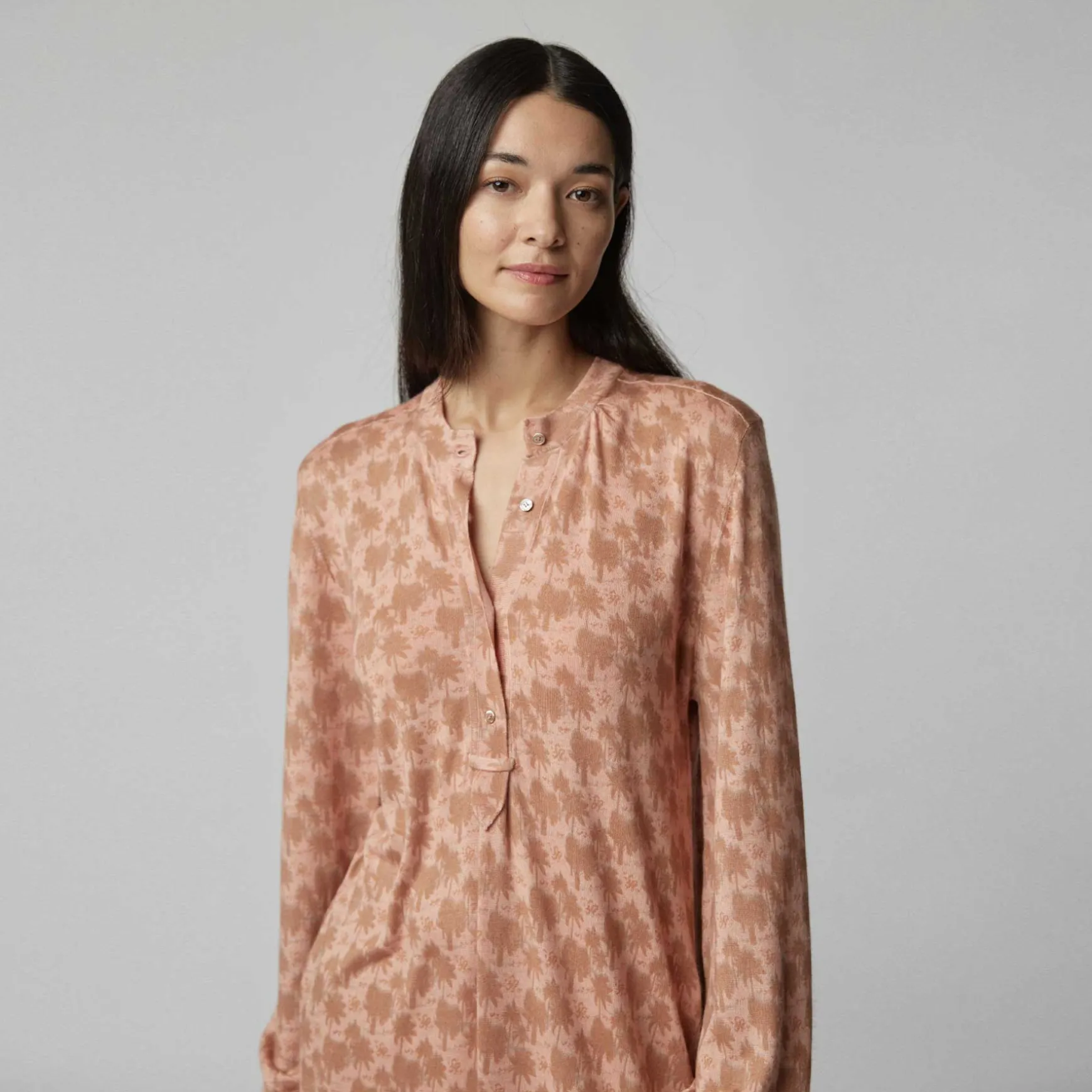 Der Print Palm Spring versprüht pure Sommerlaune. Unzählige Palmen reihen sich wie in einem zarten Millefleur Motiv aneinander und lassen eine spielerische Leichtigkeit entstehen, die an warme Tage und sanfte Brisen erinnert. Es ist die doppelte Wirkung, die Palm Spring so besonders macht. Von weitem wirkt das Muster wie eine raffinierte, grafische Struktur – erst von nahem entdeckt man die tropische Oase und die charmante, unbeschwerte Ästhetik von Palm Spring. Es ist eben alles einfach ein bisschen heller und entspannter unter Palmen.