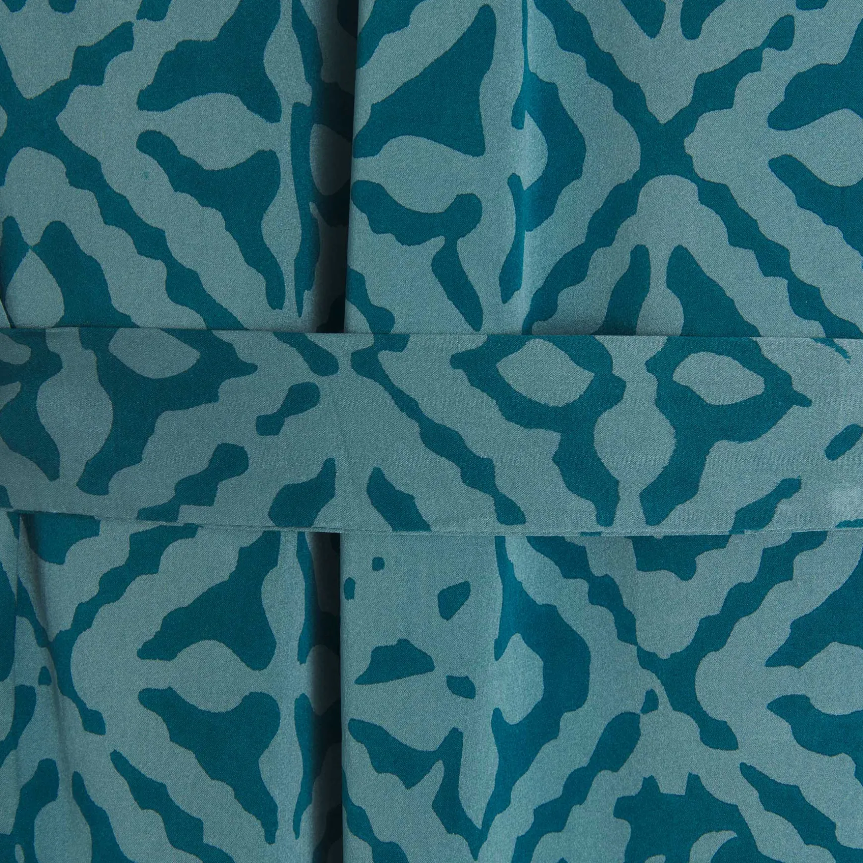 Das Material wird in der Manufaktur in Nepal per Hand aus Seidensatin gewebt. Anschließend wird der Print im Handsiebdruckverfahren auf der Seide platziert.