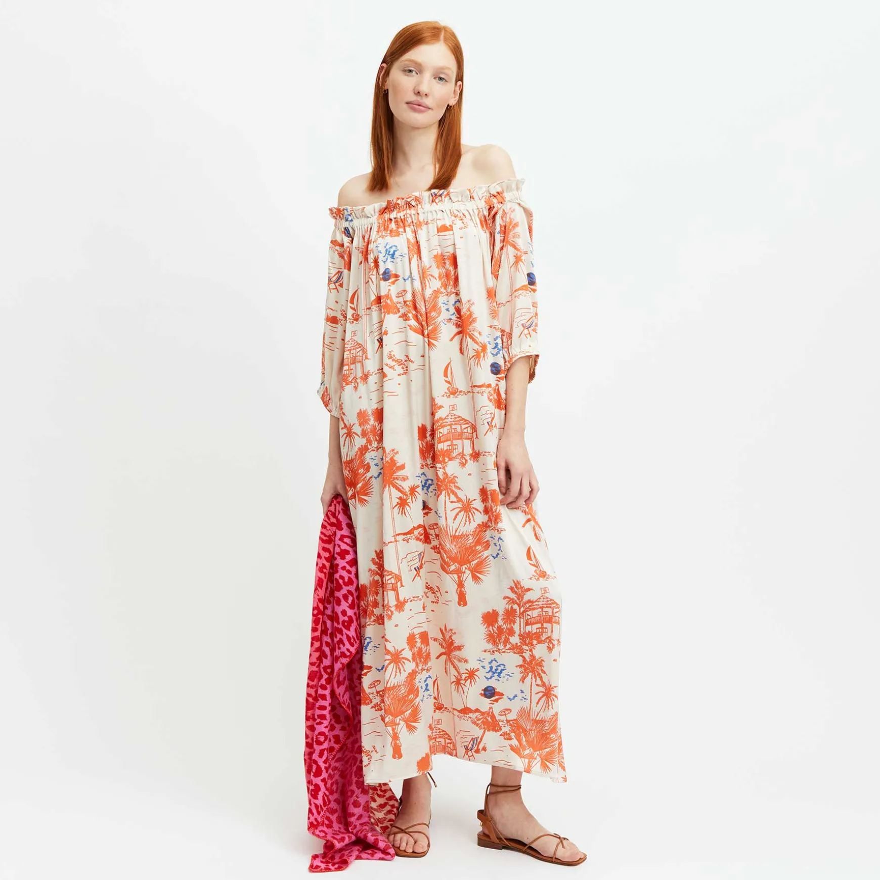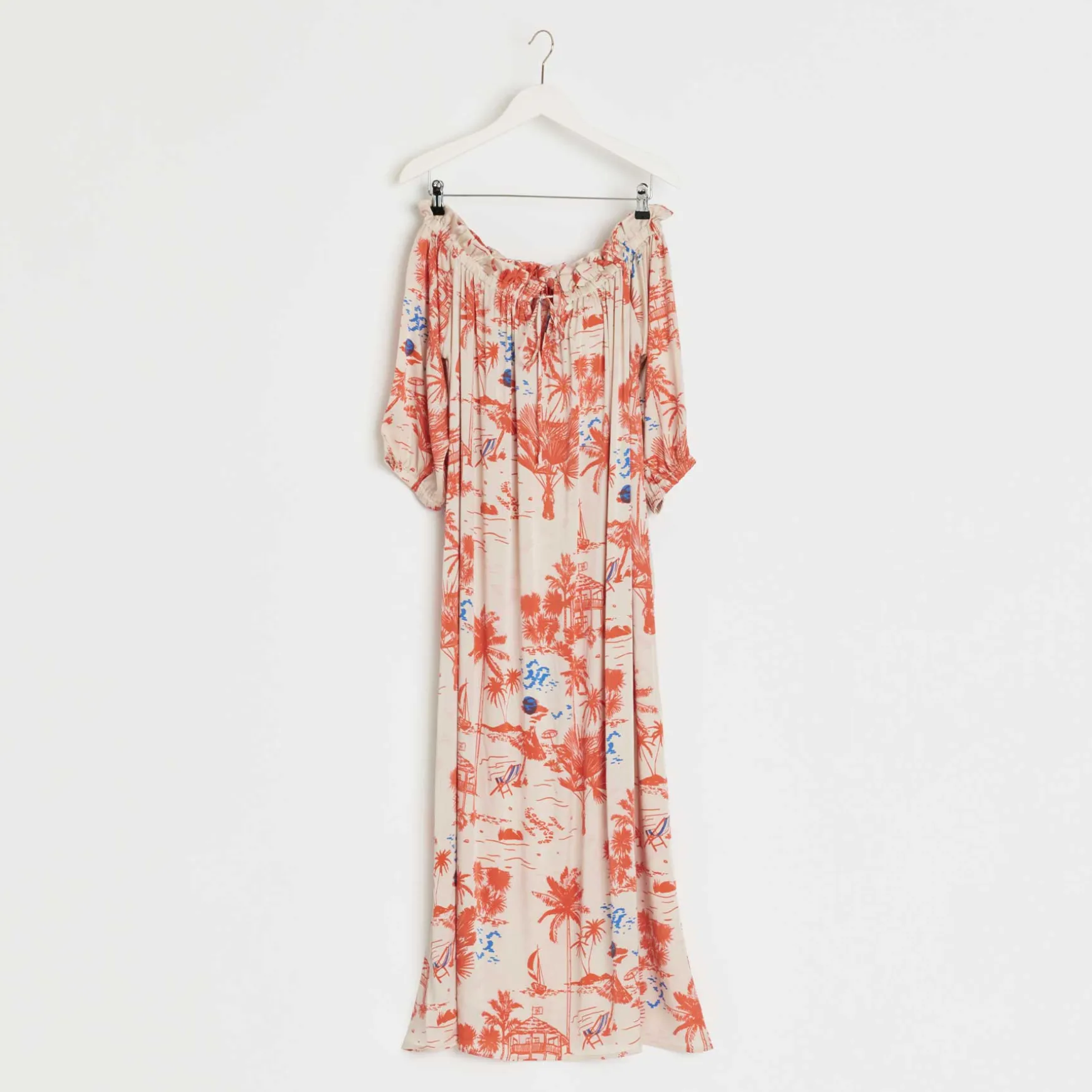 Langes Maxikleid aus fließender Seide im All Over Print BEACH CLUB.