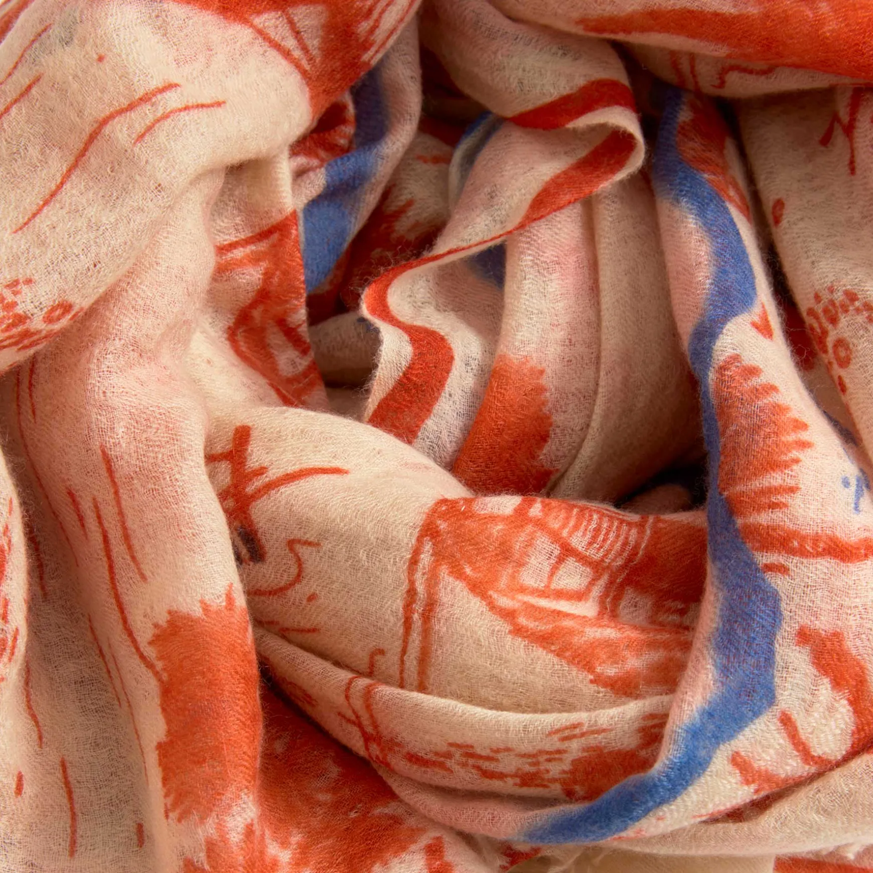 Die friendly hunting Felted Stole wird in unserer Manufaktur in Nepal aus 100% Cashmere handgewebt und anschließend gefilzt. Ihre dichte Struktur mildert die Empfindlichkeit dieses mit Hand Sieb bedruckten, fragilen Materials.