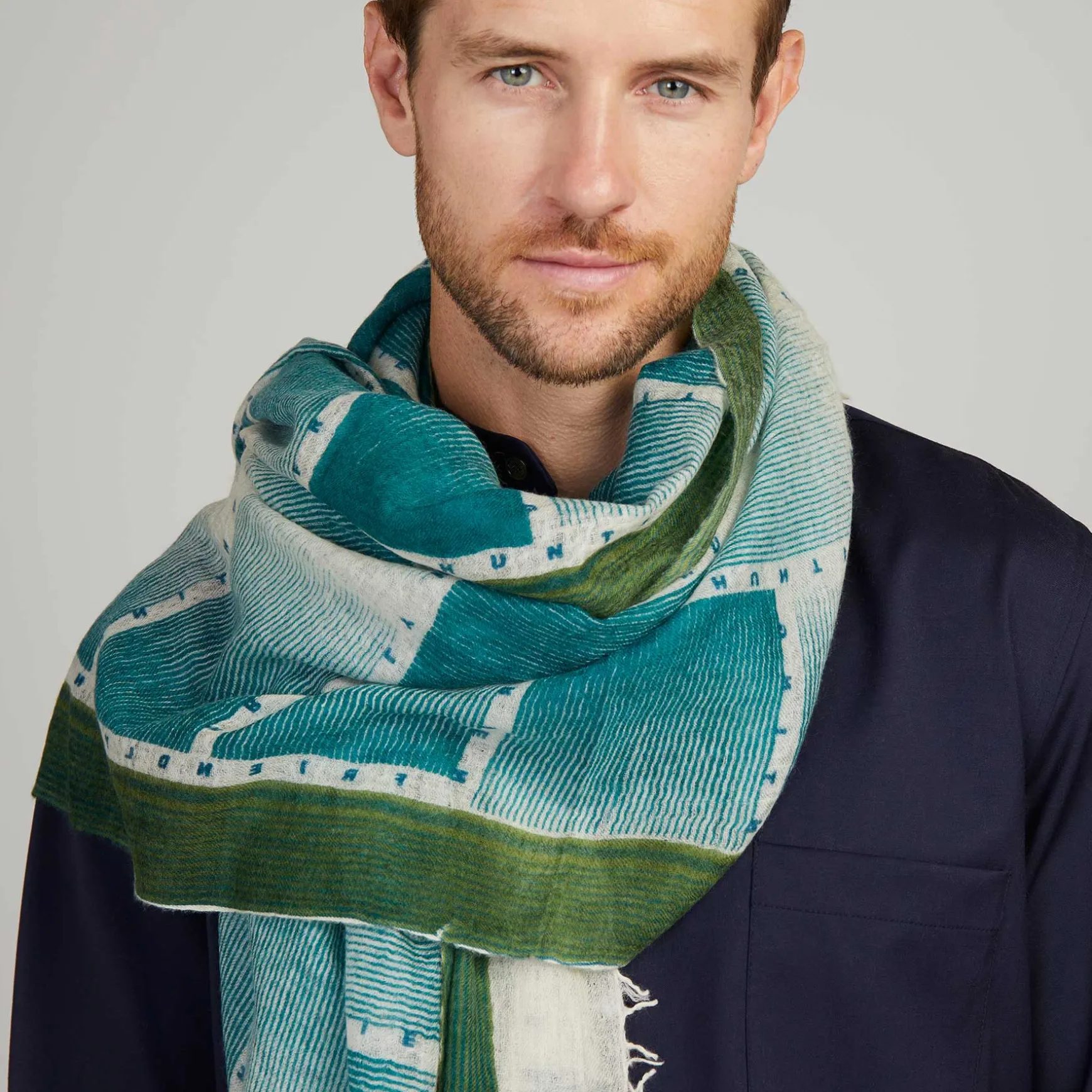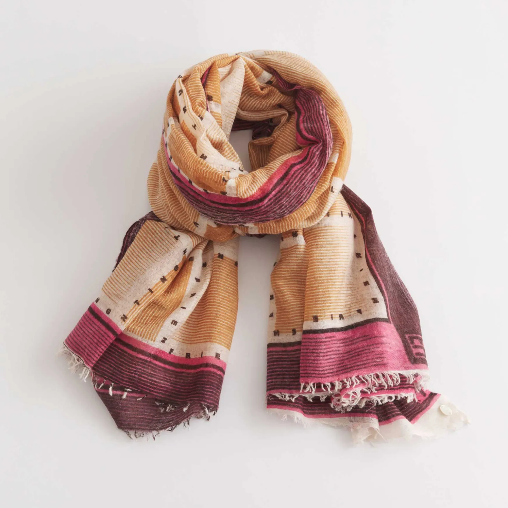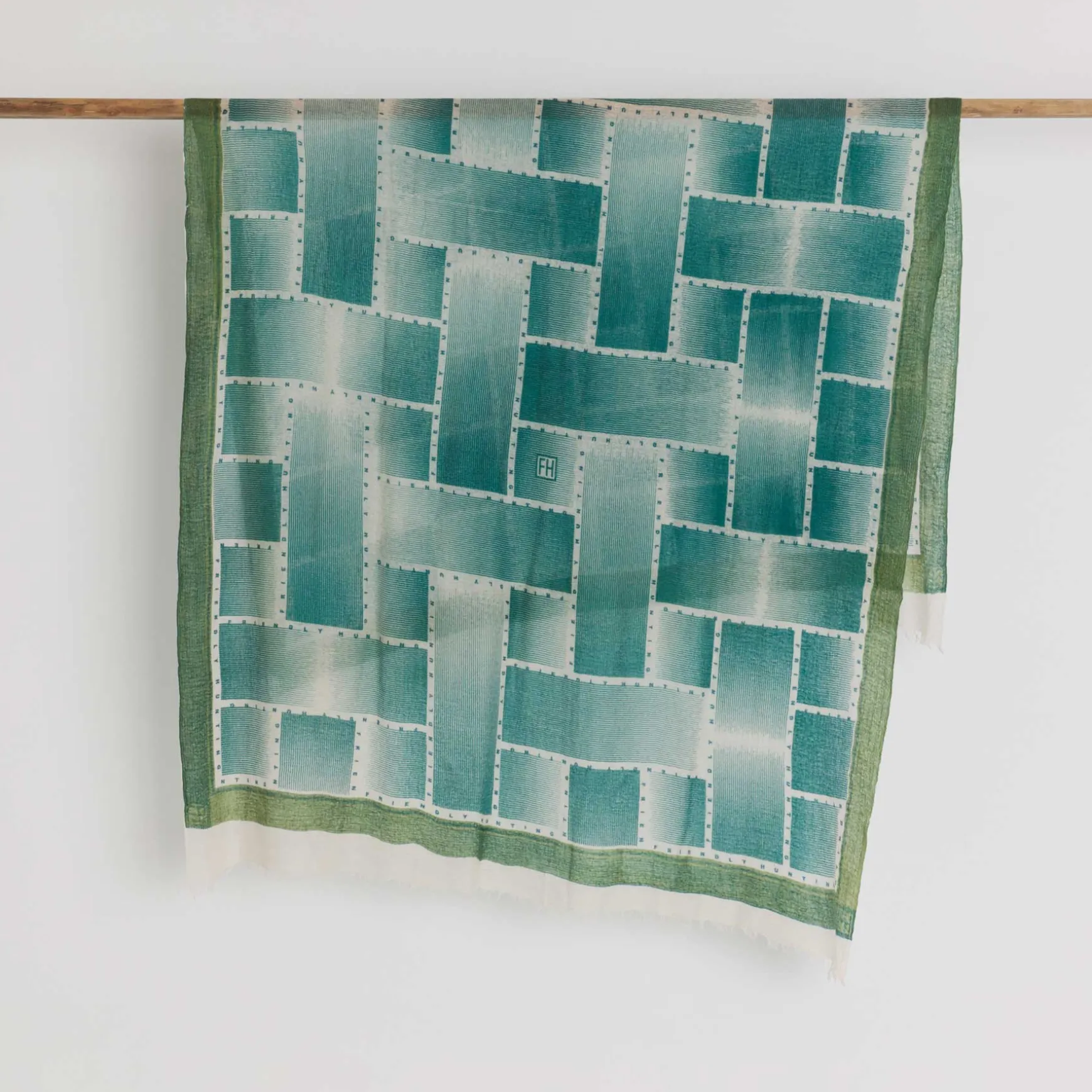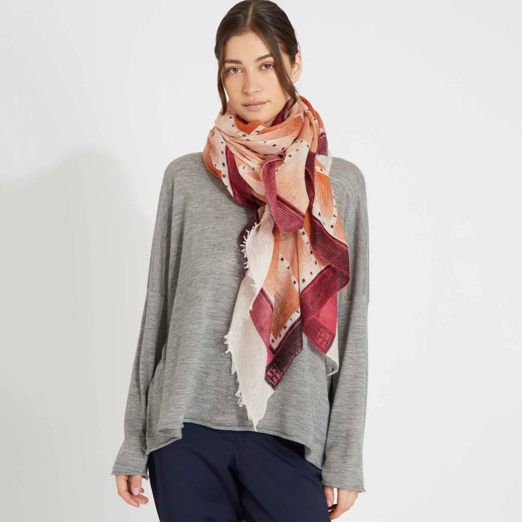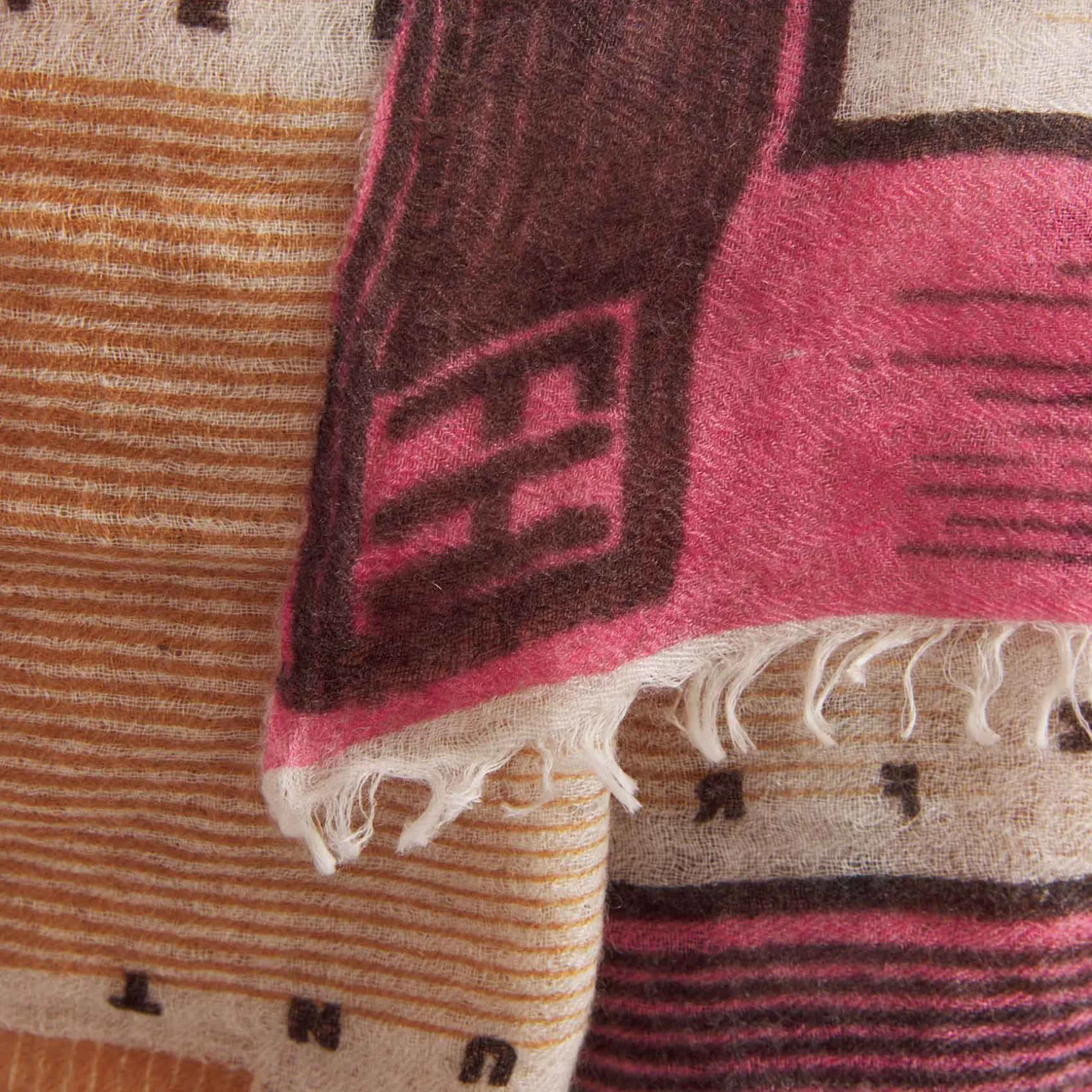 Die friendly hunting Felted Stole wird in unserer Manufaktur in Nepal aus 100% Cashmere handgewebt und anschließend gefilzt. Ihre dichte Struktur mildert die Empfindlichkeit dieses mit Hand Sieb bedruckten, fragilen Materials.