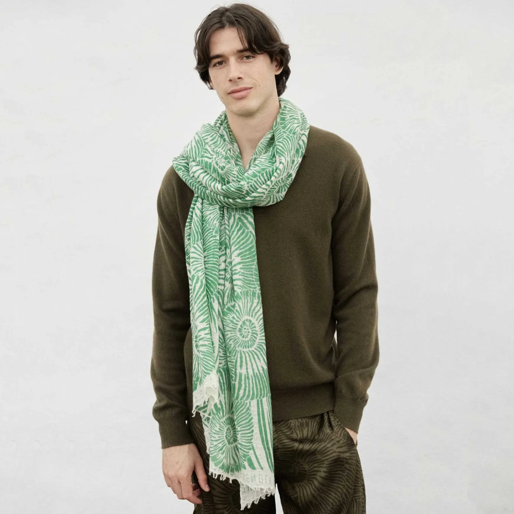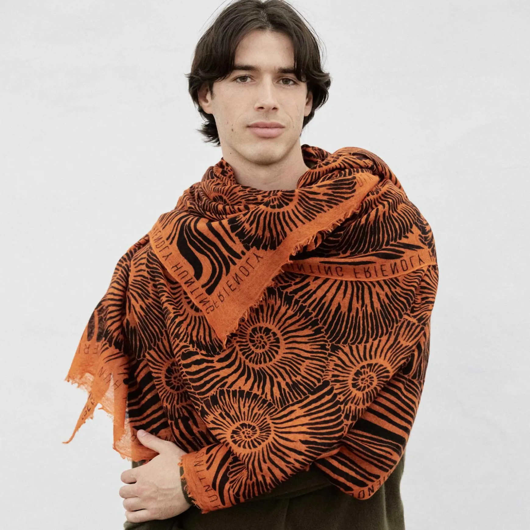 Die friendly hunting Felted Stole wird in unserer Manufaktur in Nepal aus 100% Cashmere handgewebt und anschließend gefilzt. Ihre dichte Struktur mildert die Empfindlichkeit dieses mit Hand Sieb bedruckten, fragilen Materials.
