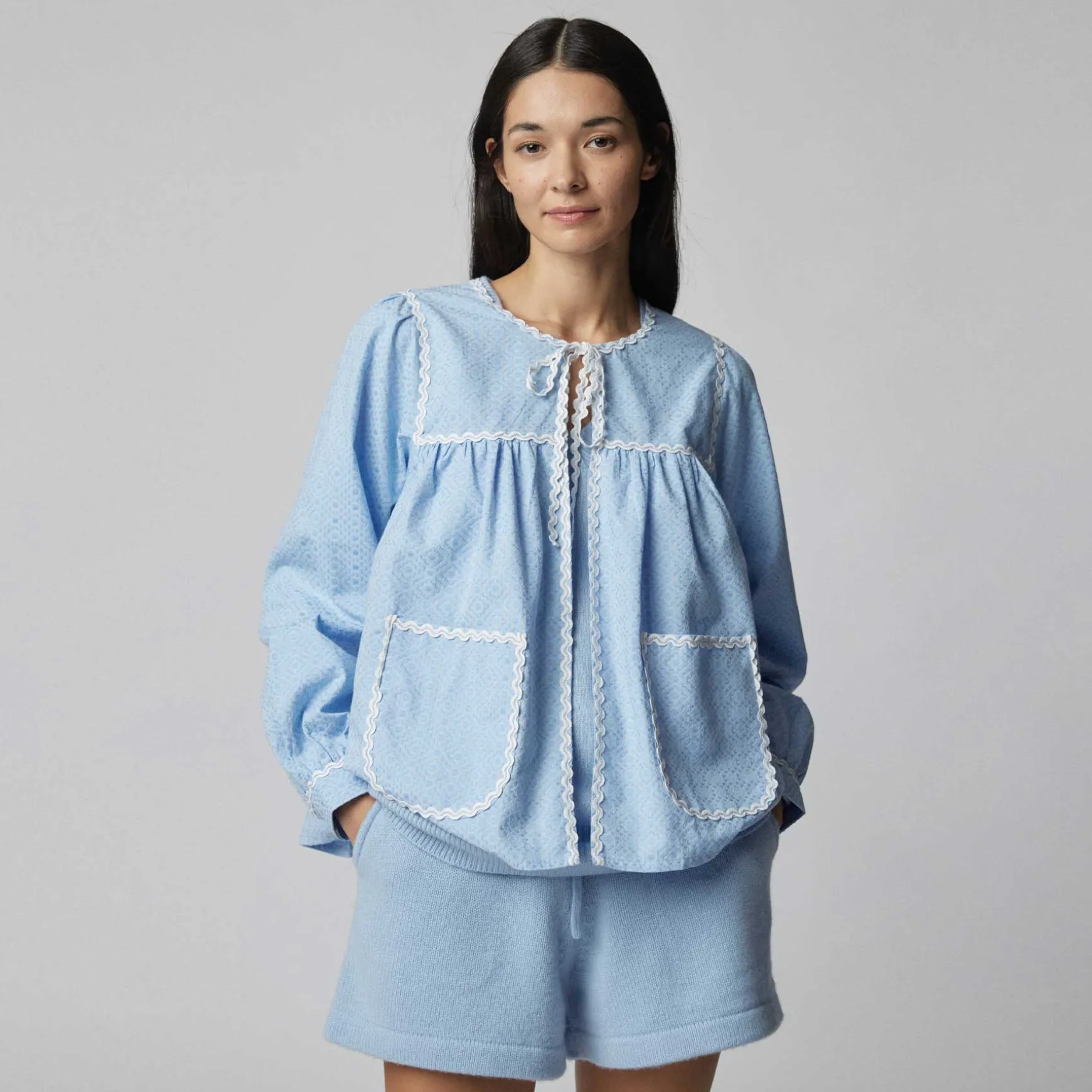 Jäckchen aus einzigartigem Stoff und mit schöner Struktur. Die Jacke überzeugt mit einem dekorativen Wellenband, aufgesetzten Taschen und einer Schleife am Kragen.