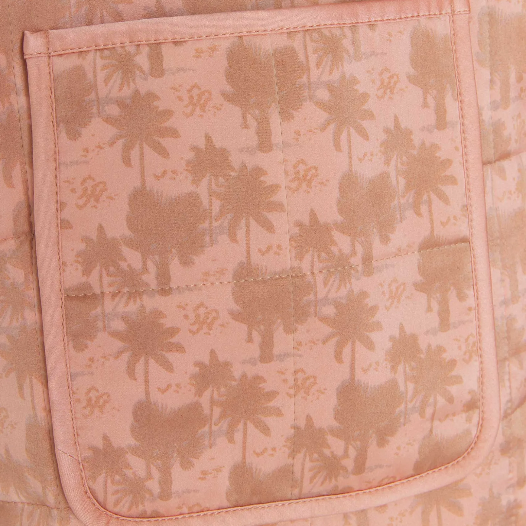 Der Print Palm Spring versprüht pure Sommerlaune. Unzählige Palmen reihen sich wie in einem zarten Millefleur Motiv aneinander und lassen eine spielerische Leichtigkeit entstehen, die an warme Tage und sanfte Brisen erinnert. Es ist die doppelte Wirkung, die Palm Spring so besonders macht. Von weitem wirkt das Muster wie eine raffinierte, grafische Struktur – erst von nahem entdeckt man die tropische Oase und die charmante, unbeschwerte Ästhetik von Palm Spring. Es ist eben alles einfach ein bisschen heller und entspannter unter Palmen.