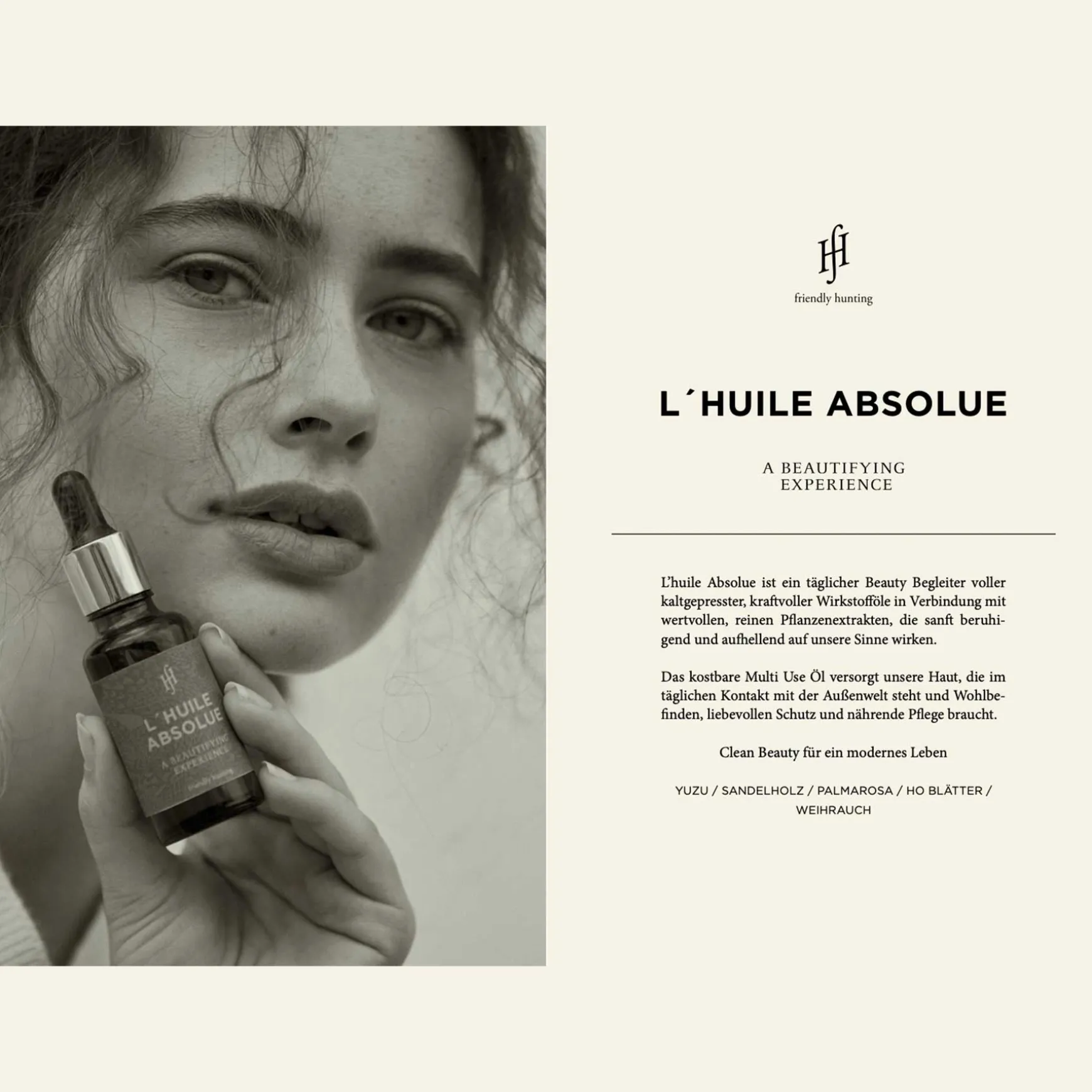L´Huile Absolue ist ein täglicher Beauty Begleiter voller kaltgepresster, kraftvoller Wirkstofföle in Verbindung mit wertvollen, reinen Pflanzenextrakten, die sanft beruhigend und aufhellend auf unsere Sinne wirken. Das kostbare Multi Use Öl versorgt unsere Haut, die im täglichen Kontakt mit der Außenwelt steht und Wohlbefinden, liebevollen Schutz und nährende Pflege braucht.