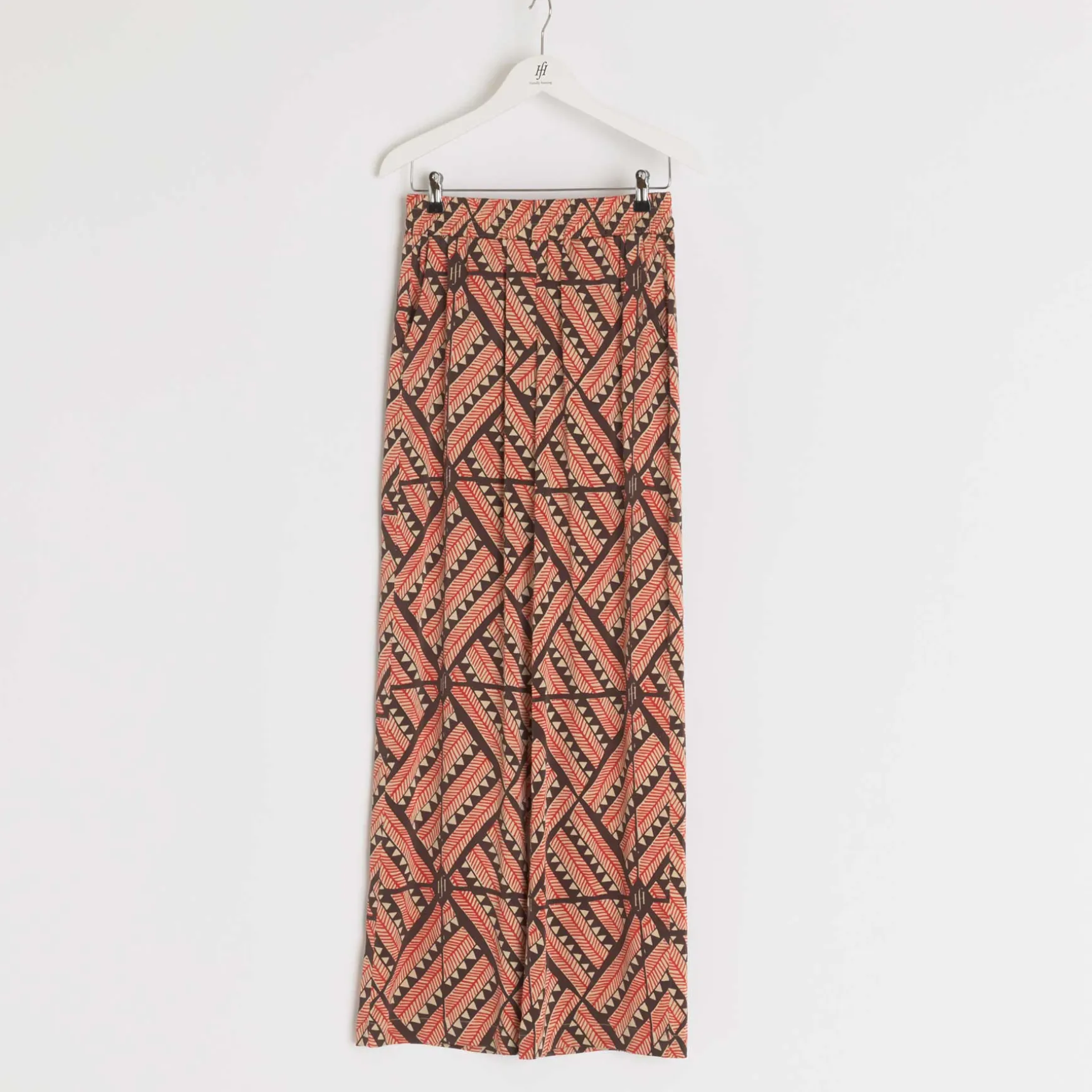 Das Material wird in der Manufaktur in Nepal per Hand aus Seidensatin gewebt. Anschließend wird der Print im Handsiebdruckverfahren auf der Seide platziert.