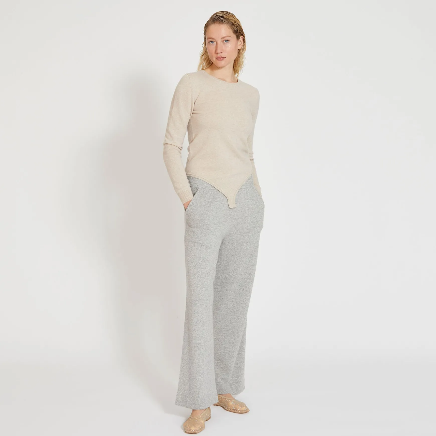 Feinste Handarbeit aus reinem Cashmere Garn. Die Hose kann alleine oder auch als Set mit dem Body Saga getragen werden.