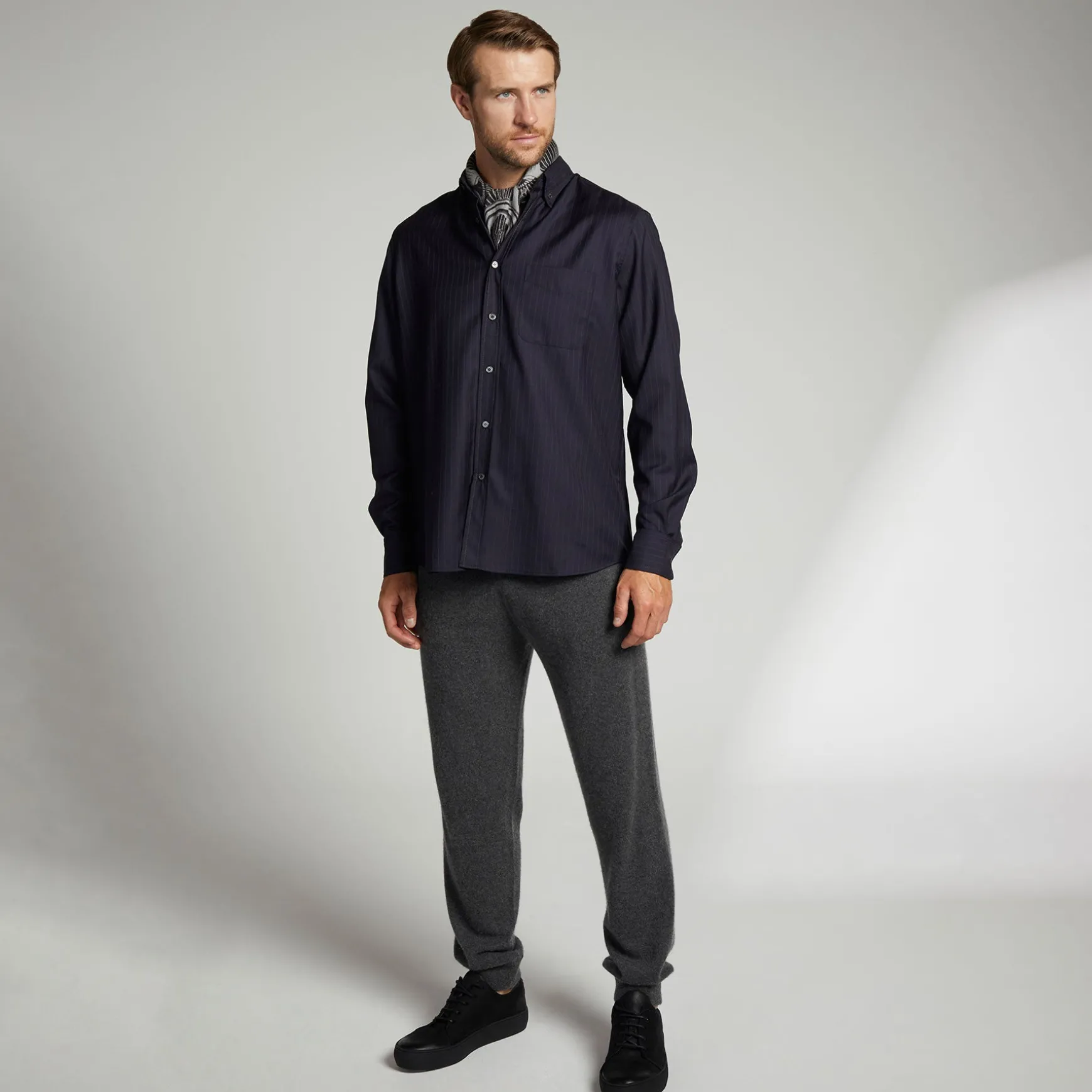 Sportliche Traveller Hose in dunklem Blau mit Gummibund und seitlichen Taschen.