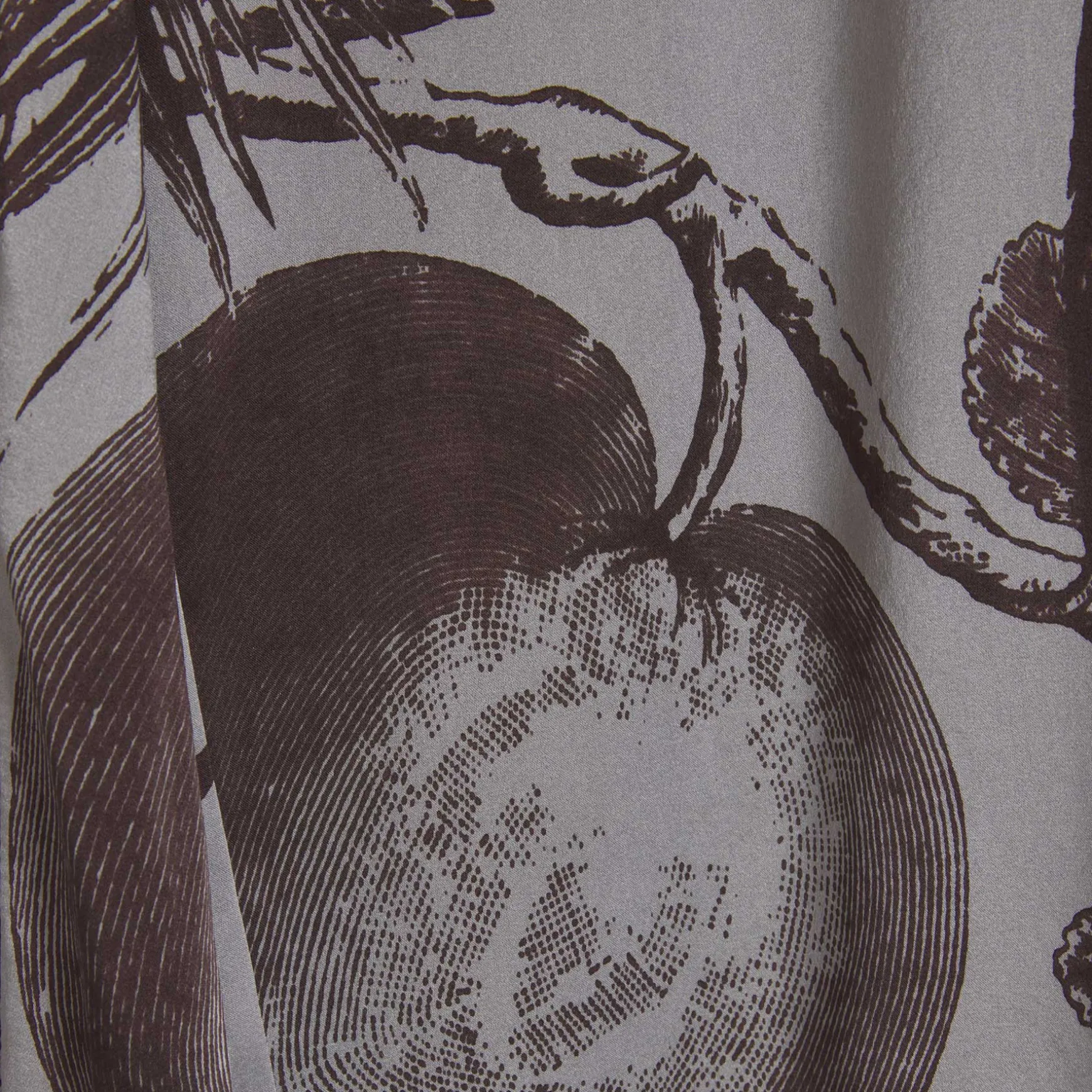 Das Material wird in der Manufaktur in Nepal per Hand aus Seidensatin gewebt. Anschließend wird der Print im Handsiebdruckverfahren auf der Seide platziert.