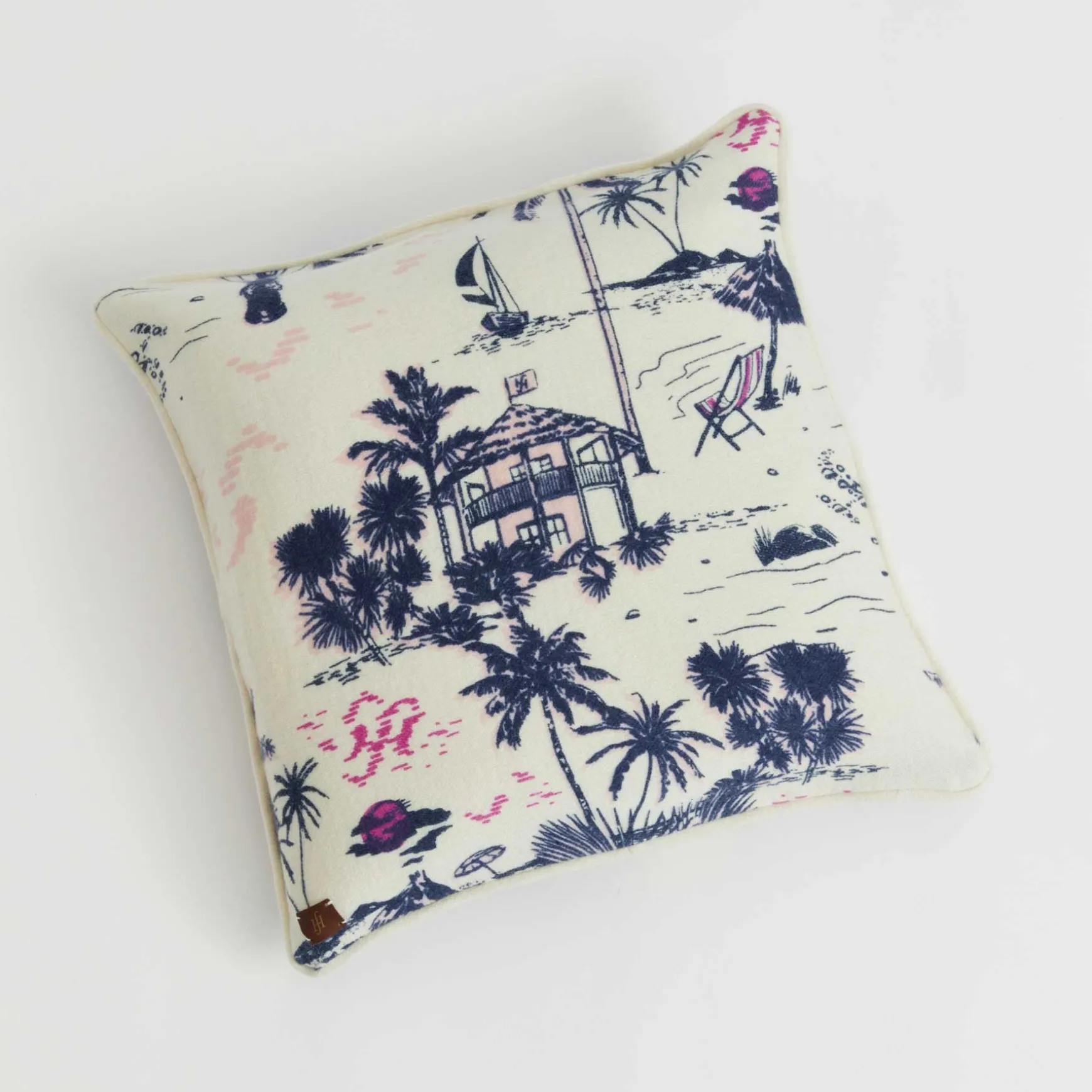 Der Kissenbezug wird in der Manufaktur in Nepal handgewebt und anschließend gefilzt. Die dichte Struktur mildert die Empfindlichkeit dieses mit Hand Sieb bedruckten, fragilen Materials