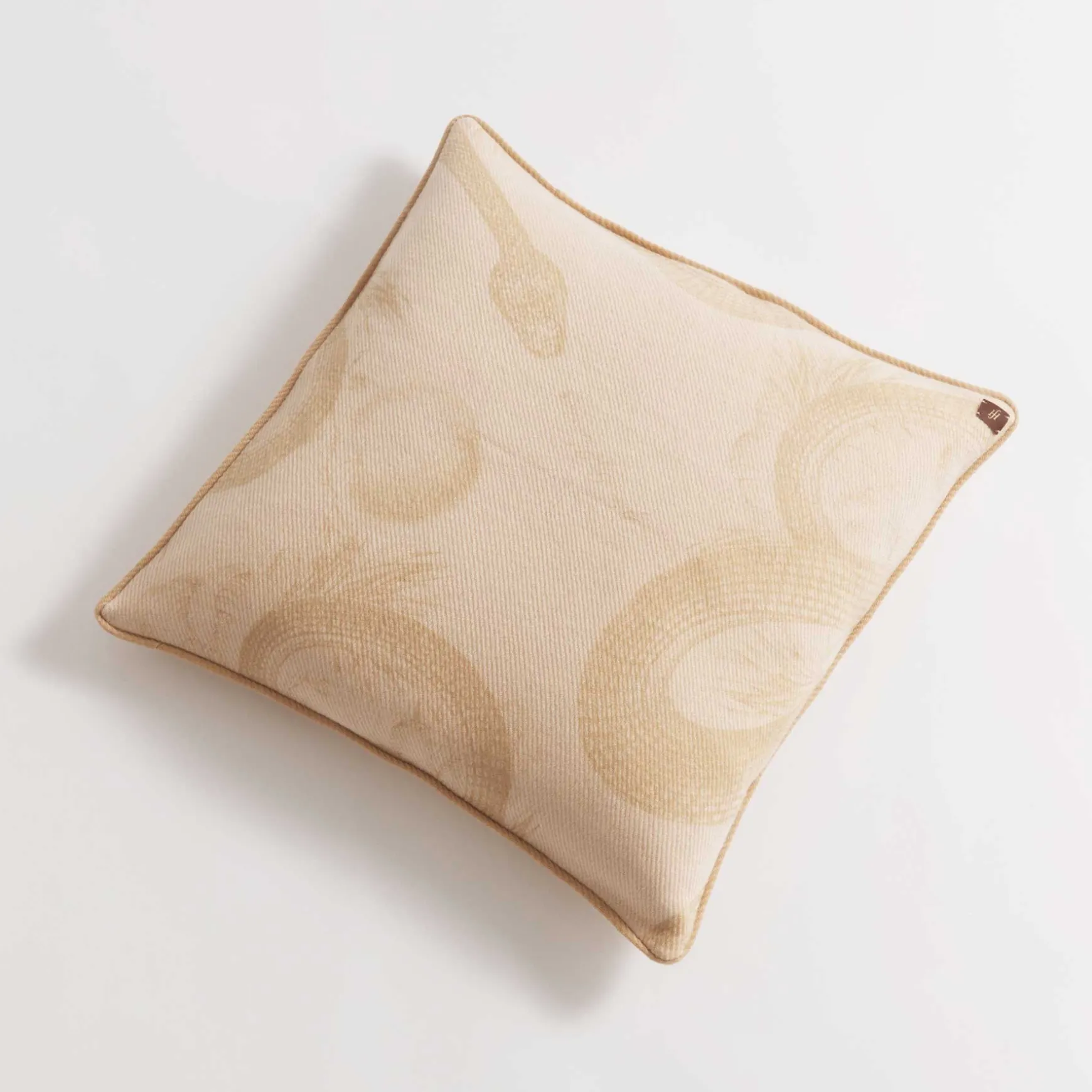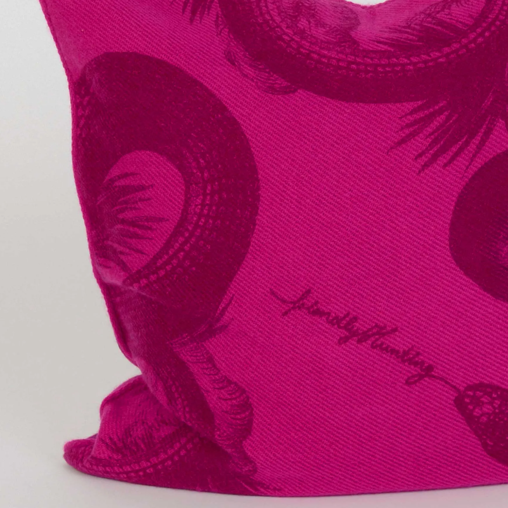 Der Kissenbezug wird in der Manufaktur in Nepal handgewebt und anschließend gefilzt. Die dichte Struktur mildert die Empfindlichkeit dieses mit Hand Sieb bedruckten, fragilen Materials