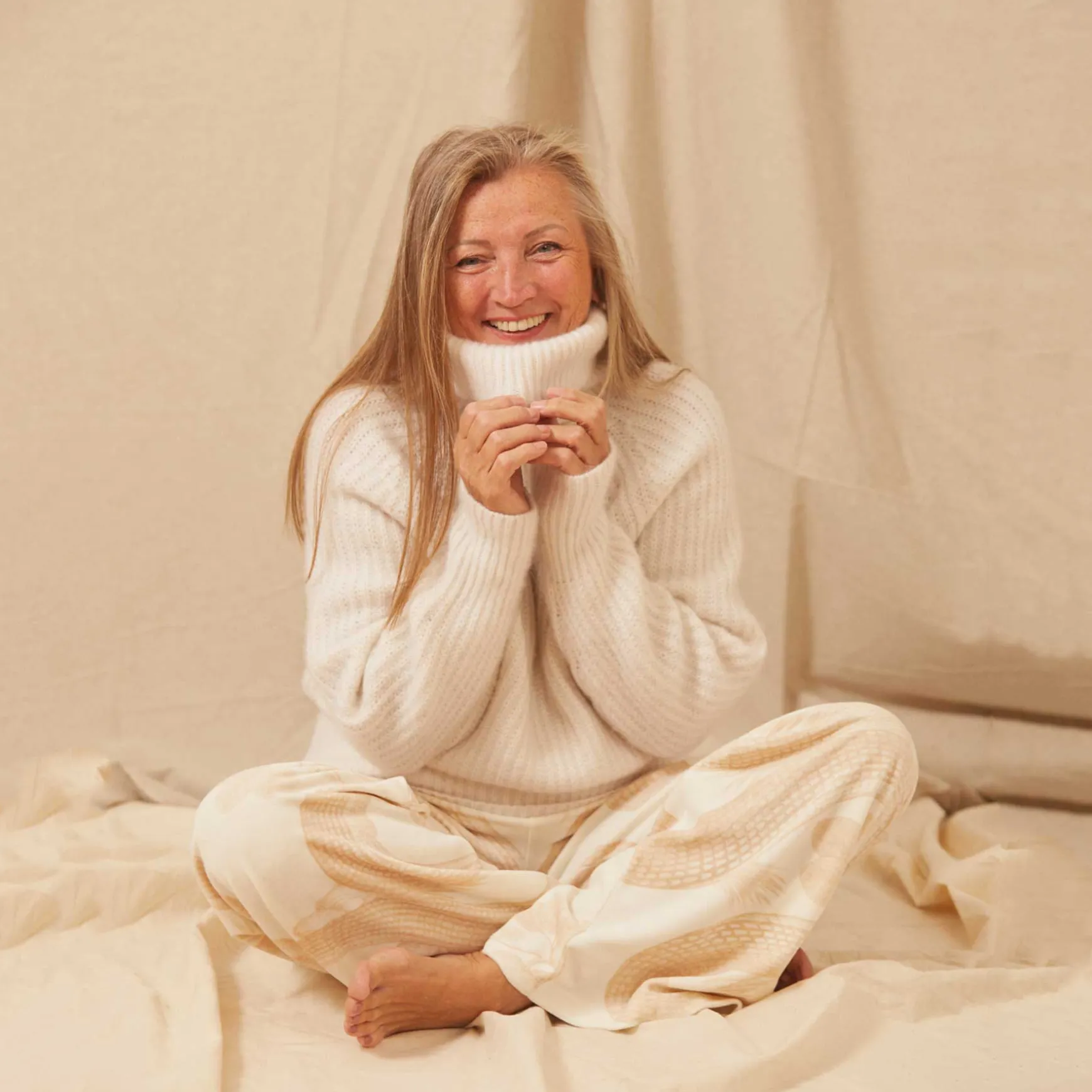 Der Artikel wird in der Manufaktur in Nepal per Hand gestrickt.