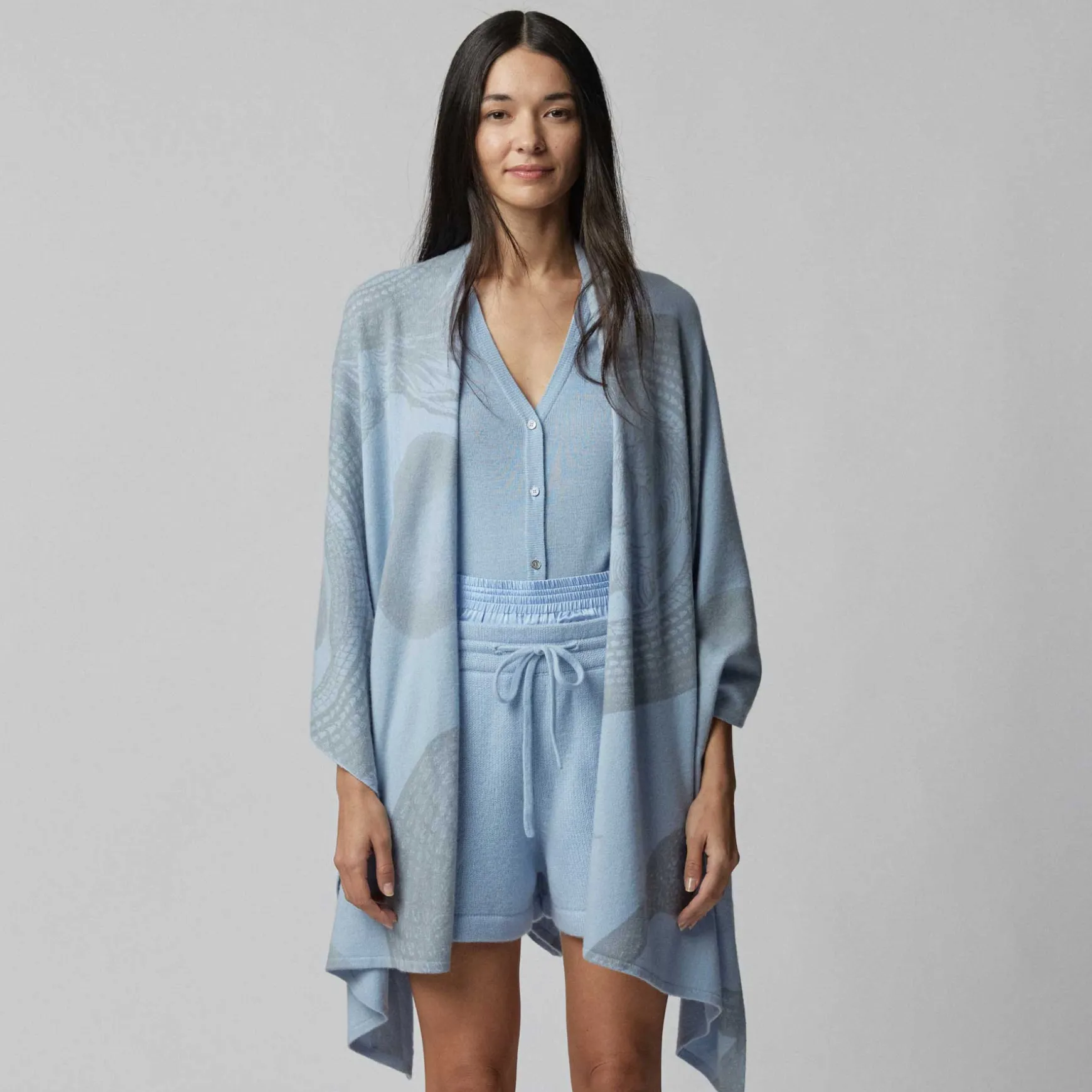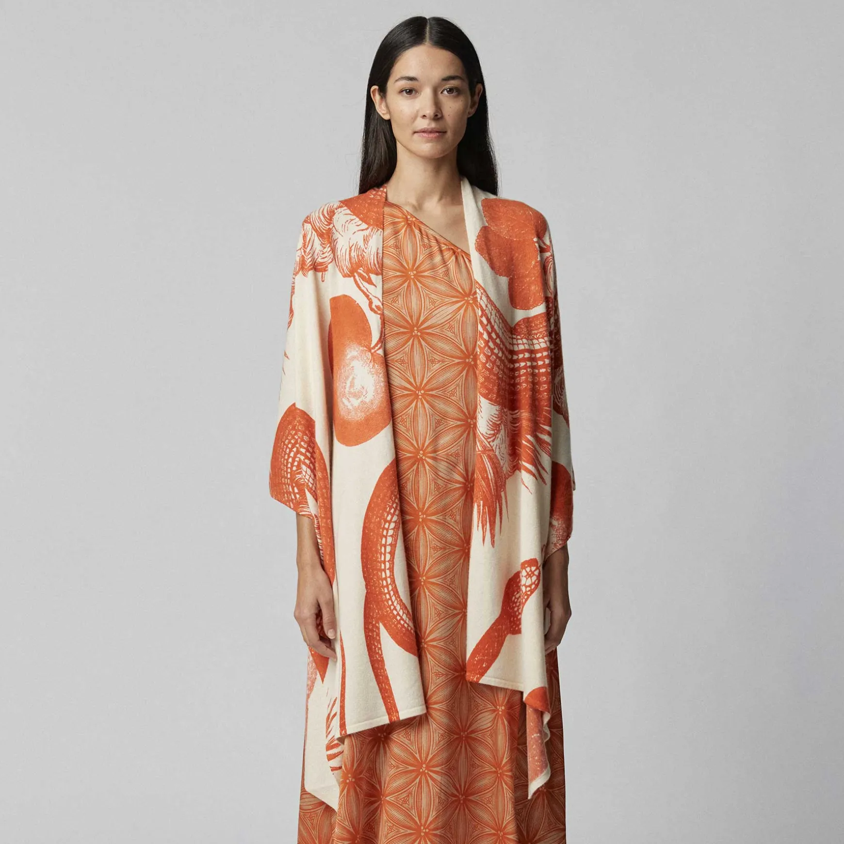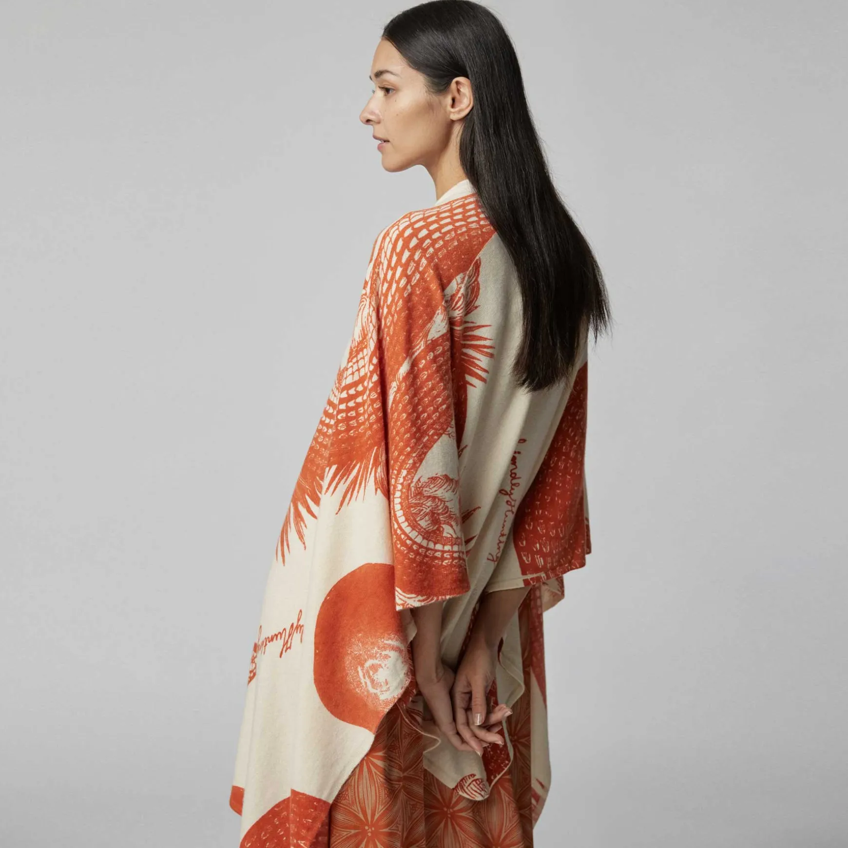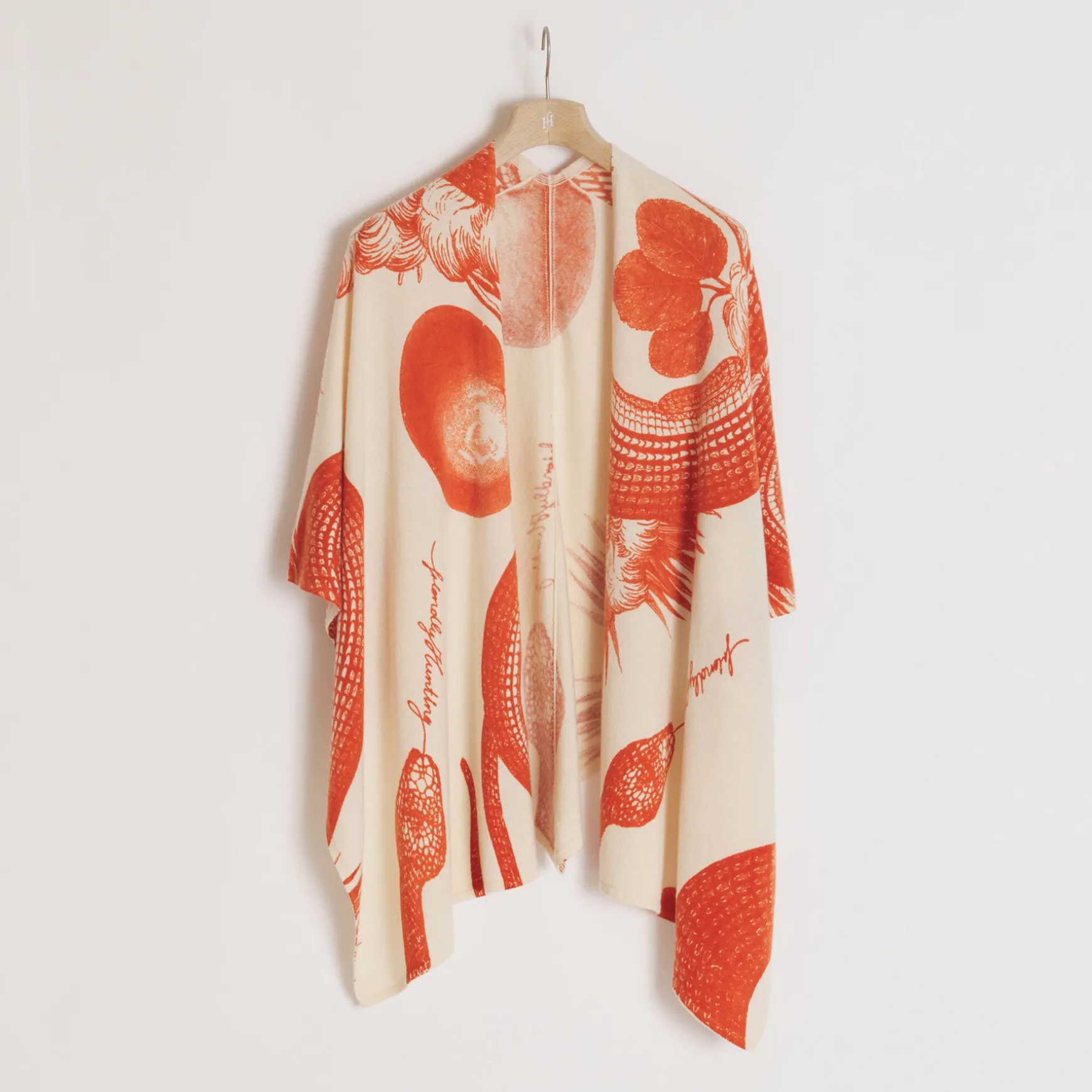 Die Shepherd Stola wird in unserer Manufaktur in Nepal aus 100% Cashmere handgestrickt. Anschließend wird der Print mit Handsiebdruck platziert.