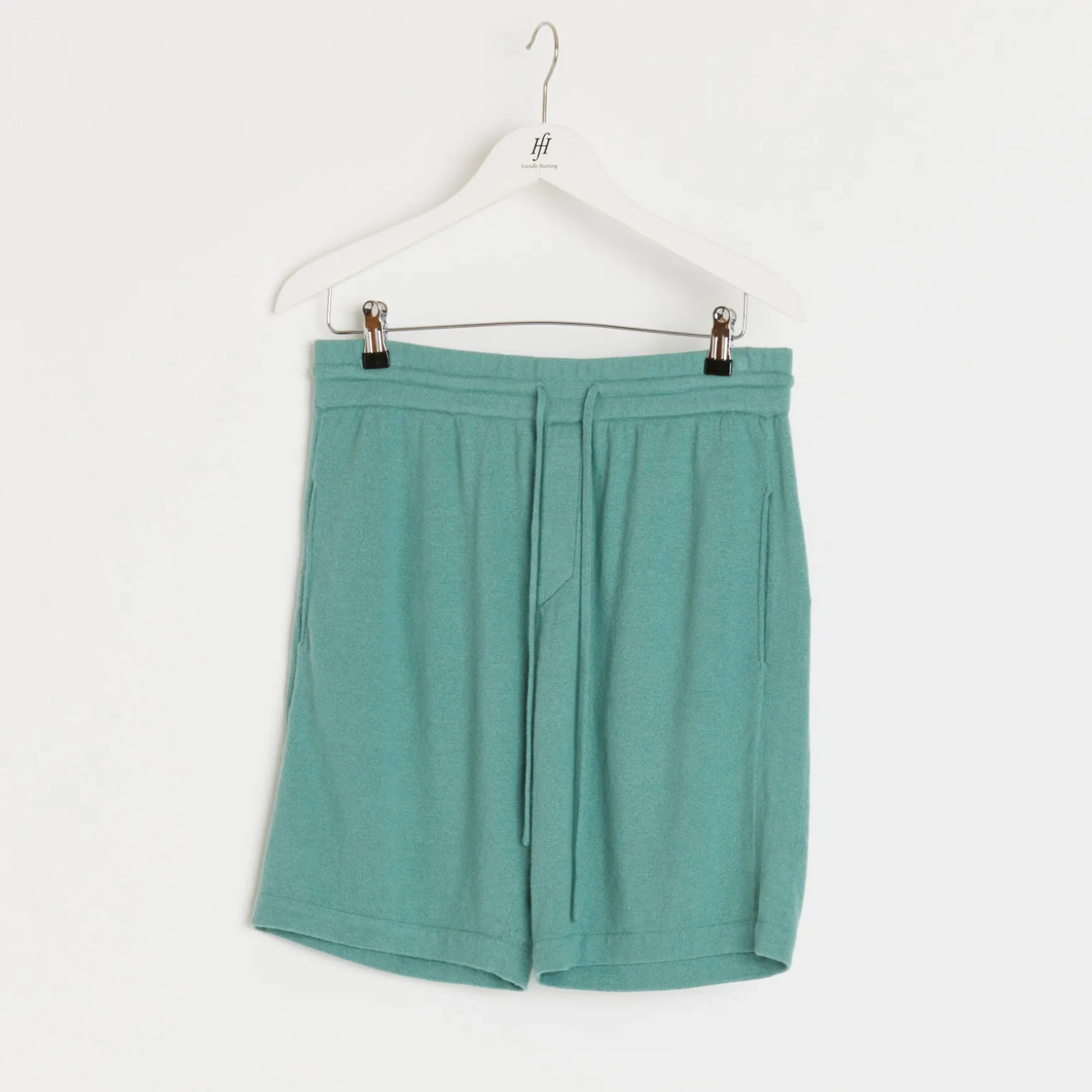 Feingestrickte, lockere Short in einem maritimen Grünton.