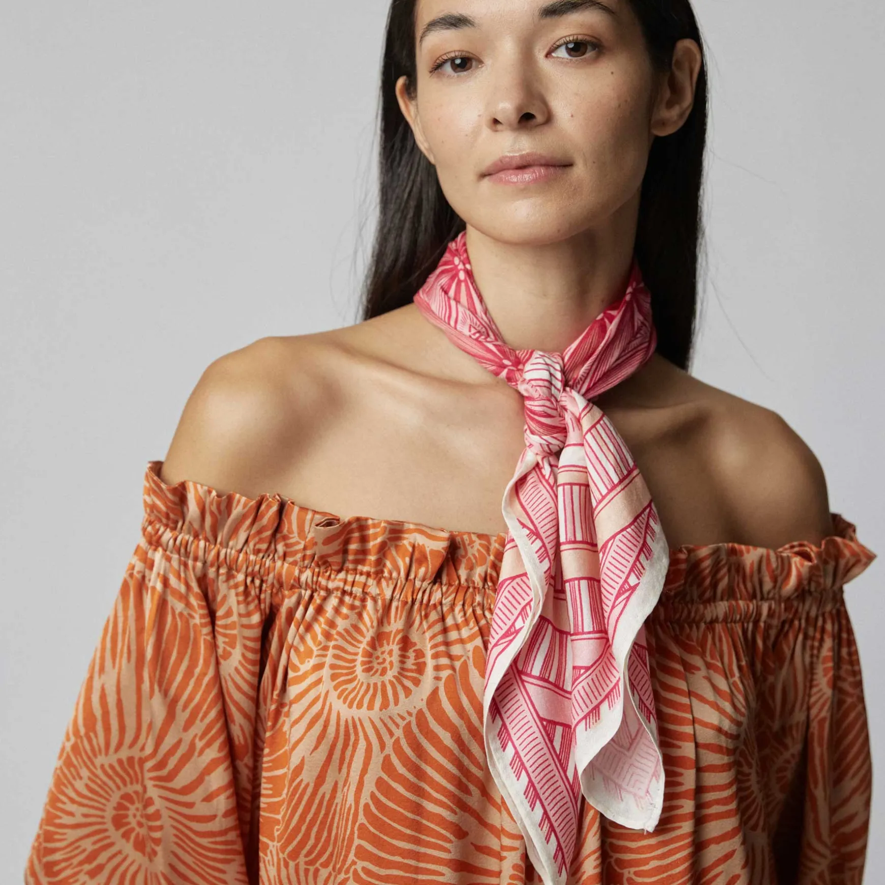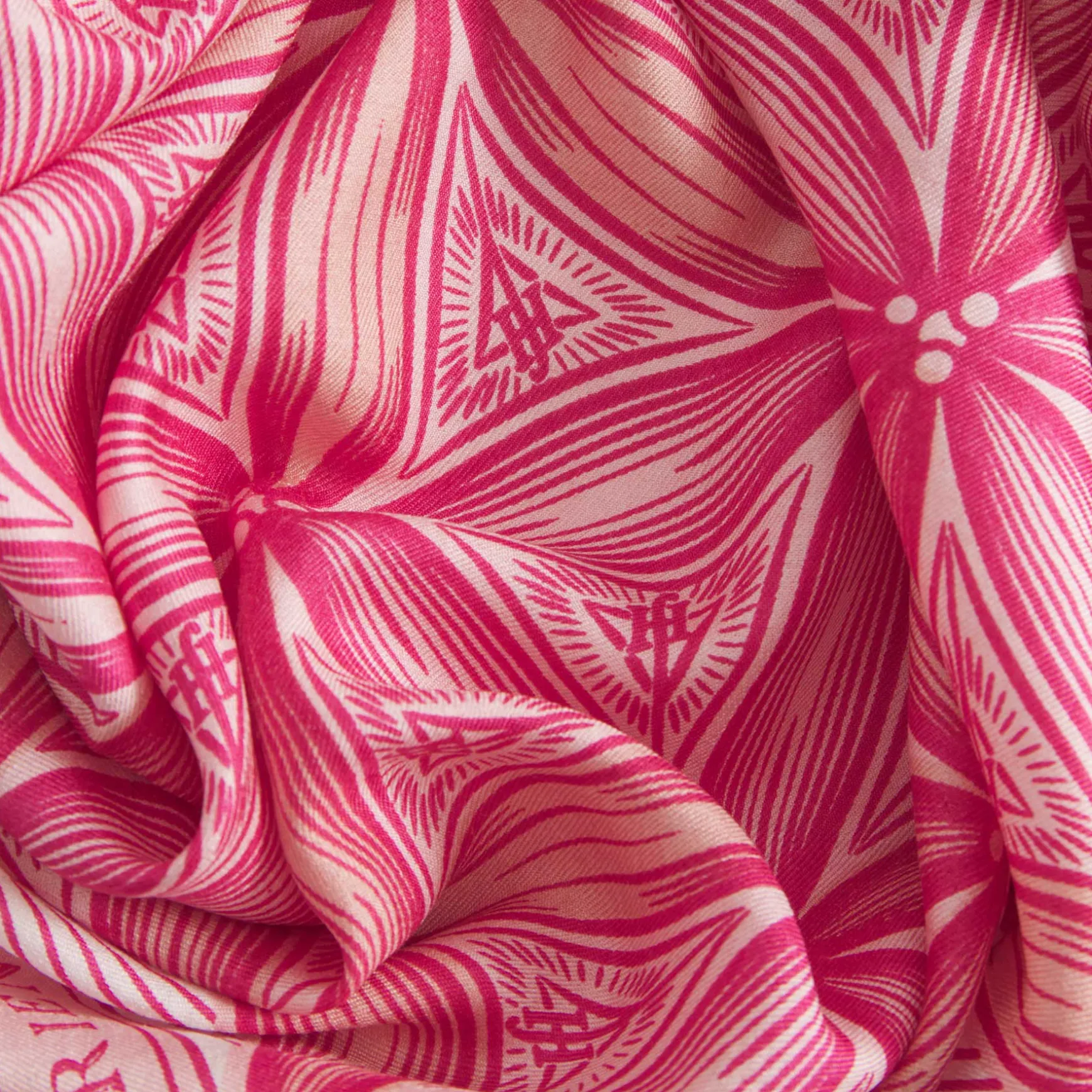 Der Silktwill Midicube wird in unserer Manufaktur in Nepal aus 100% Seide quadratisch handgewebt. Anschließend wird der Print mit Handsiebdruck auf dem Schal platziert.