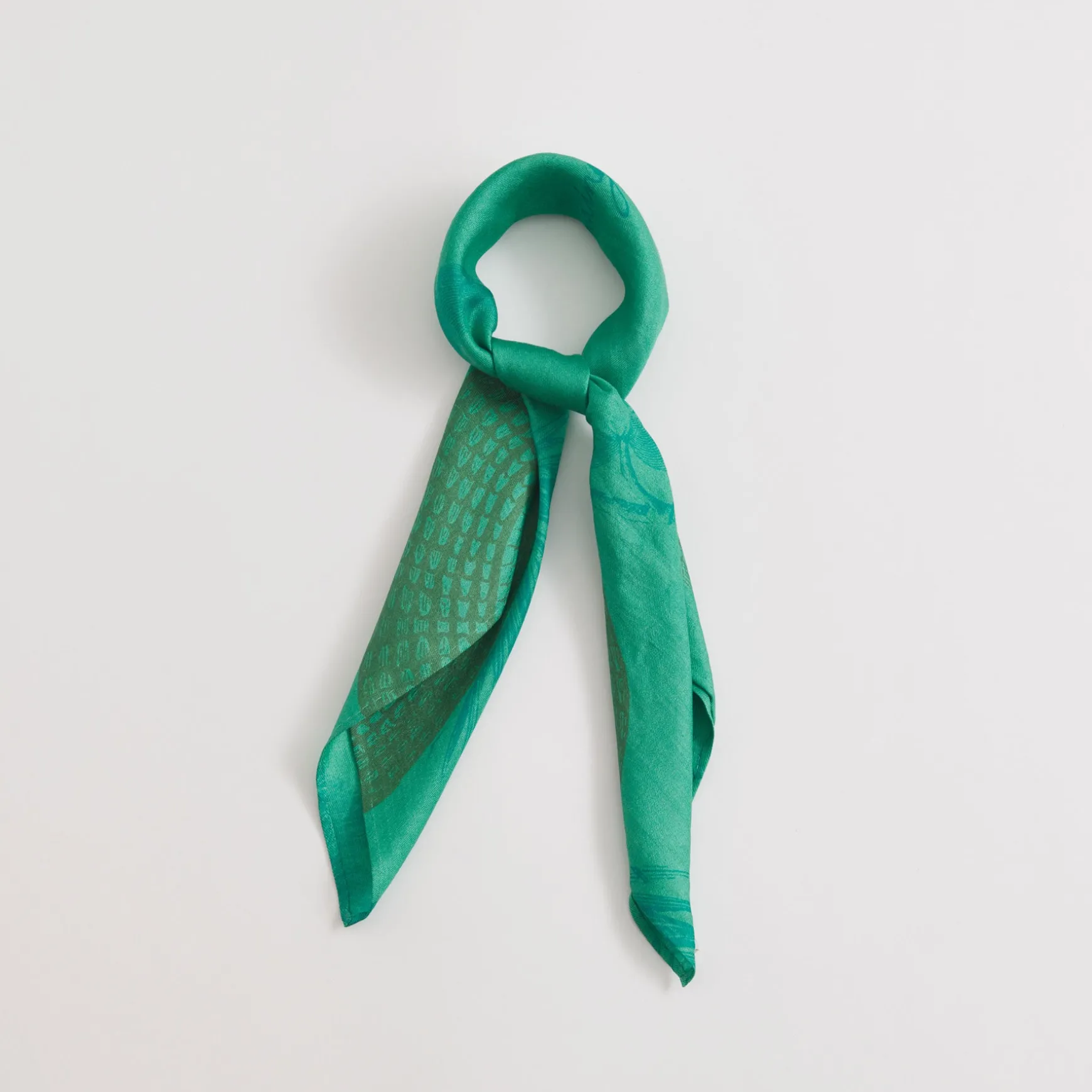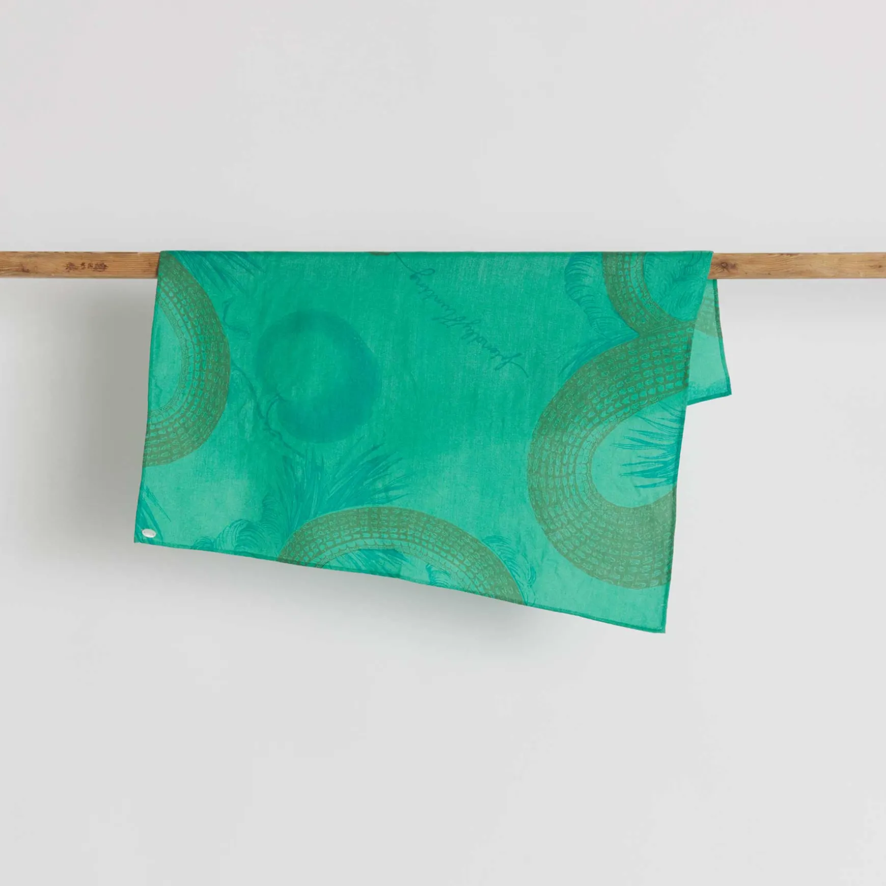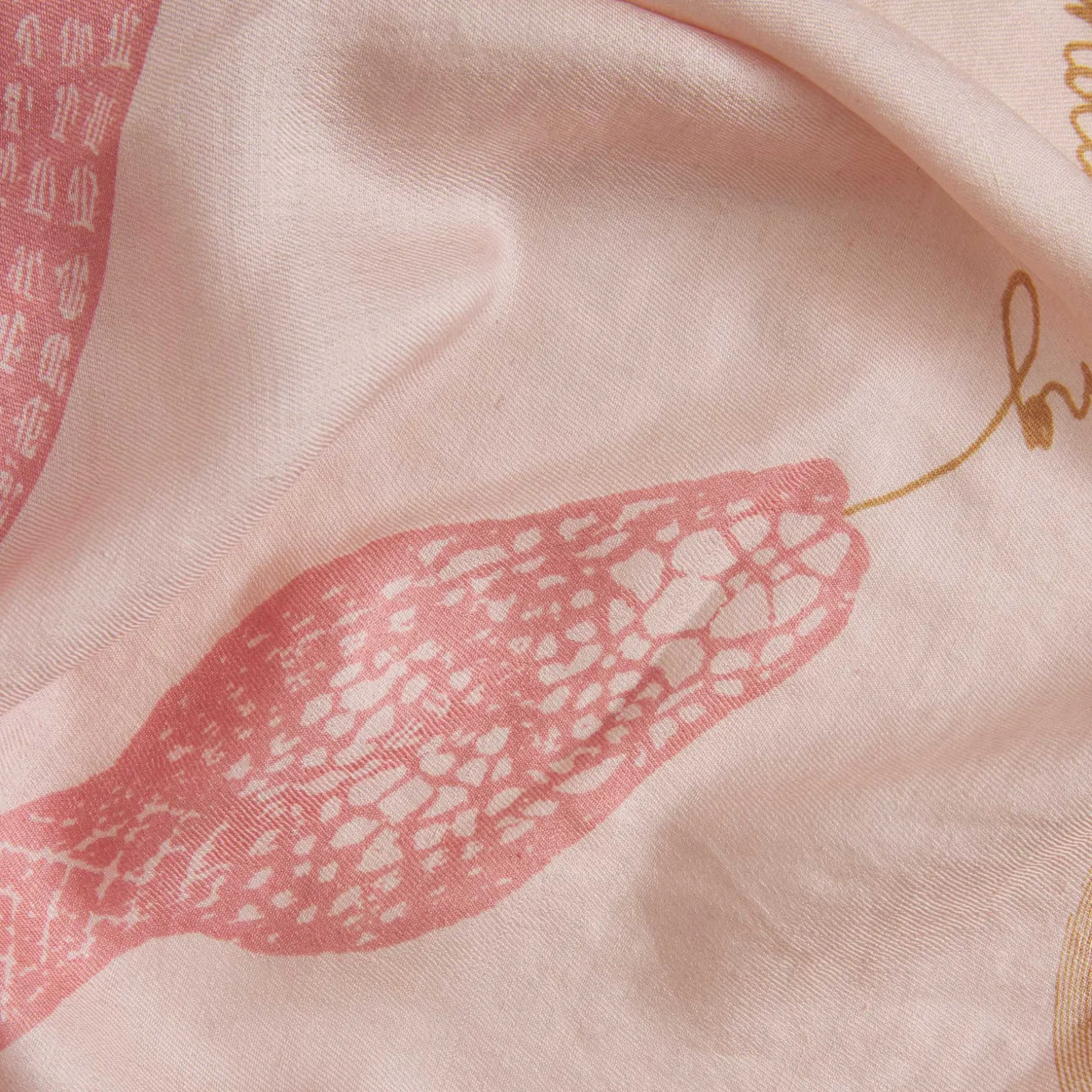 Der Silktwill Minicube wird in unserer Manufaktur in Nepal aus 100% Seide quadratisch handgewebt. Anschließend wird der Print mit Handsiebdruck auf dem Schal platziert.