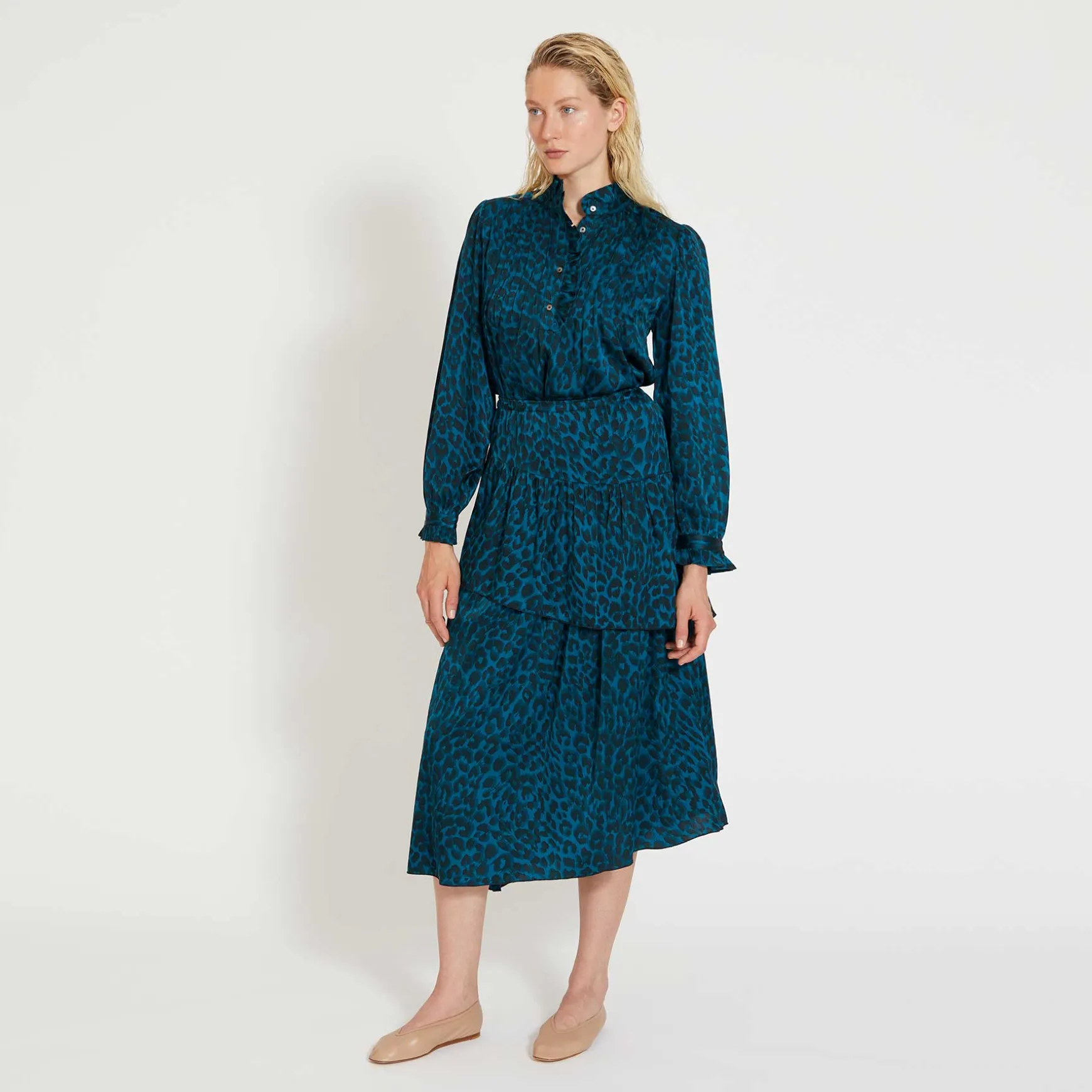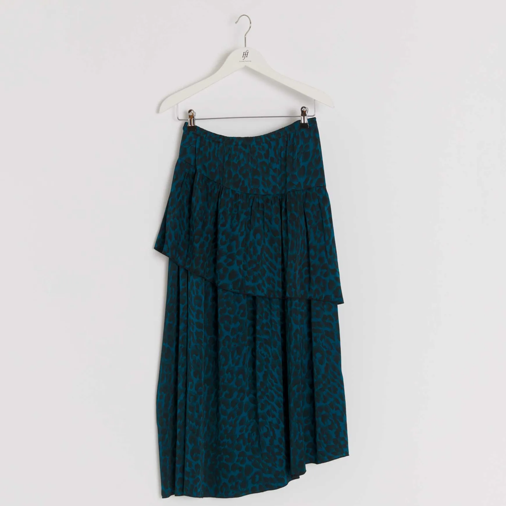 Ausladend schwingender Volant Rock aus fließender Seide im Allover Print Cheetah.