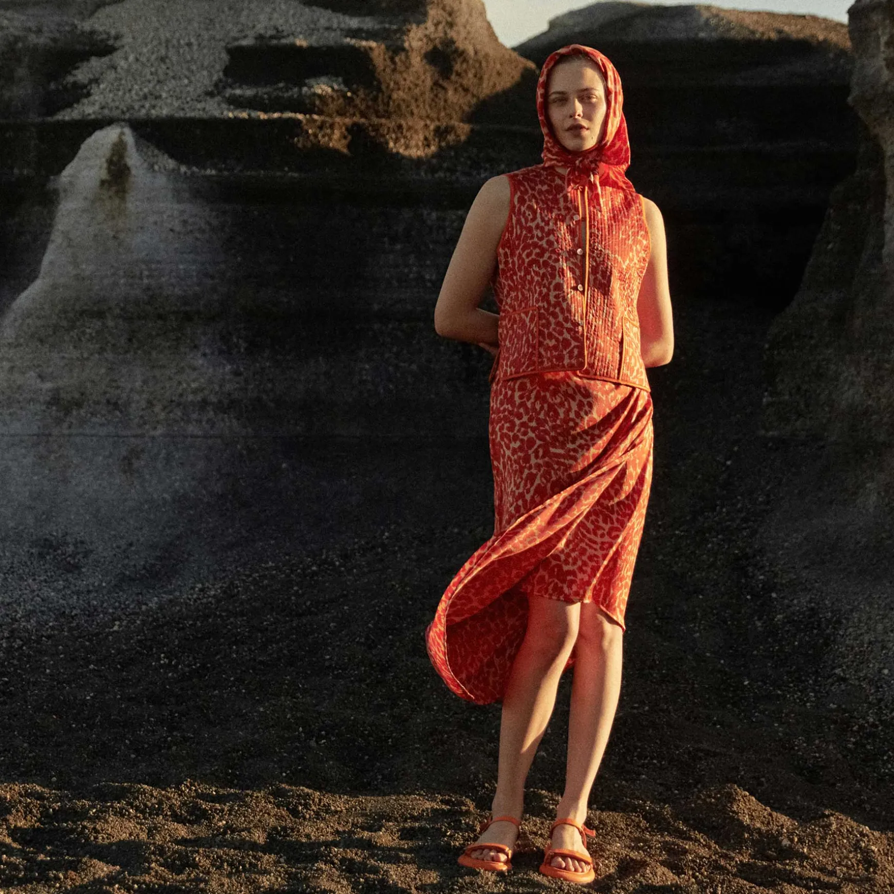Rock mit tollem Raffdetail aus fließender Seide im Allover Print Cheetah. Der Rock lässt sich mit einem Reißverschluss verschließen.